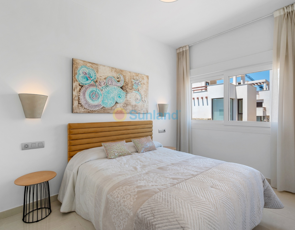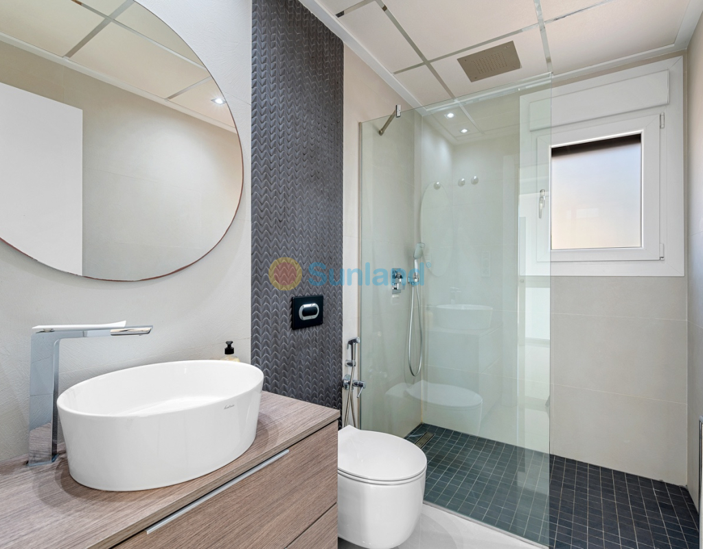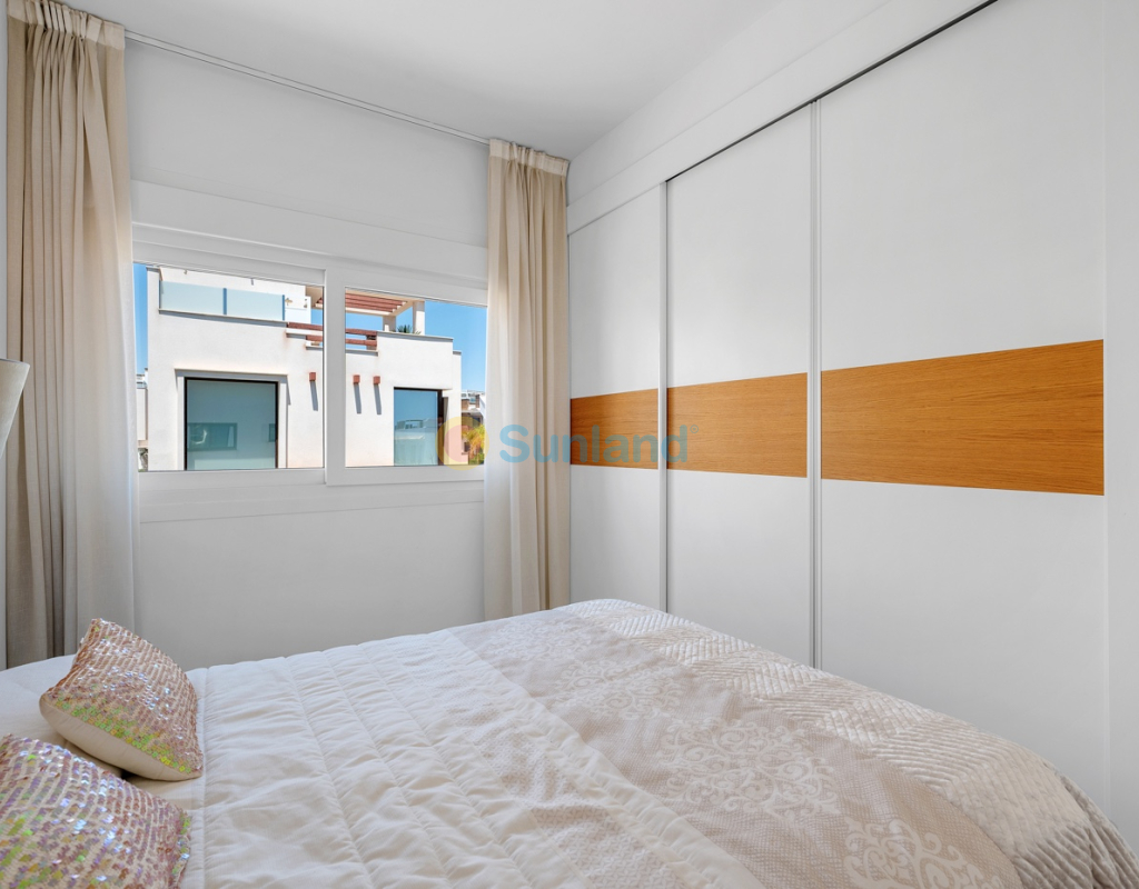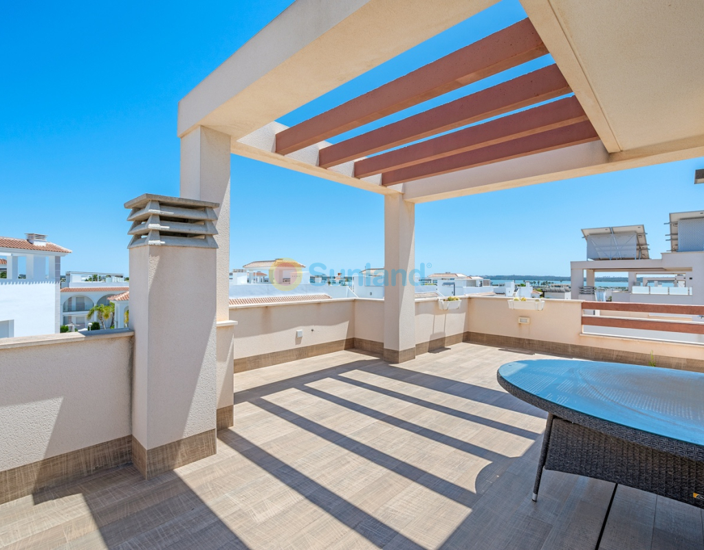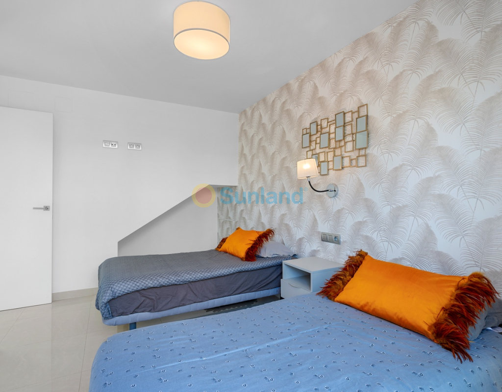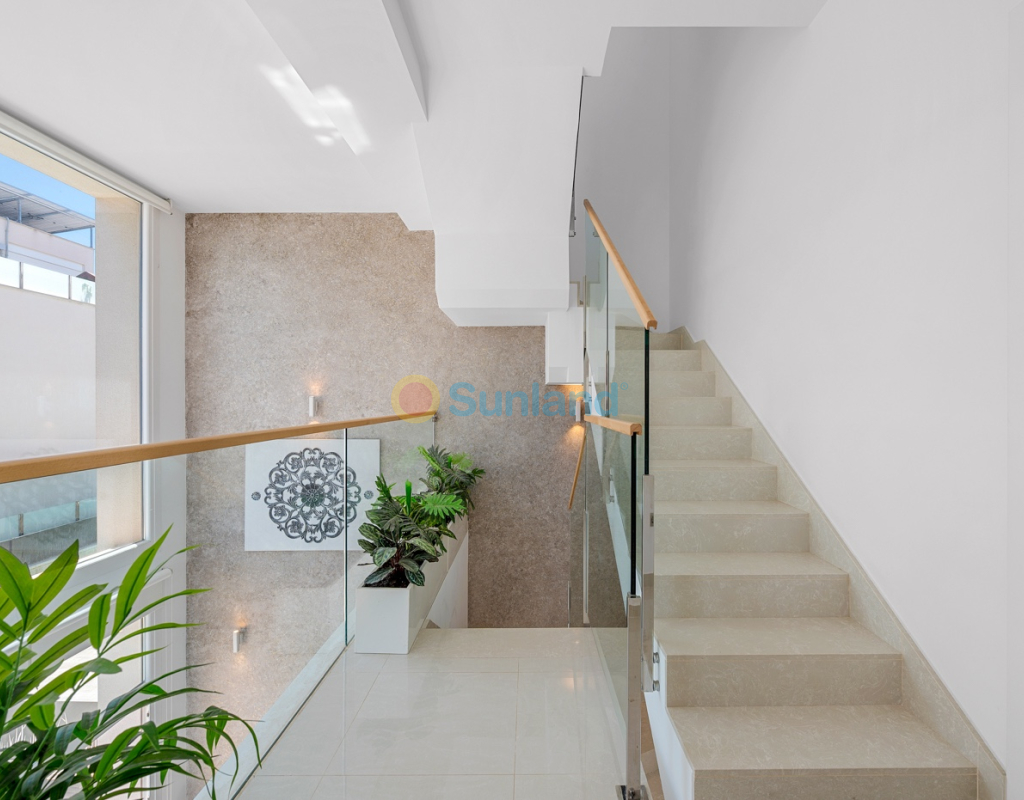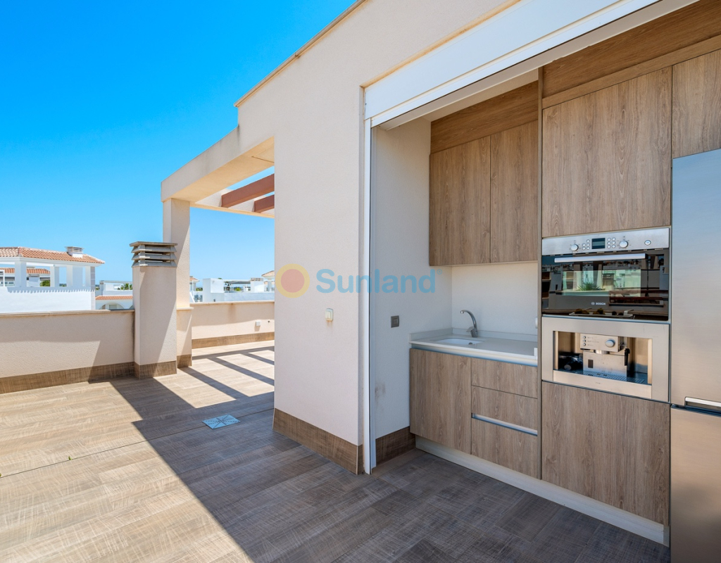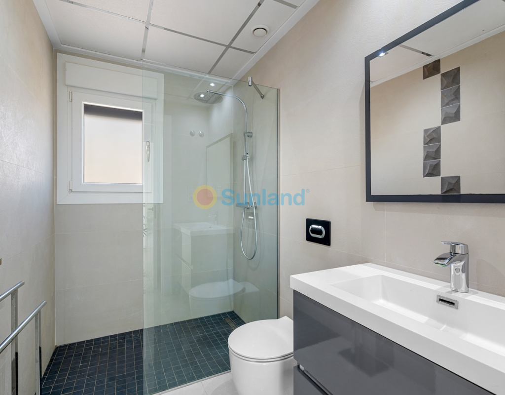 Diese im Jahr 2018 erbaute Immobilie befindet sich in einer ruhigen Wohngegend von Ciudad Quesada. Sie bietet eine funktionale Raumaufteilung sowie gut genutzte Innen- und Außenbereiche. Die Gesamtfläche beträgt 101 m² auf einem Grundstück von 184 m² mit drei Schlafzimmern, drei Bädern, einem Keller und einer Dachterrasse. Im Erdgeschoss befinden sich das Wohnzimmer, der Essbereich und eine offene Küche mit Kochinsel. Auf dieser Etage gibt es außerdem ein Schlafzimmer mit Einbauschrank, ein komplettes Badezimmer, einen Hauswirtschaftsraum sowie direkten Zugang zum Garten und zum privaten Pool. Im Obergeschoss befinden sich zwei weitere Schlafzimmer. Das Hauptschlafzimmer verfügt über ein eigenes Bad und Zugang zu einer privaten Terrasse. Das zweite Schlafzimmer liegt neben einem weiteren Badezimmer. Ein Flur verbindet die Räume. Der Keller ist derzeit als Freizeitraum mit Billardbereich eingerichtet und bietet zusätzlichen Raum für verschiedene Nutzungen. Die private Dachterrasse verfügt über eine voll ausgestattete Außenküche mit Zugang vom Inneren des Hauses – ideal, um das ganze Jahr über draußen zu genießen. Im Außenbereich bietet die Immobilie einen privaten Pool (3,30 x 6,50 Meter), einen Garten mit Kunstrasen sowie einen Stellplatz auf dem Grundstück. Als Eckhaus profitiert das Haus von mehr Tageslicht und zusätzlicher Privatsphäre. Die Immobilie wird komplett möbliert verkauft und ist mit Klimaanlage, Einbauschränken, elektrischen Rollläden, Insektenschutzgittern, Alarmsystem und ausgestatteter Küche versehen. Sie eignet sich sowohl als Dauerwohnsitz als auch als Ferienimmobilie.