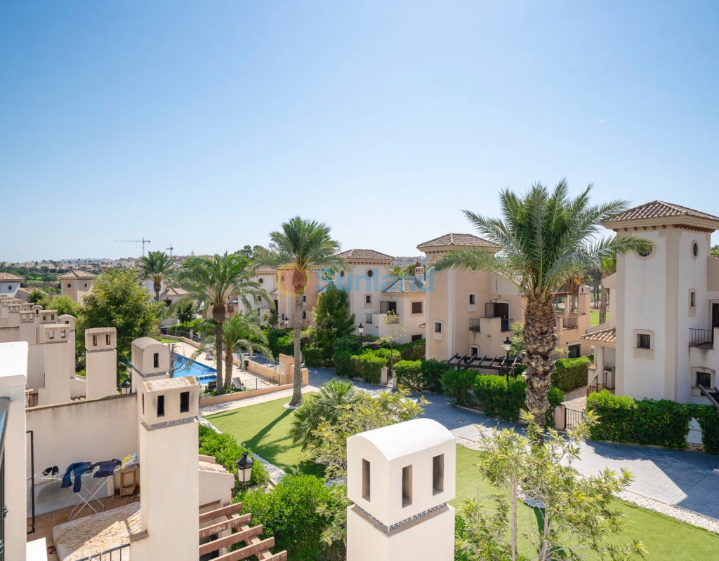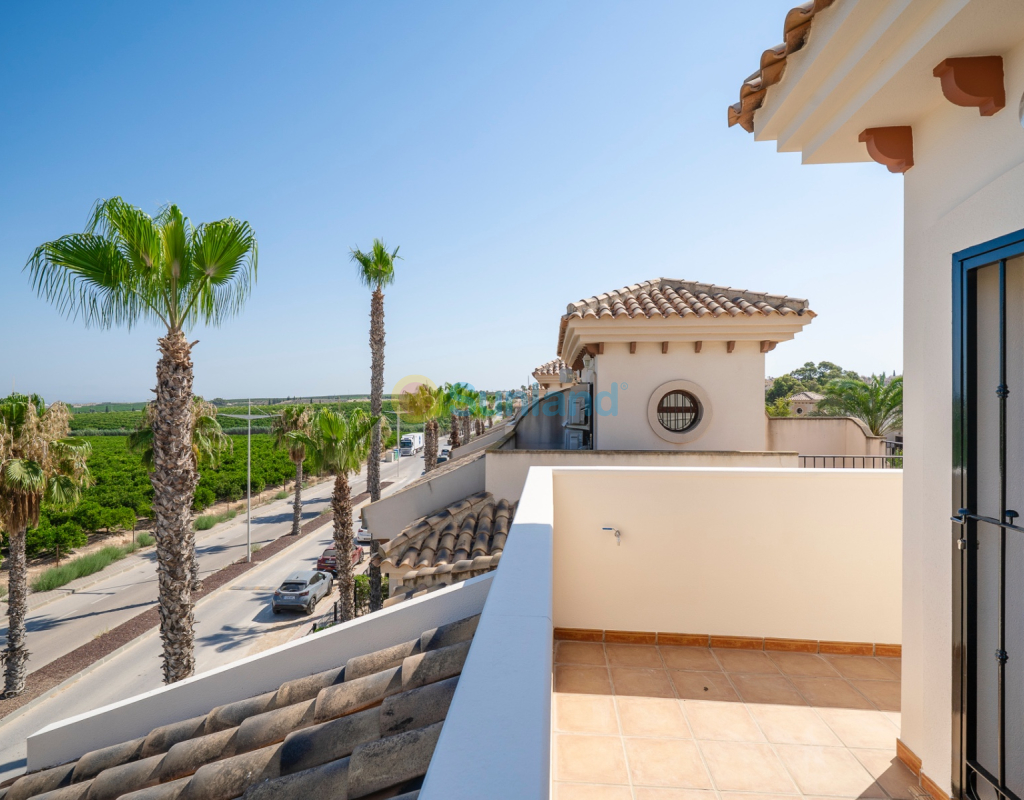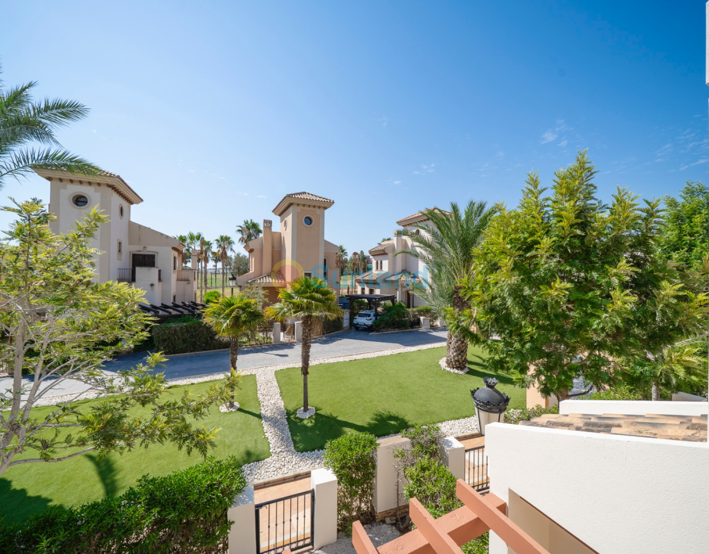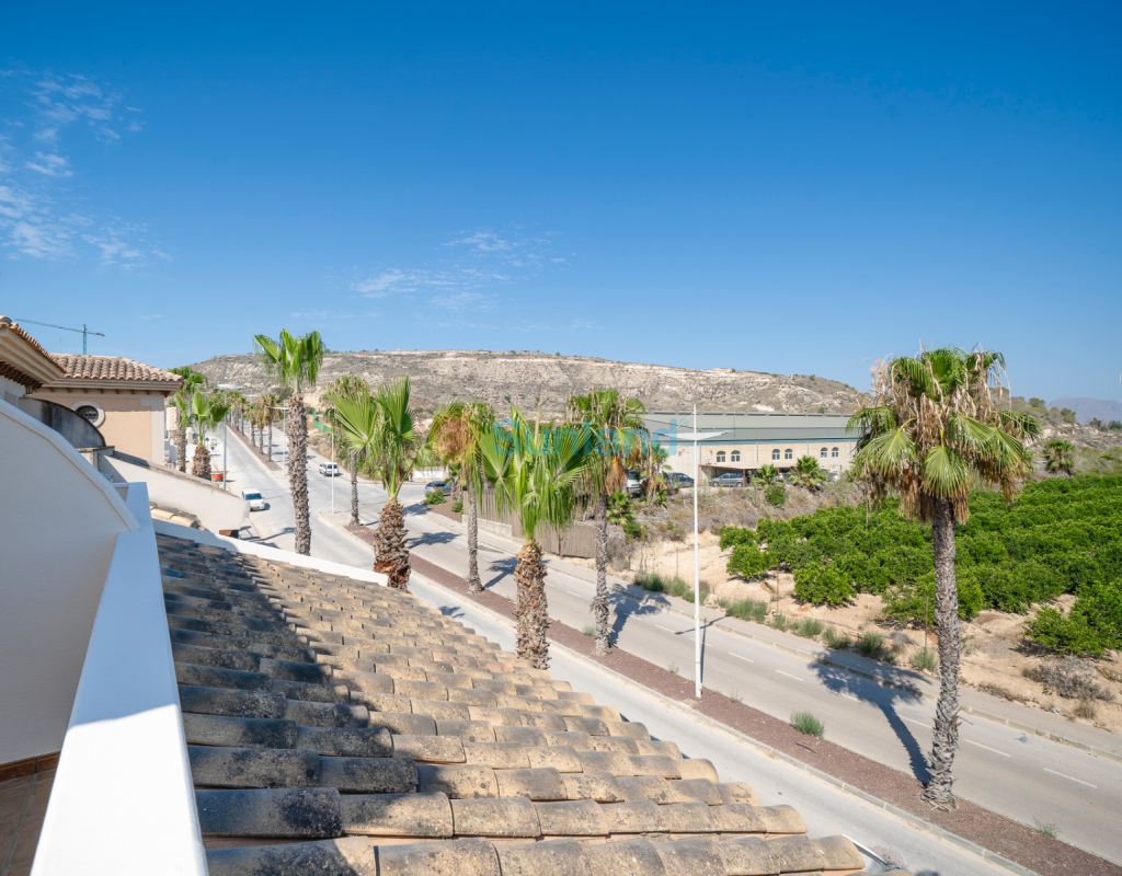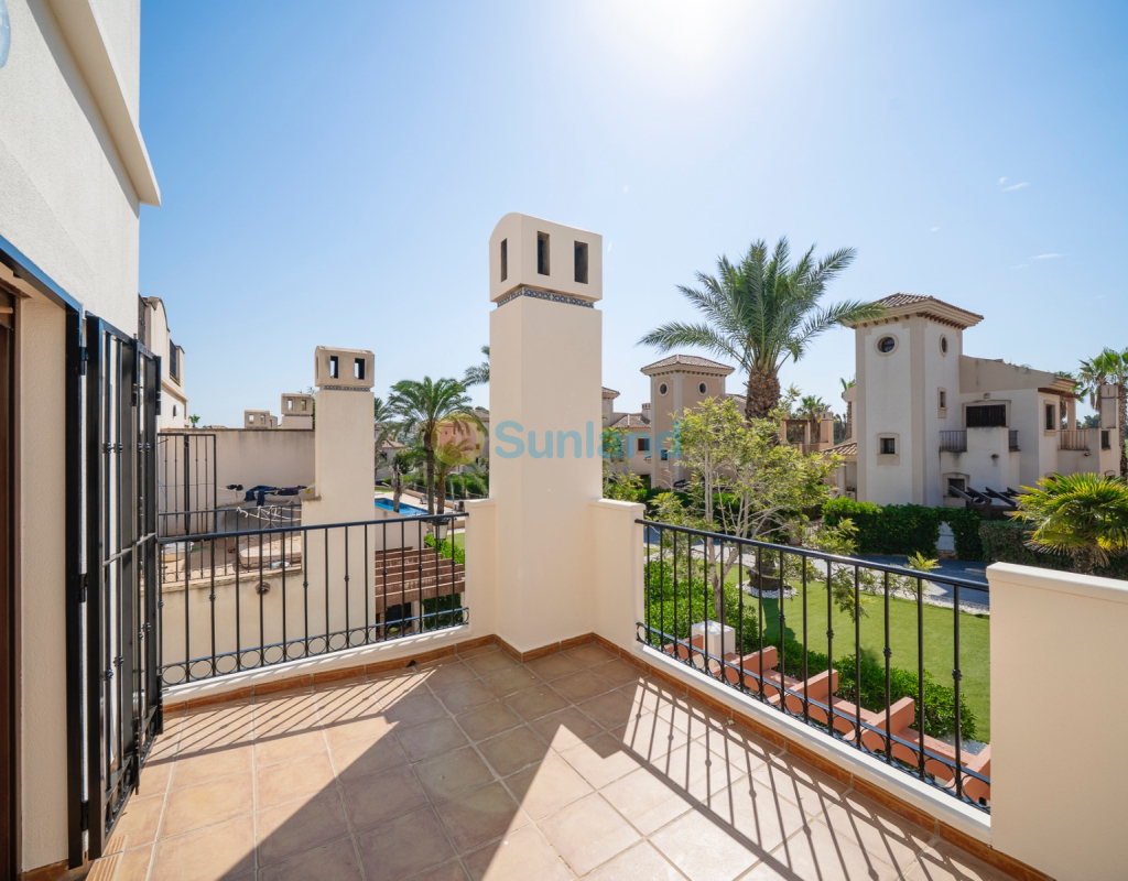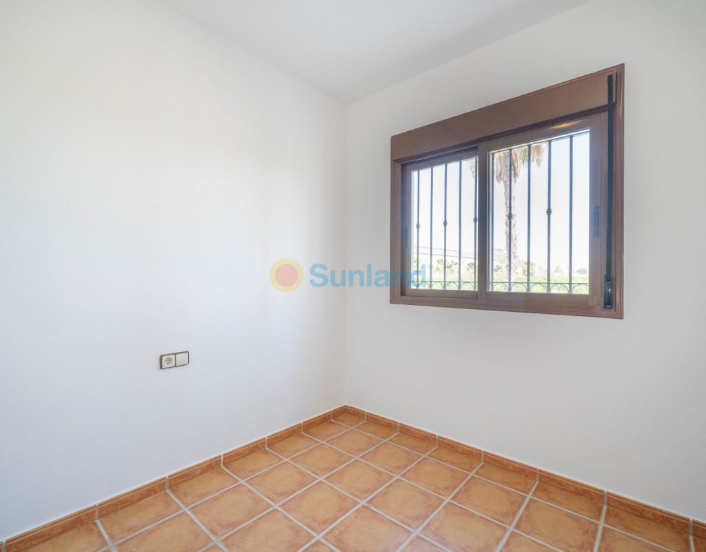 Reihenhaus im Wohnkomplex "Paradise Golf" Dieses charmante Reihenhaus befindet sich in der exklusiven Wohnanlage "Paradise Golf" und ist bezugsfertig. Es verfügt über einen Vorgarten mit Parkplatz sowie eine gemütliche hintere Veranda mit Grill, die direkten Zugang zum Wohnzimmer bietet. Im Erdgeschoss befinden sich ein großzügiges Wohnzimmer mit Kamin, eine separate Küche mit Hauswirtschaftsraum, ein Schlafzimmer mit Einbauschrank und ein Badezimmer mit Dusche. Im ersten Obergeschoss gibt es zwei helle Schlafzimmer mit Einbauschränken – eines mit Balkon und das andere mit einer schönen privaten Terrasse – sowie ein voll ausgestattetes Badezimmer. Im obersten Stockwerk befindet sich eine sonnige Dachterrasse mit freiem Ausblick, ideal zum Entspannen oder Sonnenbaden. Die Wohnanlage verfügt über einen Gemeinschaftspool. Das Haus wurde kürzlich gestrichen und befindet sich in hervorragendem Zustand. Wird unmöbliert verkauft.