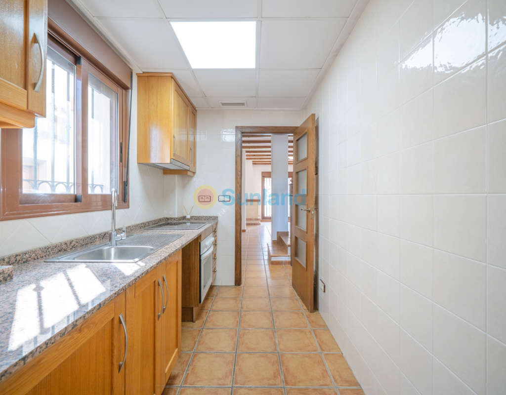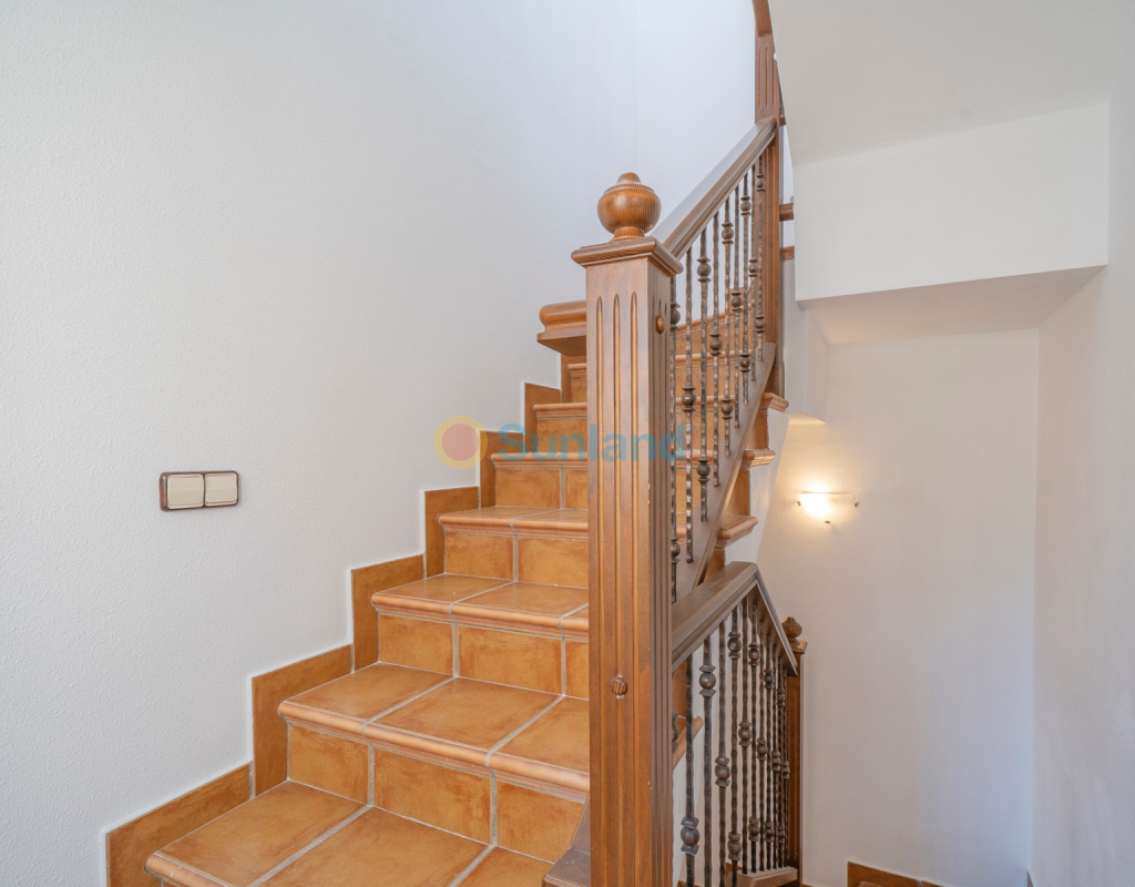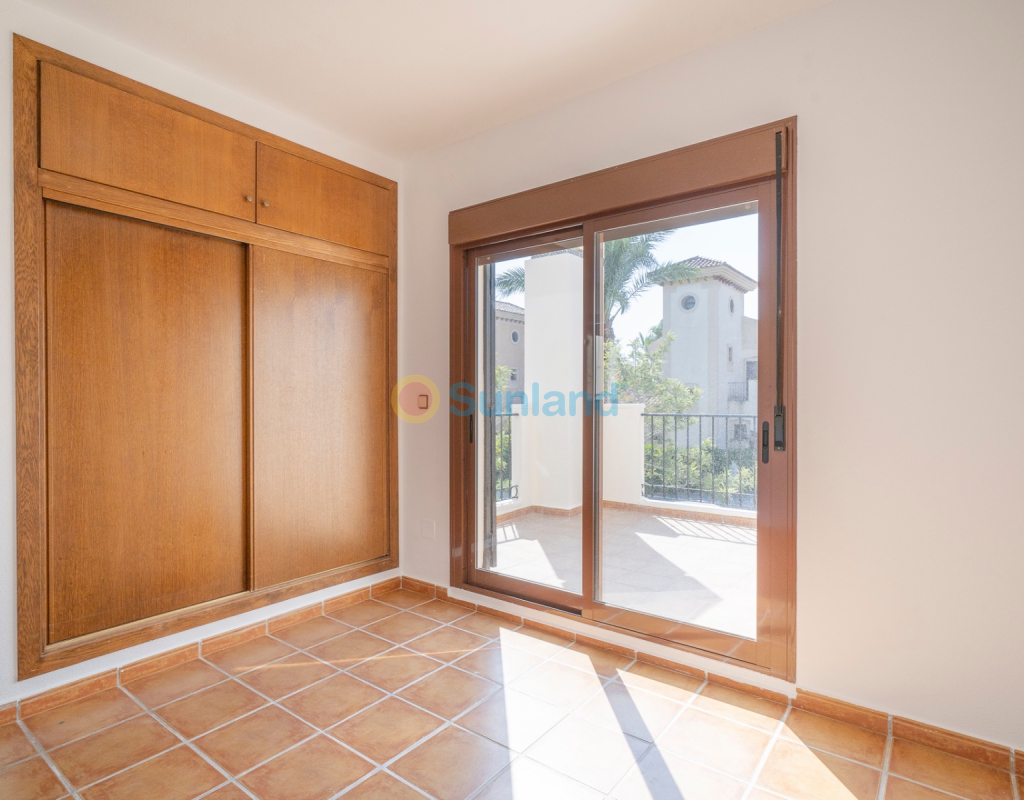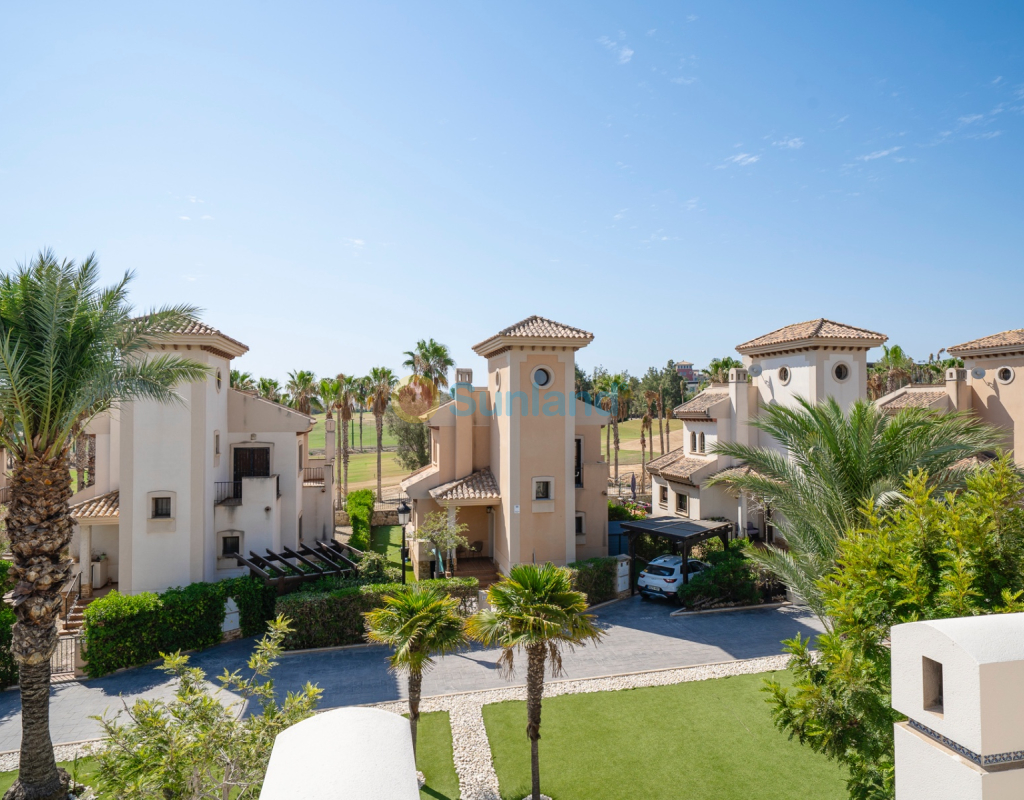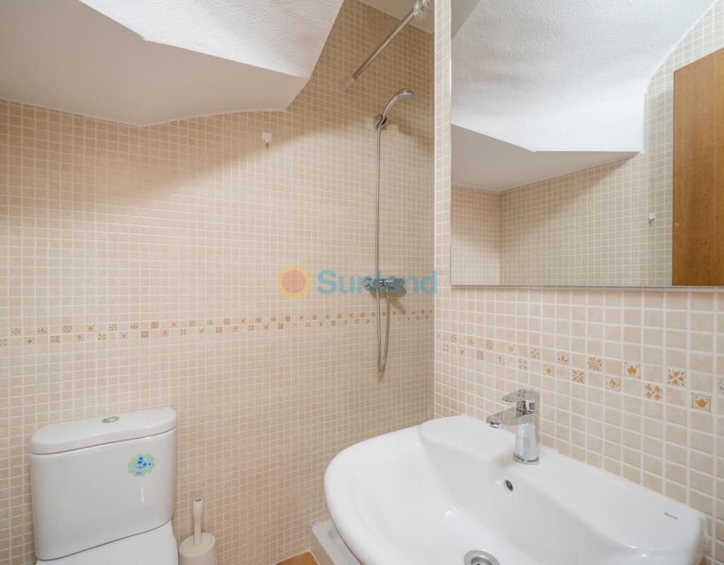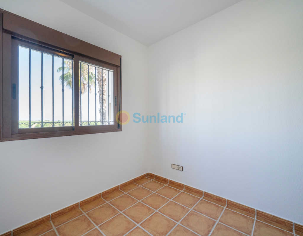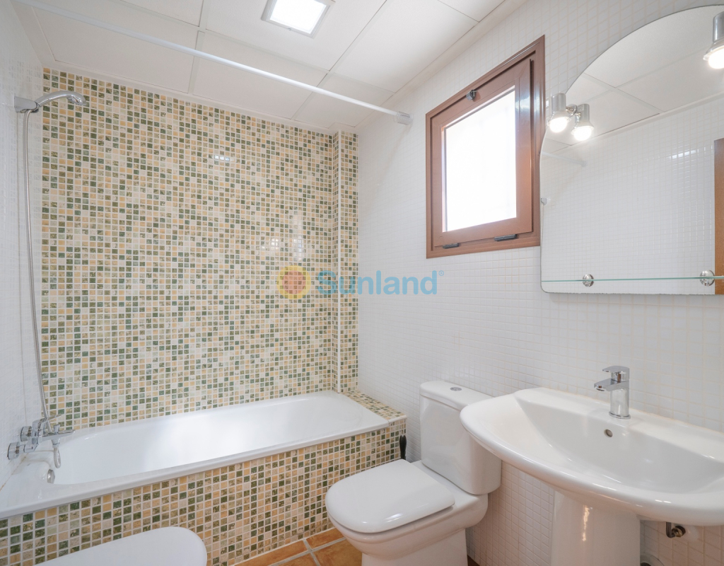 Reihenhaus im Wohnkomplex "Paradise Golf" Dieses charmante Reihenhaus befindet sich in der exklusiven Wohnanlage "Paradise Golf" und ist bezugsfertig. Es verfügt über einen Vorgarten mit Parkplatz sowie eine gemütliche hintere Veranda mit Grill, die direkten Zugang zum Wohnzimmer bietet. Im Erdgeschoss befinden sich ein großzügiges Wohnzimmer mit Kamin, eine separate Küche mit Hauswirtschaftsraum, ein Schlafzimmer mit Einbauschrank und ein Badezimmer mit Dusche. Im ersten Obergeschoss gibt es zwei helle Schlafzimmer mit Einbauschränken – eines mit Balkon und das andere mit einer schönen privaten Terrasse – sowie ein voll ausgestattetes Badezimmer. Im obersten Stockwerk befindet sich eine sonnige Dachterrasse mit freiem Ausblick, ideal zum Entspannen oder Sonnenbaden. Die Wohnanlage verfügt über einen Gemeinschaftspool. Das Haus wurde kürzlich gestrichen und befindet sich in hervorragendem Zustand. Wird unmöbliert verkauft.