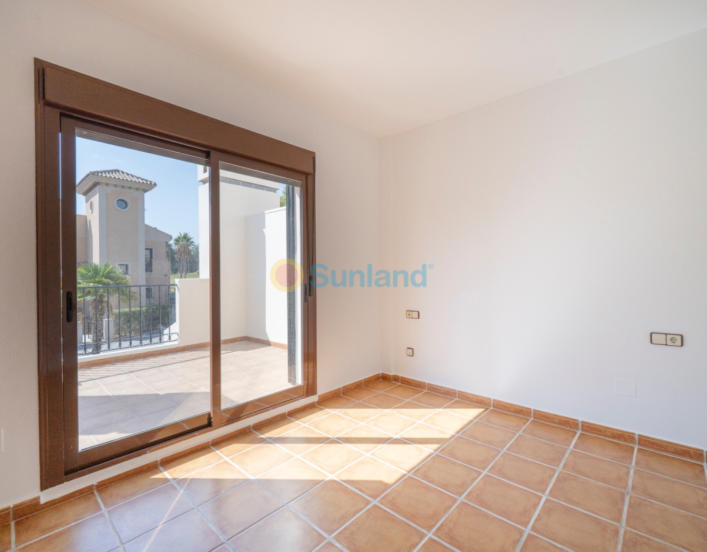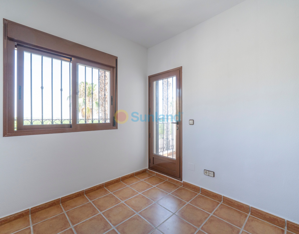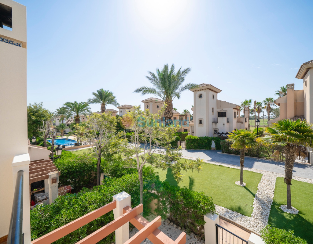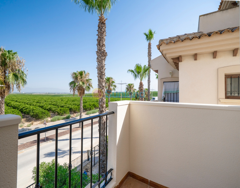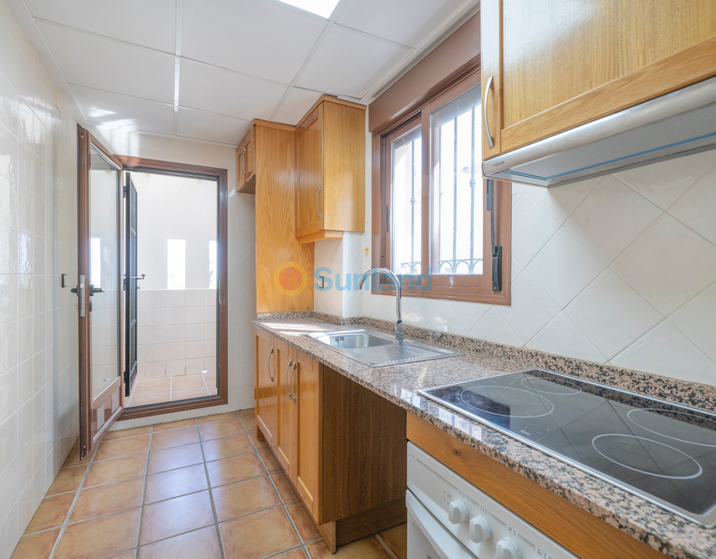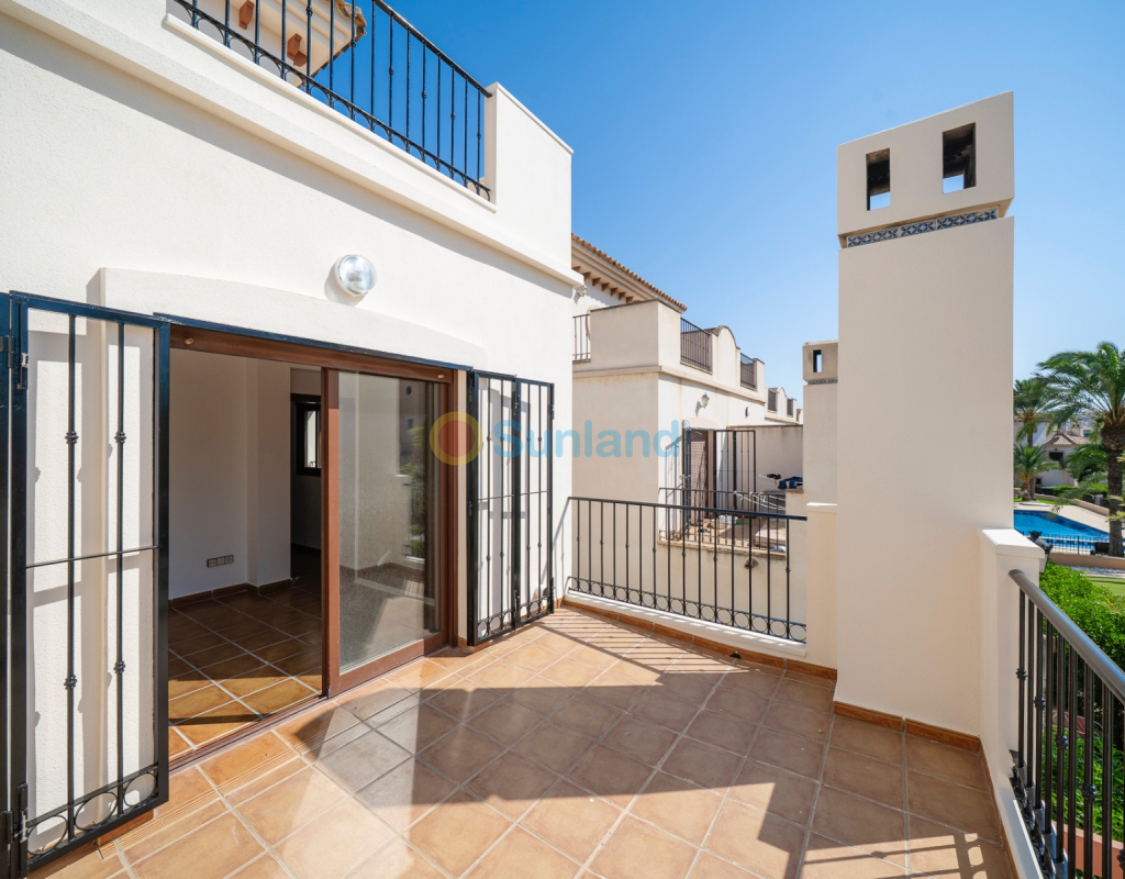 Reihenhaus im Wohnkomplex "Paradise Golf" Dieses charmante Reihenhaus befindet sich in der exklusiven Wohnanlage "Paradise Golf" und ist bezugsfertig. Es verfügt über einen Vorgarten mit Parkplatz sowie eine gemütliche hintere Veranda mit Grill, die direkten Zugang zum Wohnzimmer bietet. Im Erdgeschoss befinden sich ein großzügiges Wohnzimmer mit Kamin, eine separate Küche mit Hauswirtschaftsraum, ein Schlafzimmer mit Einbauschrank und ein Badezimmer mit Dusche. Im ersten Obergeschoss gibt es zwei helle Schlafzimmer mit Einbauschränken – eines mit Balkon und das andere mit einer schönen privaten Terrasse – sowie ein voll ausgestattetes Badezimmer. Im obersten Stockwerk befindet sich eine sonnige Dachterrasse mit freiem Ausblick, ideal zum Entspannen oder Sonnenbaden. Die Wohnanlage verfügt über einen Gemeinschaftspool. Das Haus wurde kürzlich gestrichen und befindet sich in hervorragendem Zustand. Wird unmöbliert verkauft.