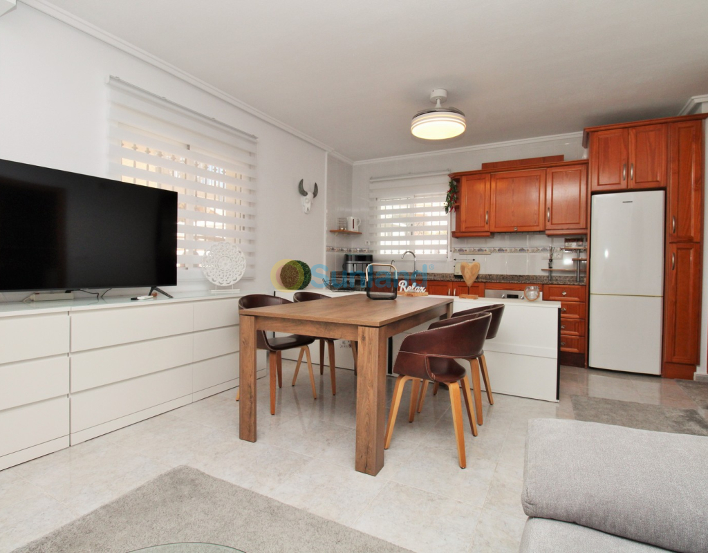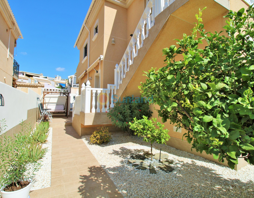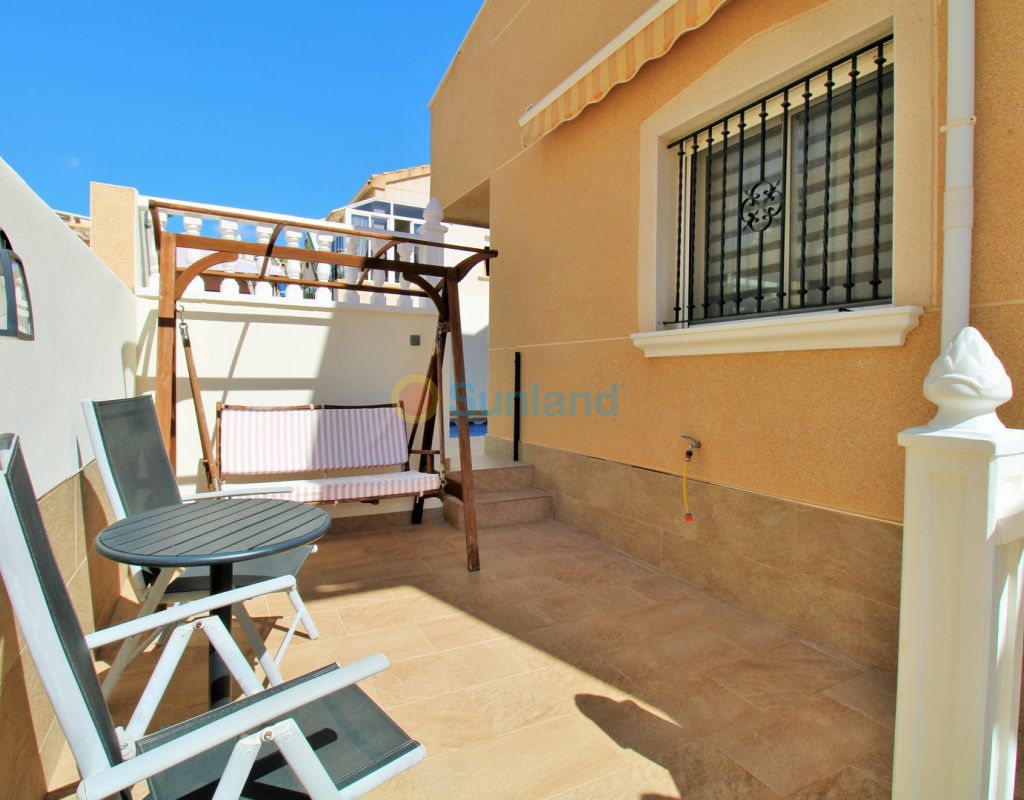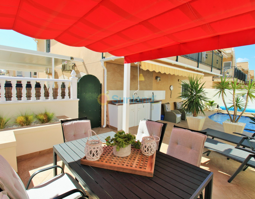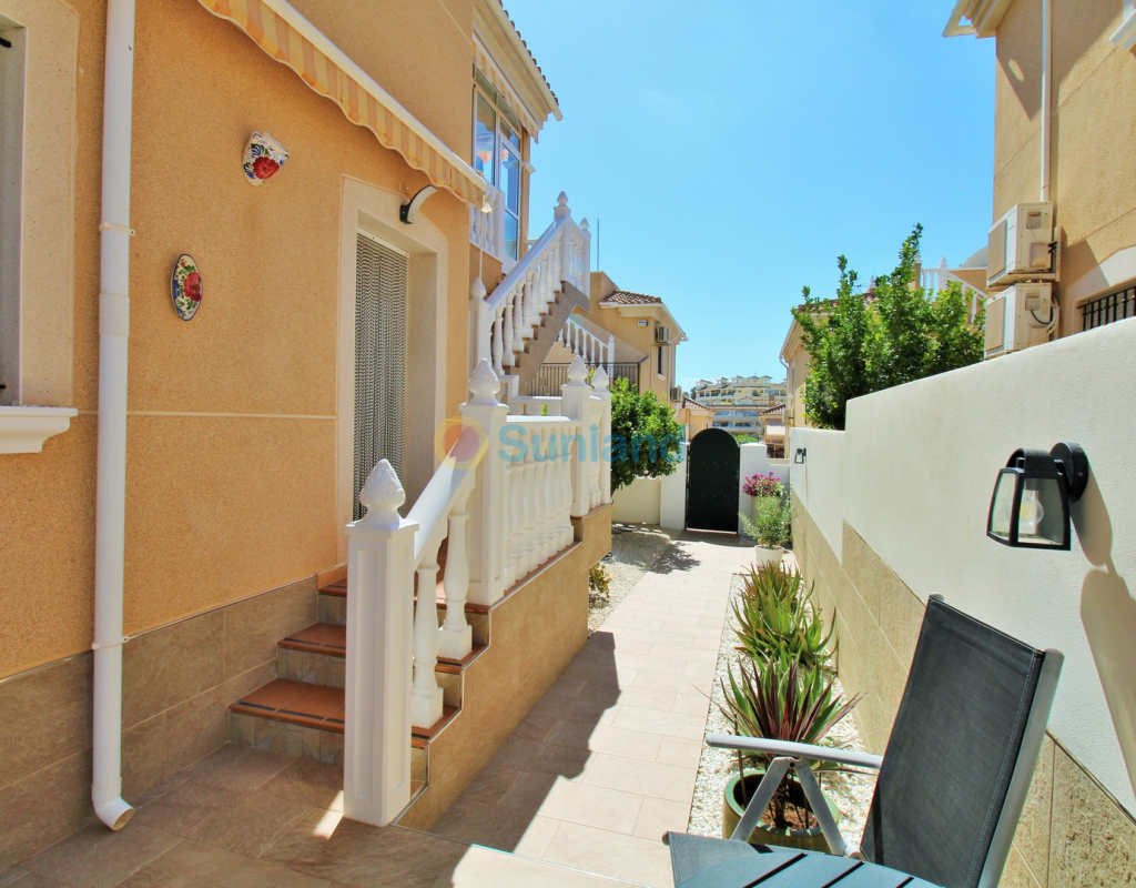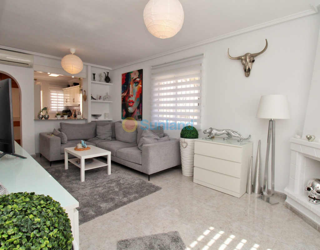 Villa Tialta ist eine gepflegte freistehende Villa in der beliebten Wohnanlage Montegolf in Villamartin. Sie bietet großzügigen Wohnraum auf zwei unabhängigen Ebenen – ideal für Familien oder als Mietinvestition. Das Hauptgeschoss umfasst ein helles Wohn- und Esszimmer, eine voll ausgestattete Küche, zwei Schlafzimmer und zwei moderne Bäder. Vom Wohnzimmer Zugang zur privaten Terrasse mit Pergola und zur verglasten Veranda.Das Untergeschoss verfügt über ein separates Gästeapartment mit Wohnzimmer, Küche, zwei Schlafzimmern und großem Bad, mit direktem Zugang zum Garten.Der Außenbereich bietet einen privaten Pool, Sommerküche, Sitzbereich, Garage und Stellplätze.Teilweise möbliert, mit Klimaanlage, Deckenventilatoren und Vorbereitung für Zentralheizung und Solarpaneele.In Gehweite zum Villamartin Plaza, nah an Golfplätzen und Stränden der Orihuela Costa.