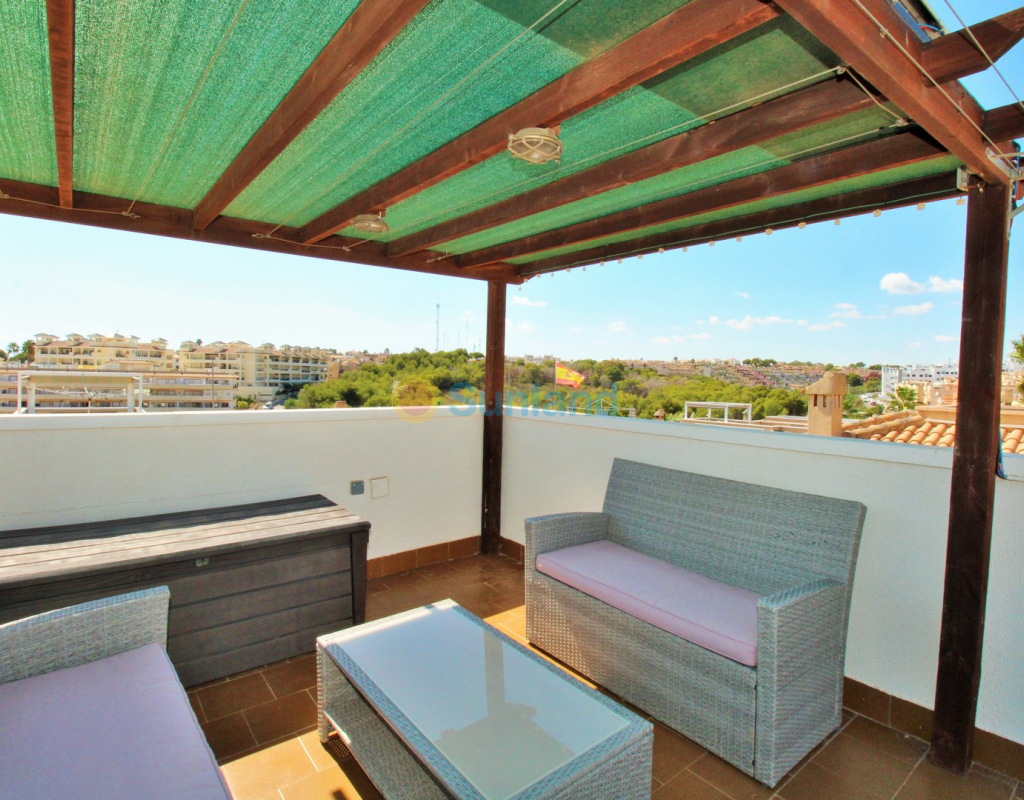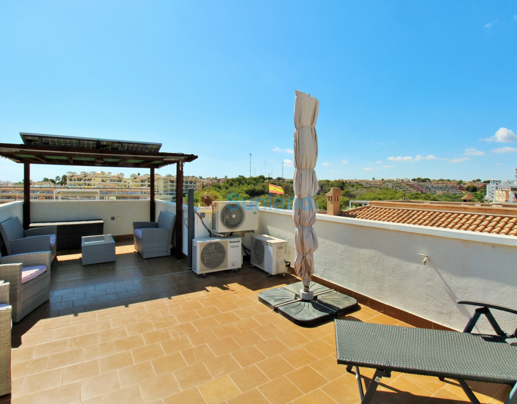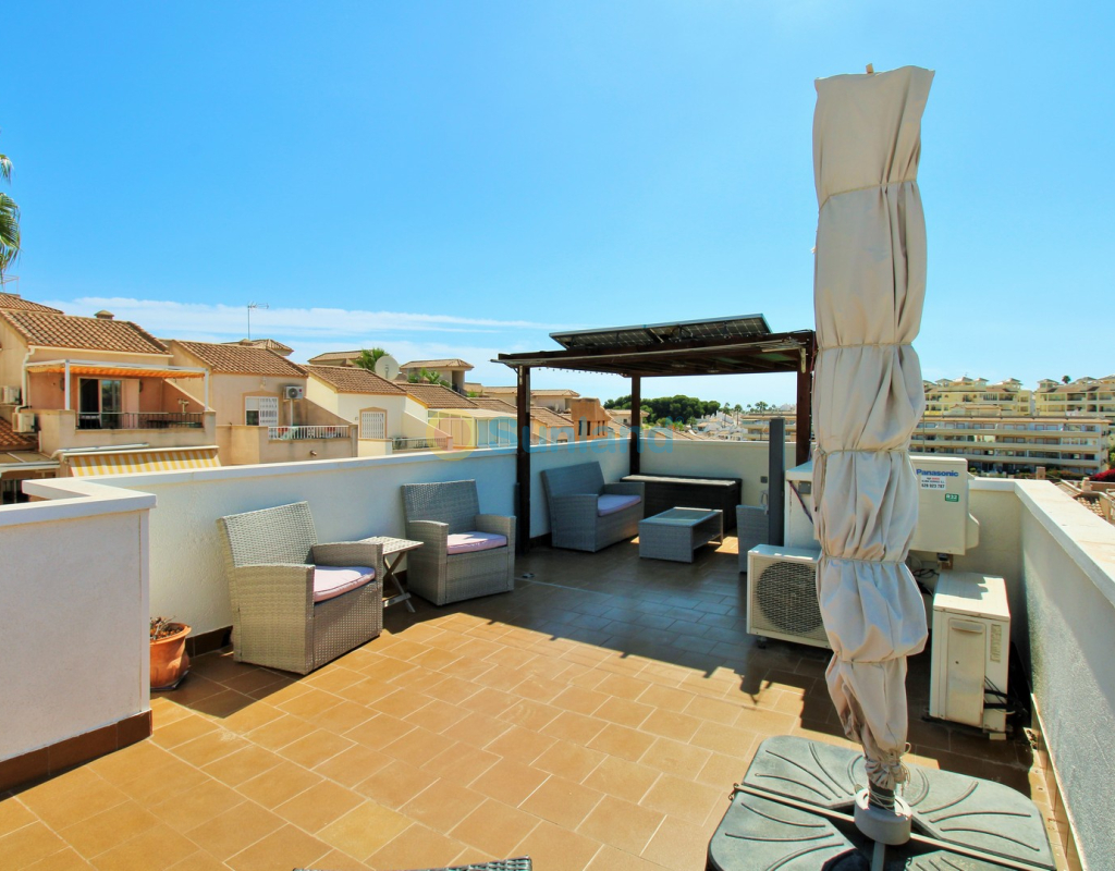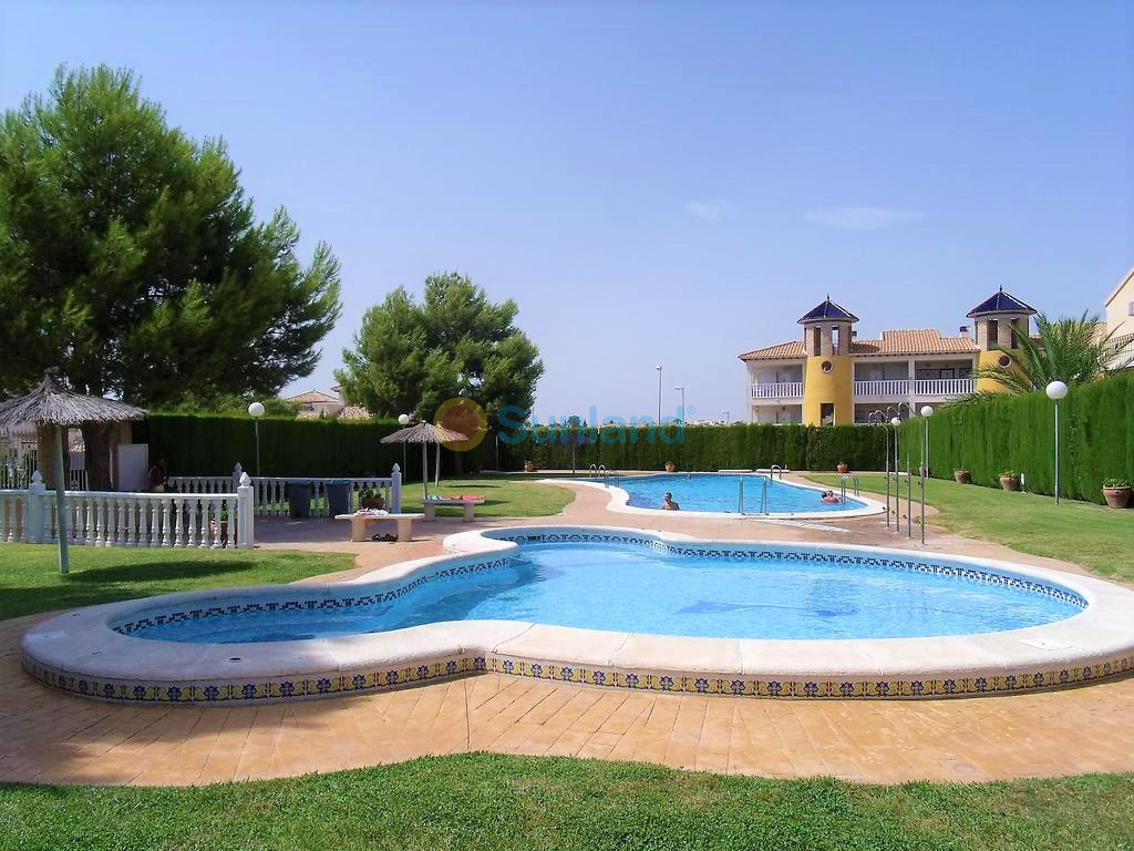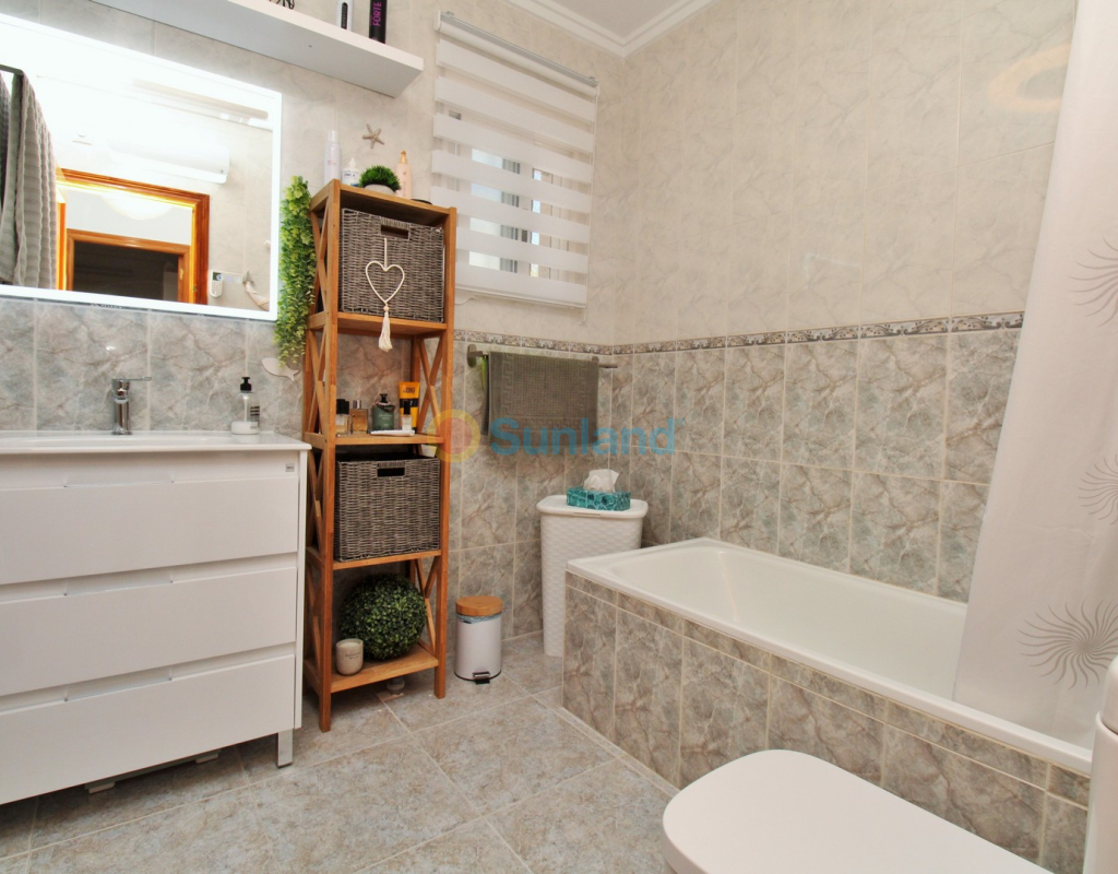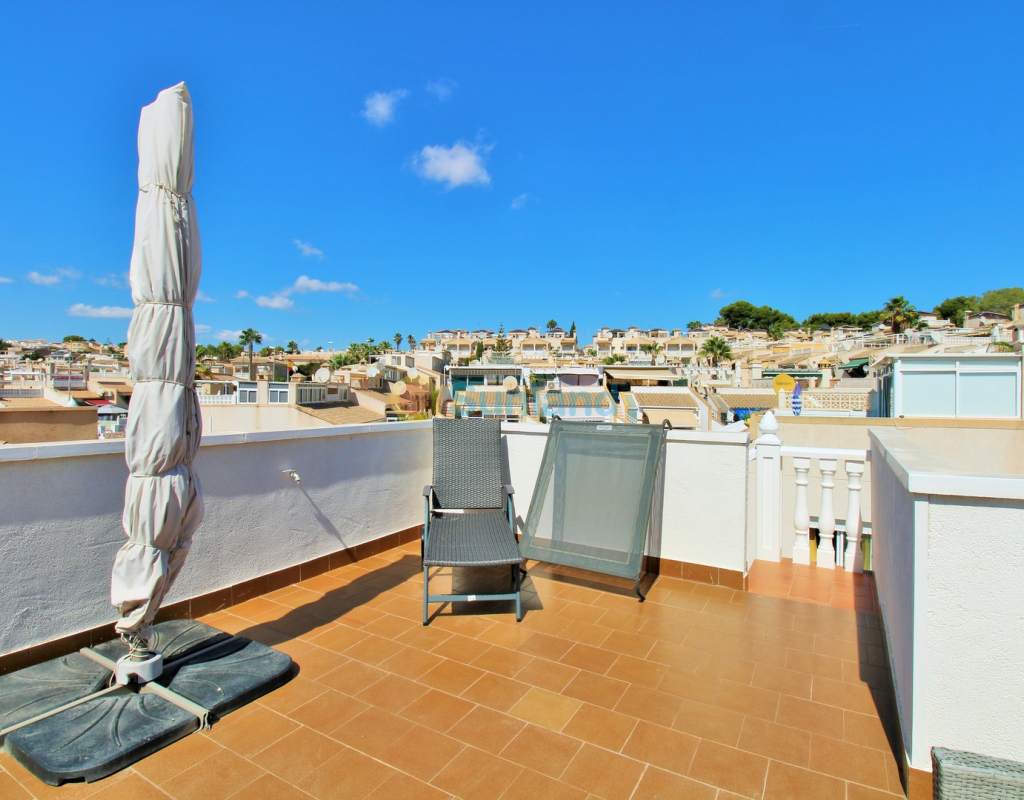 Villa Tialta ist eine gepflegte freistehende Villa in der beliebten Wohnanlage Montegolf in Villamartin. Sie bietet großzügigen Wohnraum auf zwei unabhängigen Ebenen – ideal für Familien oder als Mietinvestition. Das Hauptgeschoss umfasst ein helles Wohn- und Esszimmer, eine voll ausgestattete Küche, zwei Schlafzimmer und zwei moderne Bäder. Vom Wohnzimmer Zugang zur privaten Terrasse mit Pergola und zur verglasten Veranda.Das Untergeschoss verfügt über ein separates Gästeapartment mit Wohnzimmer, Küche, zwei Schlafzimmern und großem Bad, mit direktem Zugang zum Garten.Der Außenbereich bietet einen privaten Pool, Sommerküche, Sitzbereich, Garage und Stellplätze.Teilweise möbliert, mit Klimaanlage, Deckenventilatoren und Vorbereitung für Zentralheizung und Solarpaneele.In Gehweite zum Villamartin Plaza, nah an Golfplätzen und Stränden der Orihuela Costa.