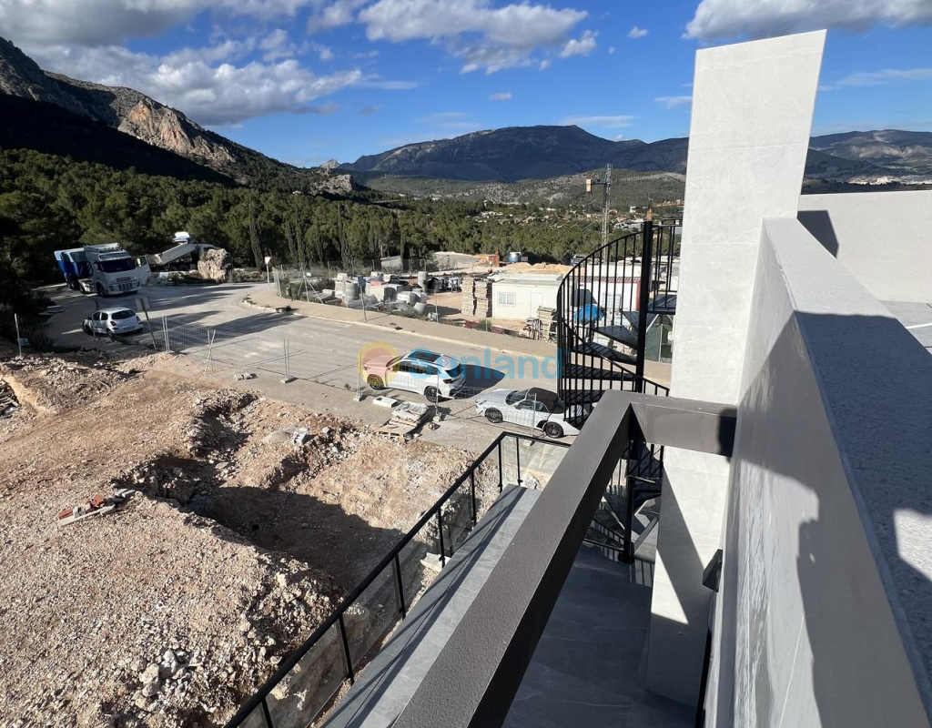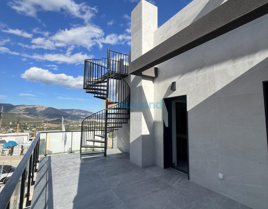 NYBYGDE REKKEHUS I POLOP Nybygde moderne rekkehus og tomannsboliger med flere terrasser og solarium, helt inngjerdet, med parkeringsplass for biler og privat svømmebasseng i Polop. Moderne eiendommer med 3 romslige soverom med innebygde garderober (det viktigste i første etasje, med bad og omkledningsrom en suite), 2 romslige bad, stor stue-spisestue med åpent kjøkken, romslige terrasser. Kjøkkenet er utstyrt med underskap og benkeplater i silestone, keramisk komfyr, stekeovn, avtrekksvifte, kjøleskap, vaskemaskin, oppvaskmaskin og aerotermisk varmeapparat. Førsteklasses kvaliteter: innvendig snekkerarbeid i tre og hvitlakkert laminat, utvendig snekkerarbeid i antrasittgrå pvc med doble vinduer og kuldebrobryter, automatiske persienner med aluminiumslameller, sklisikre keramiske gulv av 1. kvalitet, glatte vegger, sikkerhetsdør med 5 forankringspunkter, store innebygde garderober. Byen Polop byr på et fantastisk utvalg av muligheter for alle som elsker å være ute i naturen, omgitt av natur og enestående fred. Kommunen har et middelhavsklima med kjøligere temperaturer og renere luft, og ligger mindre enn 10 kilometer fra Benidorm, Altea og strendene der. Den strekker seg fra elvene Guadalest og Algar til byen Villajoyosa, inkludert strendene i Albir og Benidorm, og innover i landet grenser den til Callosa og Guadalest.