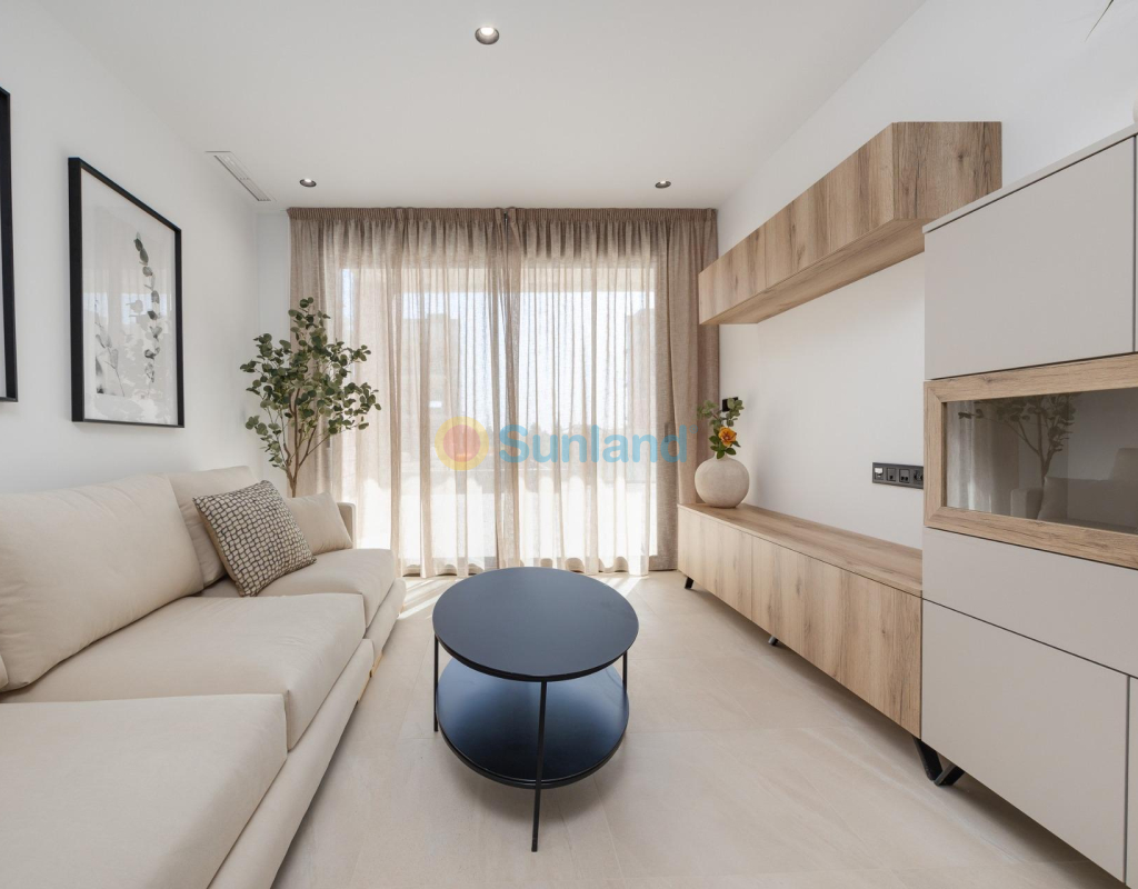 NYBYGD BOLIGKOMPLEKS NÆR LA SERENA GOLF, LOS ALCAZARES Dette fantastiske komplekset vil bestå av 244 leiligheter med 2 og 3 soverom, fordelt på 8 blokker og 20 private villaer. Moderne leiligheter i 3 etasjer (første etasje pluss 2), første etasje med fine hager, og noen av dem med privat svømmebasseng og andre etasje med fine terrasser og private solarium. Hjørneleiligheter (4 per etasje) og leiligheter i toppetasjen har 3 soverom og resten 2 soverom. Østvendte leiligheter med utsikt mot fellesområdene og vestvendte med fantastisk utsikt over golfbanen. Kompleks med felles svømmebasseng og fellesområder. Hver leilighet har sin egen parkeringsplass og privat bod i kjelleren, inkludert i prisen. Boligen ligger i frontlinjen av den prestisjetunge golfbanen "La Serena Golf". Denne golfbanen er kjent for sine innsjøer og vegetasjon som fletter seg sammen med golfbanen. Vannet og innsjøene er til stede i 16 av de 18 hullene, men hele banen er designet for å tilby golfspilleren forskjellige strategier i hvert hull. Et annet aspekt som gjør denne golfbanen unik, er at den er forbundet med sentrum til fots, noe som er umulig å finne på andre golfsteder som lar oss nyte roen og skjønnheten i området uten å nekte tilgangen til tjenestene som Los Alcázares tilbyr. Los Alcázares er et eksepsjonelt område på Costa Cálida, bare 25 minutter fra Murcia flyplass og 55 minutter fra Alicante flyplass. Området er forbundet via motorvei med byene Cartagena, Murcia og Alicante og resten av strendene på Costa Cálida og Costa Blanca.