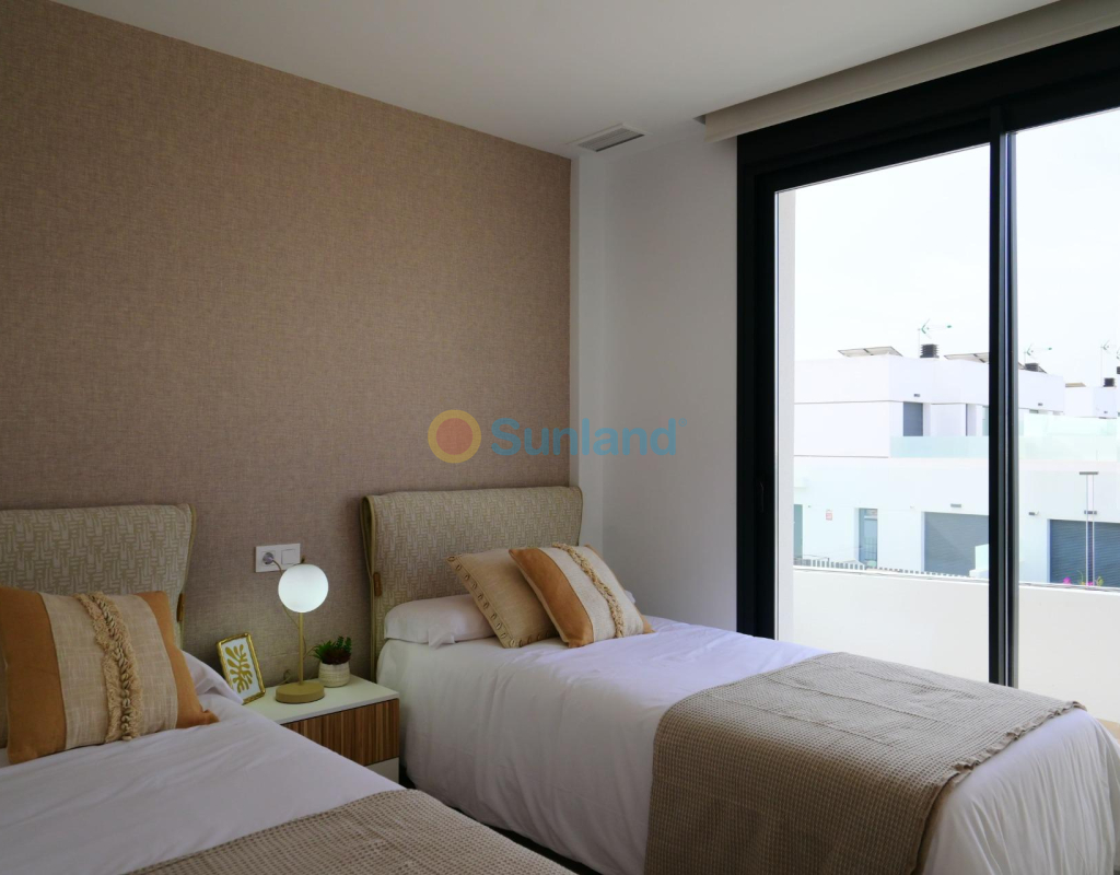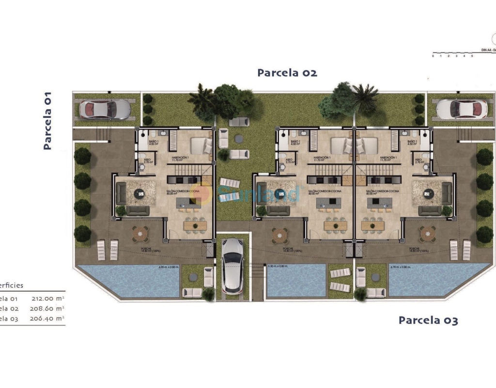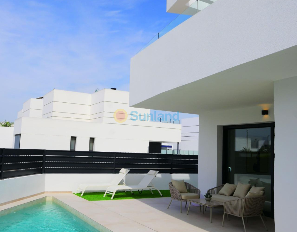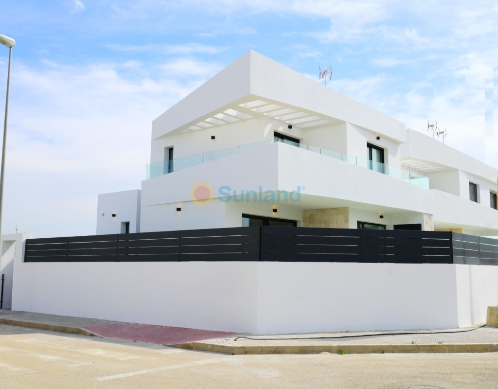 NYBYGDE TOMANNSBOLIGER I DOLORES Nybygget utvikling av villaer i Dolores, Alicante. Disse eksklusive eiendommene har en elegant og moderne design. Boliger med topp kvalitet, designet for å kombinere velvære og komfort. Moderne villaer og tomannsboliger med tomter på mer enn 200 m2. Alle boligene er svært lyse med 3 store soverom og 3 fullt utstyrte private bad. Det er også et ekstra gjestetoalett. Med sin store tomt har boligene en hage med separat svømmebasseng og en parkeringsplass på tomten. Å bo i Dolores er et fantastisk valg for deg som ønsker et rolig og autentisk liv på Costa Blanca. Denne sjarmerende spanske landsbyen, som ligger i Vega Baja-regionen, vil tilby deg mange fordeler. Dolores er en by som ligger i provinsen Alicante med perfekt kommunikasjon, det er bare 30 minutter fra Alicante-Elche lufthavn, og har alle nødvendige tjenester og fasiliteter, inkludert supermarkeder, restauranter, barer og skoler. Det er en by med stor sjarm, omgitt av fantastiske naturlandskap, som naturparken Lagunas de la Mata og Torrevieja, du kan nyte de beste strendene på Costa Blanca som ligger bare noen få minutters kjøretur unna, dens gastronomi og fremfor alt roen og harmonien som området vil gi deg.