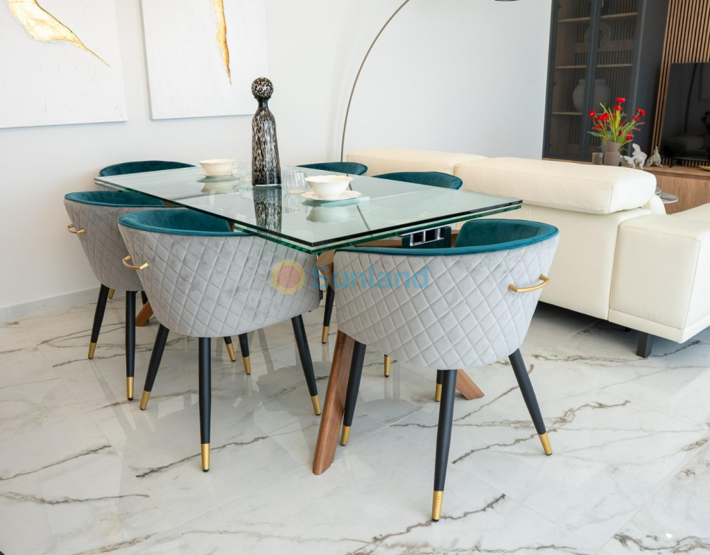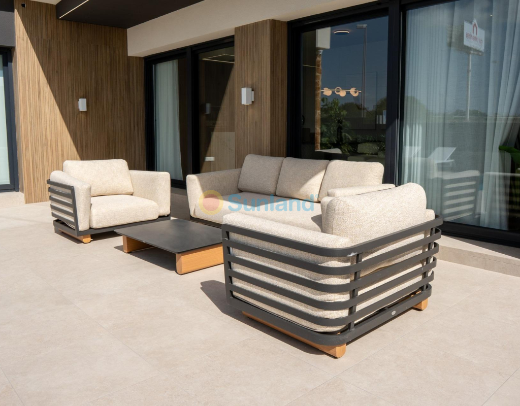 Eksklusivt middelhavsliv i Lo Marabú, Ciudad Quesada Førsteklasses beliggenhet med natur og bekvemmelighet Oppdag sjarmen ved å bo i Lo Marabú, Ciudad Quesada, et eksklusivt boligområde som kombinerer moderne komfort med skjønnheten i middelhavsnaturen. Dette boligområdet har en førsteklasses beliggenhet og tilbyr enkel tilgang til viktige tjenester, samtidig som det gir et rolig og fredfylt miljø. Bare en kort kjøretur unna finner du de fantastiske saltlagunene i La Mata og Torrevieja, et paradis for naturentusiaster, fotografer og de som søker velvære. Vakre strender og utendørsaktiviteter Bare 15 minutter unna ligger de uberørte strendene i Guardamar del Segura og Torrevieja, hvor du kan nyte gylne sanddyner og krystallklart vann. Disse kystperlene byr på muligheter for avslapning, vannsport og pittoreske spaserturer langs kysten. For friluftsentusiaster kan området skilte med mange tur- og sykkelstier, mens golfentusiaster vil sette pris på nærheten til flere prestisjefylte golfbaner, som gir en førsteklasses sportsopplevelse. Boliger og fasiliteter av høy kvalitet Dette boligkomplekset har gjennomtenkt designede boliger, blant annet Bungalower: Enheter i første etasje med privat hage eller i toppetasjen med solarium. Alle bungalower har to soverom, to bad, parkeringsplass og bod, og de ligger rundt et sentralt fellesområde med svømmebasseng og hageanlegg. Villaer: Uavhengige eiendommer med tre soverom og 2/3 bad, tilgjengelige i en eller to etasjer. Hver villa har et privat basseng, et solarium og parkering på tomten. Kjeller er også tilgjengelig som tilvalg. Moderne komfort og eksepsjonelle funksjoner Alle boligene er bygget med materialer og utførelser av topp kvalitet: PVC-vinduer med doble vinduer og fjernstyrte motoriserte skodder. Elektrisk gulvvarme på badene. Kanalisert klimaanlegg. Villaer med private bassenger (3,00 x 6,00 m) og dusjer i rustfritt stål. Felles svømmebasseng med barneområde for bungalowbeboere. Som et spesielt lanseringstilbud inkluderer utvalgte boliger hvitevarer og en møbelpakke. Utmerkede forbindelser og lokale høydepunkter Dette prosjektet har en strategisk beliggenhet i Rojales, Alicante, og tilbyr utmerket infrastruktur og gode tilkoblingsmuligheter: Alicante-Elche lufthavn (ALC): 38 km (35 minutter med bil). Murcia-Corvera lufthavn (RMU): 65 km (50 minutter med bil). Nærheten til hovedveier som AP-7 og N-332 sikrer enkel tilgang til byer og attraksjoner i nærheten. Lokale kjøpesentre, restauranter og daglige fasiliteter ligger innen gangavstand. Omfavn middelhavslivet Med sin perfekte blanding av moderne livsstil, naturlig skjønnhet og enestående bekvemmelighet er dette boligkomplekset i Lo Marabú det ideelle valget for deg som søker en livsstil av høy kvalitet. Ikke gå glipp av sjansen til å investere i ditt drømmehus i hjertet av Middelhavet. Kontakt oss i dag for å avtale en visning eller for å lære mer om dette eksepsjonelle prosjektet!