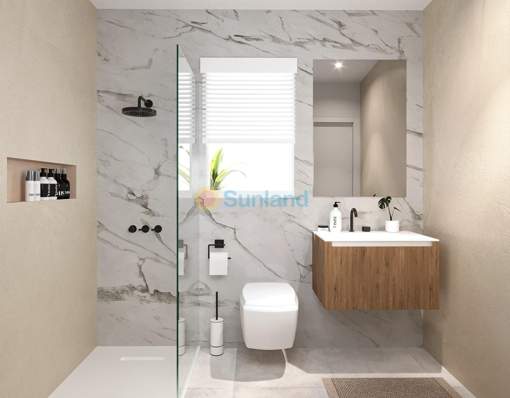 Moderne nybyggede villaer i Los Alcázares Luksusliv nær stranden Oppdag dette eksklusive boligprosjektet med fem enetasjes villaer i den sjarmerende byen Los Alcázares. Hver villa har et privat svømmebasseng med fossefall, et romslig solarium for solskinn året rundt, og moderne interiør designet for komfort og stil. Med tre soverom og to bad er disse boligene perfekte for familier, par eller andre som ønsker et luksuriøst fristed. Kjøkkenet er fullt utstyrt med elegante, svarte hvitevarer, mens den doble takhøyden i oppholdsrommet forsterker følelsen av rom og lys. Førsteklasses funksjoner for en komfortabel livsstil Disse villaene er konstruert med materialer av høy kvalitet og har gjennomtenkte detaljer som sikrer en moderne og praktisk boopplevelse: Utvendig snekkerarbeid i hvit aluminium eller PVC med doble vinduer for optimal solbeskyttelse. Fullt utstyrte bad, inkludert innebygde nisjer i dusjen, speil med belysning og servantskap. Innredede garderober på soverommene med innebygde skuffer. Høyeffektiv varmtvannsbereder for bærekraftig energiforbruk. Forinstallasjon av klimaanlegg via kanaler i stuer og soverom. Privat svømmebasseng med innebygde sitteplasser, trapper, fossefall og undervannsbelysning. Kunstgress og et sommerkjøkken med benkeplate og uttak for et minikjøleskap på solariumet. Førsteklasses beliggenhet i Los Alcázares Disse villaene ligger bare 1,5 km fra de uberørte strendene i Mar Menor, og tilbyr den perfekte balansen mellom ro og bekvemmelighet. Los Alcázares er kjent for sin pulserende kystlivsstil, vannsport og solskinn året rundt. Den nærliggende Serena Golf-banen ligger bare 2 km unna, noe som gjør det ideelt for golfentusiaster. Tilgjengelighet til viktige severdigheter Los Alcázares har utmerkede forbindelser til større byer og attraksjoner: Murcia-Corvera lufthavn: 30 km (20 minutter med bil) Alicante lufthavn: 90 km (1 time med bil) Cartagena: 25 km Zenia Boulevard kjøpesenter: 35 km Serena Golf: 2 km Drømmehuset ditt venter Omfavn middelhavsstilen i disse utsøkte nybyggede villaene i Los Alcázares. Enten du er på utkikk etter et permanent hjem eller et feriested, tilbyr disse eiendommene alt du trenger for en komfortabel og luksuriøs boopplevelse. Kontakt oss i dag for å planlegge en visning eller be om mer informasjon!