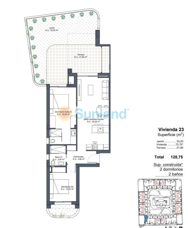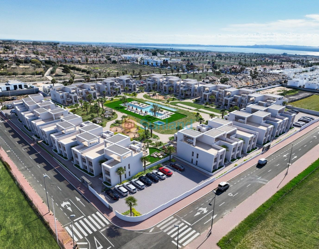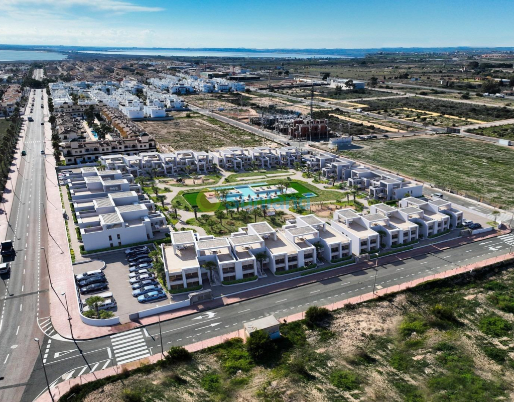 Eksklusive nybygg i Lo Marabú, Ciudad Quesada Moderne design og maksimal komfort i middelhavsomgivelser Oppdag dette spektakulære boligkomplekset i Lo Marabú, Ciudad Quesada, som består av 80 boliger med 2 og 3 soverom og 2 bad. Disse boligene er designet med en moderne og effektiv tilnærming, og har romslige terrasser, kryssventilasjon og høy kvalitet på finishen for å maksimere komfort og energieffektivitet. Boligene i første etasje har private hager, mens boligene i toppetasjen har private solarium med forhåndsinstallasjon for boblebad og utedusj. I tillegg har prosjektet felles svømmebassenger omgitt av hager, noe som skaper et perfekt miljø for avslapping og sosialt samvær. Funksjoner av høy kvalitet for en eksklusiv livsstil Alle boligene er designet for å tilby maksimal komfort, med materialer av topp kvalitet og moderne design: Store skyvevinduer i aluminium med termosperre. Motoriserte persienner for økt komfort. Climalit 4+4/14/4/4/4+4-vinduer for termisk og akustisk isolasjon. Pansret inngangsdør med sikkerhetslås. Fullt utstyrt kjøkken med elektriske apparater inkludert. Bad med møbler, speil og dusjvegger. 150L aerotermisk system for varmt vann. Komplett installasjon av luftkondisjonering med kanaler (varmt/kaldt). Belysning i alle rom allerede innlemmet. Parkeringsplass inkludert. Takket være den doble fasadedesignen tilbyr boligene naturlig kryssventilasjon, noe som gir kjølighet om sommeren og reduserer energiforbruket i klimaanlegg. Privilegert beliggenhet i Ciudad Quesada Lo Marabú er et eksklusivt boligområde i Ciudad Quesada (Rojales), omgitt av naturområder og med alle tjenester innen rekkevidde. Urbanisasjonen ligger svært nær saltsjøene i La Mata og Torrevieja, et ideelt miljø for å nyte naturen og forbedre ditt velvære. Fra ditt nye hjem har du rask tilgang til de viktigste severdighetene i området: Guardamar del Segura og Torrevieja strender - 10 km (15 minutter med bil). Alicante-Elche lufthavn (ALC) - 38 km (35 minutter med bil). Murcia-Corvera lufthavn (RMU) - 65 km (50 minutters kjøring). Prestisjefylte golfbaner - Mindre enn 5 km. Kjøpesentre og restauranter - bare noen få minutter unna. Rask tilgang til motorveiene AP-7 og N-332, som forbinder hele Costa Blanca. Et perfekt hjem for å nyte Middelhavet Med sin kombinasjon av moderne design, strategisk beliggenhet og eksepsjonelle naturomgivelser er disse boligene i Lo Marabu ideelle for permanent opphold, feriehus eller investeringseiendom. Ikke gå glipp av denne unike muligheten. Kontakt oss i dag for mer informasjon eller for å avtale en visning av ditt fremtidige hjem i Ciudad Quesada.