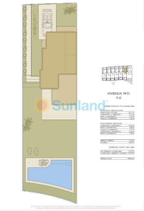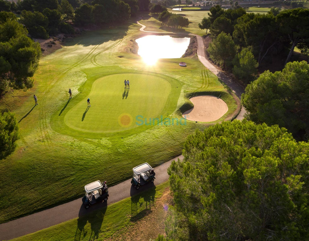 Nybygde villaer i frontlinjen av Lo Romero Golf Luksusvillaer i Lo Romero Golf Resort Oppdag 7 eksklusive nybyggede villaer som ligger i frontlinjen av Lo Romero Golf, og som tilbyr en perfekt blanding av luksus, komfort og fantastisk utsikt over golfbanen. Disse boligene skiller seg ut med sin førsteklasses beliggenhet og moderne arkitektoniske design, og er ideelle for kresne kjøpere som er ute etter en smart investering og eksepsjonell livskvalitet. Moderne design med førsteklasses funksjoner Hver villa har en sofistikert, moderne stil med førsteklasses finish. Boligene har tre romslige soverom, tre bad, åpen kjøkkenløsning i forbindelse med stuen, innebygde garderober og en privat hage med svømmebasseng. Ytterligere funksjoner inkluderer: Forsterkede sikkerhetsinngangsdører Motoriserte persienner som matcher snekkerarbeidene, med termisk og akustisk isolasjon Doble Climalit-vinduer med sikkerhetsglass som beskytter mot knusing Aerotermisk vannoppvarmingssystem for energieffektivitet Solcellepaneler for produksjon av elektrisk energi Forhåndsinstallasjon av kanalisert klimaanlegg Carport med pergola i elegante oksiderte bruntoner Murvegger i naturstein som skiller de private hagene fra golfbanen Førsteklasses beliggenhet i Pilar de la Horadada Villaene ligger i det sjarmerende Lo Romero Golf Resort, og har en privilegert beliggenhet i Pilar de la Horadada, en typisk spansk by på den sørlige delen av Costa Blanca. Den 18-hulls golfbanen er omgitt av et vakkert landskap og ligger bare en kort kjøretur fra de krystallklare middelhavsstrendene. Nærhet til viktige severdigheter Strender: De uberørte strendene Torre de la Horadada og Mil Palmeras ligger bare 6 km unna, og byr på fin sand og naturskjønne promenader. Shopping: Supermarkeder, butikker og spisesteder i Pilar de la Horadadas livlige hovedgate ligger bare en 5-minutters kjøretur unna. Flyplasser: Murcia-Corvera lufthavn ligger 40 minutter unna (ca. 45 km), og Alicante-Elche lufthavn ligger en 55-minutters kjøretur unna (ca. 75 km). Golf: Du har umiddelbar tilgang til Lo Romero golfbane, noe som gjør dette til et paradis for golfspillere. Nærliggende byer: Utmerkede veiforbindelser knytter deg til Alicante og Murcia for kulturelle utflukter og byfasiliteter. Nyt livsstilen på Costa Blanca Pilar de la Horadada kombinerer tradisjonell spansk sjarm med moderne fasiliteter. Spaser gjennom livlige torg, nyt middelhavsmat på lokale restauranter og opplev den avslappede livsstilen ved kysten. Gjør ditt drømmehus til virkelighet Ikke gå glipp av denne unike muligheten til å eie en golfvilla med uovertruffen kvalitet og beliggenhet. Kontakt oss i dag for å avtale en visning og begynn å nyte Costa Blanca-livsstilen!