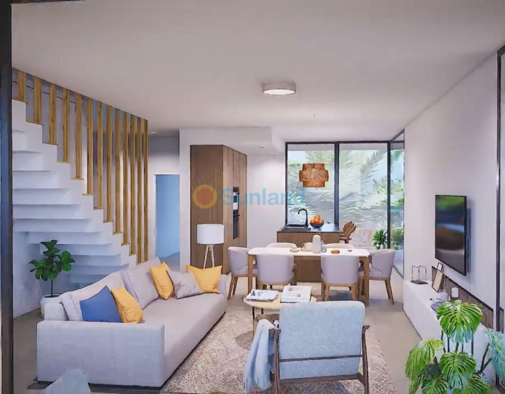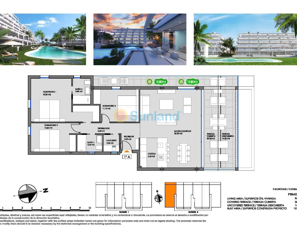 NYBYGG BOLIGKOMPLEKS I MAR DE CRISTAL Nybygg moderne boligkompleks med leiligheter og toppleiligheter som ligger svært nær promenaden og de lange vakre sandstrendene i Mar de Cristal. Du kan velge mellom leiligheter på bakkeplan med privat hage, leiligheter i mellometasjen med terrasse og toppleiligheter med privat solarium. Eiendommen har 2 eller 3 soverom og 2 bad. Leilighetene har en moderne design, og presenterer en åpen planløsning, som kombinerer kjøkken, spisestue og stue til en stor plass med utgang til terrasse. Hovedsoverommet har eget bad. Bygget med finish av topp kvalitet, garderober, forhåndsinstallasjon av luftkondisjonering, en bod og en underjordisk parkeringsplass. Alle daglige nødvendigheter, som supermarkeder, barer og restauranter, er tilgjengelig hele året rundt og ligger i nærheten av komplekset. Mar de Cristal har vakre sandstrender, et tennissenter, marina, supermarkeder, barer og restauranter. Calblanque nasjonalpark hvor du finner uberørte lange hvite sandstrender, samt den berømte La Manga Club og den travle byen Los Belones ligger alle innen 5 min kjøring fra landsbyen. Murcia flyplass er 25 minutter og Alicante 1 times kjøring. Du kan også besøke de historiske byene Cartagena og Murcia.