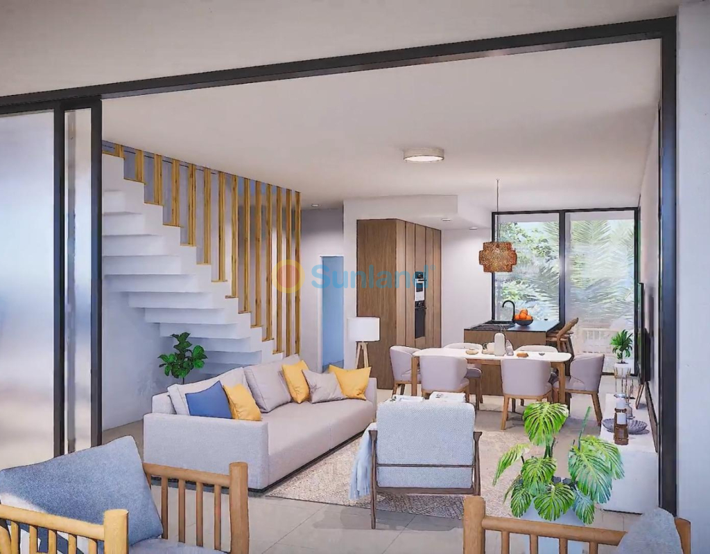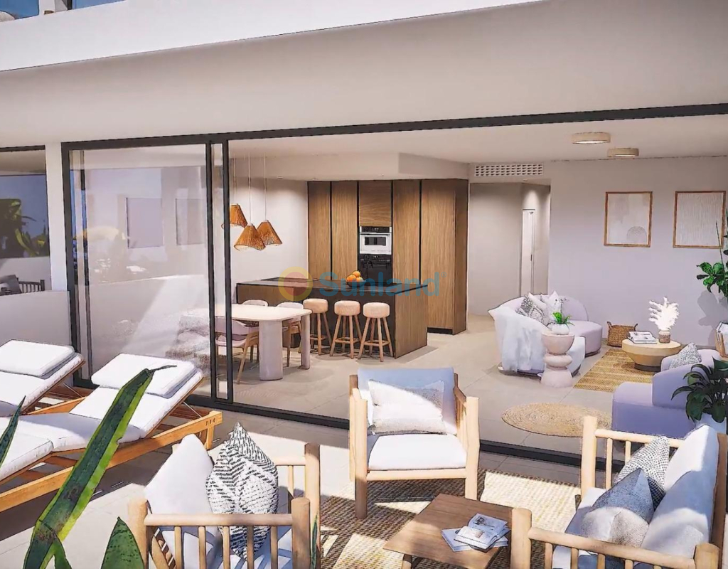 NYBYGG BOLIGKOMPLEKS I MAR DE CRISTAL Nybygg moderne boligkompleks med leiligheter og toppleiligheter som ligger svært nær promenaden og de lange vakre sandstrendene i Mar de Cristal. Du kan velge mellom leiligheter på bakkeplan med privat hage, leiligheter i mellometasjen med terrasse og toppleiligheter med privat solarium. Eiendommen har 2 eller 3 soverom og 2 bad. Leilighetene har en moderne design, og presenterer en åpen planløsning, som kombinerer kjøkken, spisestue og stue til en stor plass med utgang til terrasse. Hovedsoverommet har eget bad. Bygget med finish av topp kvalitet, garderober, forhåndsinstallasjon av luftkondisjonering, en bod og en underjordisk parkeringsplass. Alle daglige nødvendigheter, som supermarkeder, barer og restauranter, er tilgjengelig hele året rundt og ligger i nærheten av komplekset. Mar de Cristal har vakre sandstrender, et tennissenter, marina, supermarkeder, barer og restauranter. Calblanque nasjonalpark hvor du finner uberørte lange hvite sandstrender, samt den berømte La Manga Club og den travle byen Los Belones ligger alle innen 5 min kjøring fra landsbyen. Murcia flyplass er 25 minutter og Alicante 1 times kjøring. Du kan også besøke de historiske byene Cartagena og Murcia.
