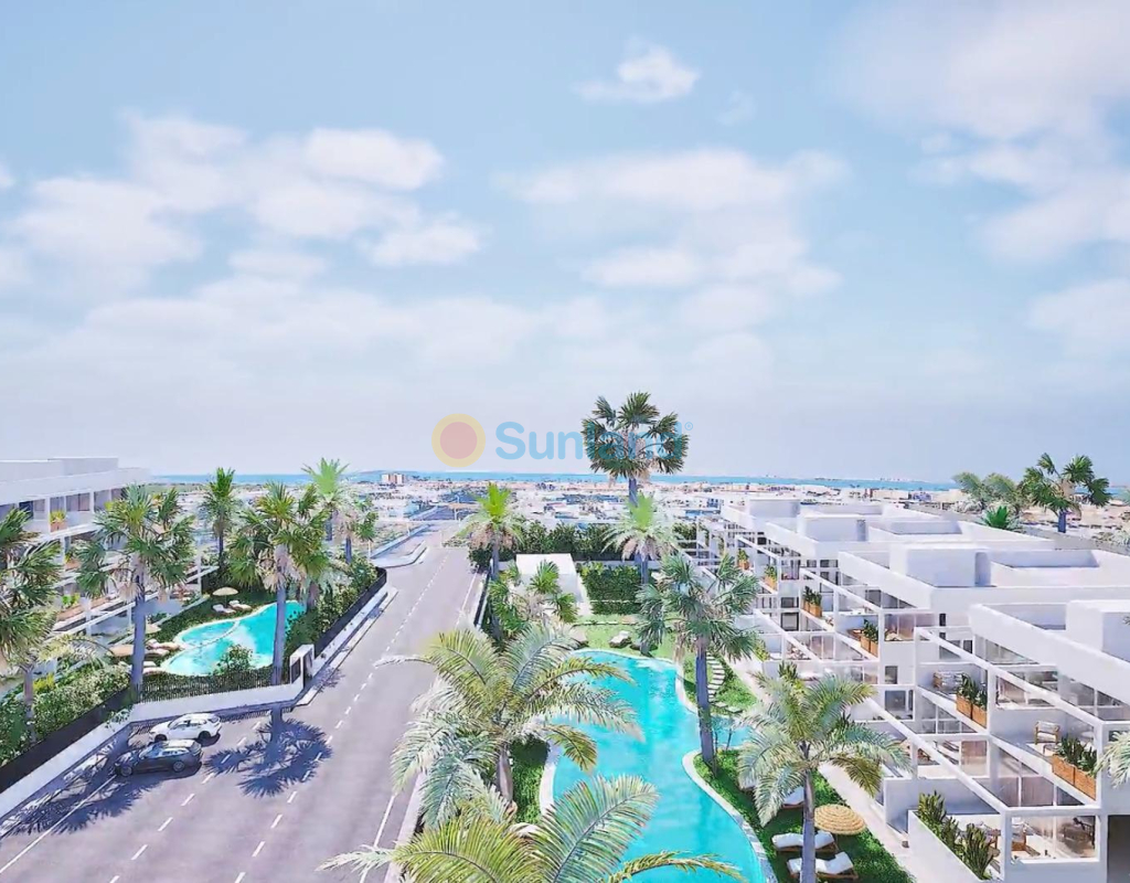 NYBYGG BOLIGKOMPLEKS I MAR DE CRISTAL Nybygg moderne boligkompleks med leiligheter og toppleiligheter som ligger svært nær promenaden og de lange vakre sandstrendene i Mar de Cristal. Du kan velge mellom leiligheter på bakkeplan med privat hage, leiligheter i mellometasjen med terrasse og toppleiligheter med privat solarium. Eiendommen har 2 eller 3 soverom og 2 bad. Leilighetene har en moderne design, og presenterer en åpen planløsning, som kombinerer kjøkken, spisestue og stue til en stor plass med utgang til terrasse. Hovedsoverommet har eget bad. Bygget med finish av topp kvalitet, garderober, forhåndsinstallasjon av luftkondisjonering, en bod og en underjordisk parkeringsplass. Alle daglige nødvendigheter, som supermarkeder, barer og restauranter, er tilgjengelig hele året rundt og ligger i nærheten av komplekset. Mar de Cristal har vakre sandstrender, et tennissenter, marina, supermarkeder, barer og restauranter. Calblanque nasjonalpark hvor du finner uberørte lange hvite sandstrender, samt den berømte La Manga Club og den travle byen Los Belones ligger alle innen 5 min kjøring fra landsbyen. Murcia flyplass er 25 minutter og Alicante 1 times kjøring. Du kan også besøke de historiske byene Cartagena og Murcia.