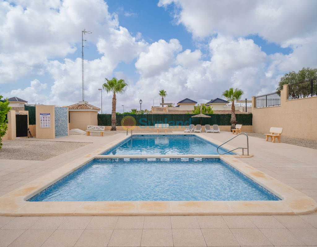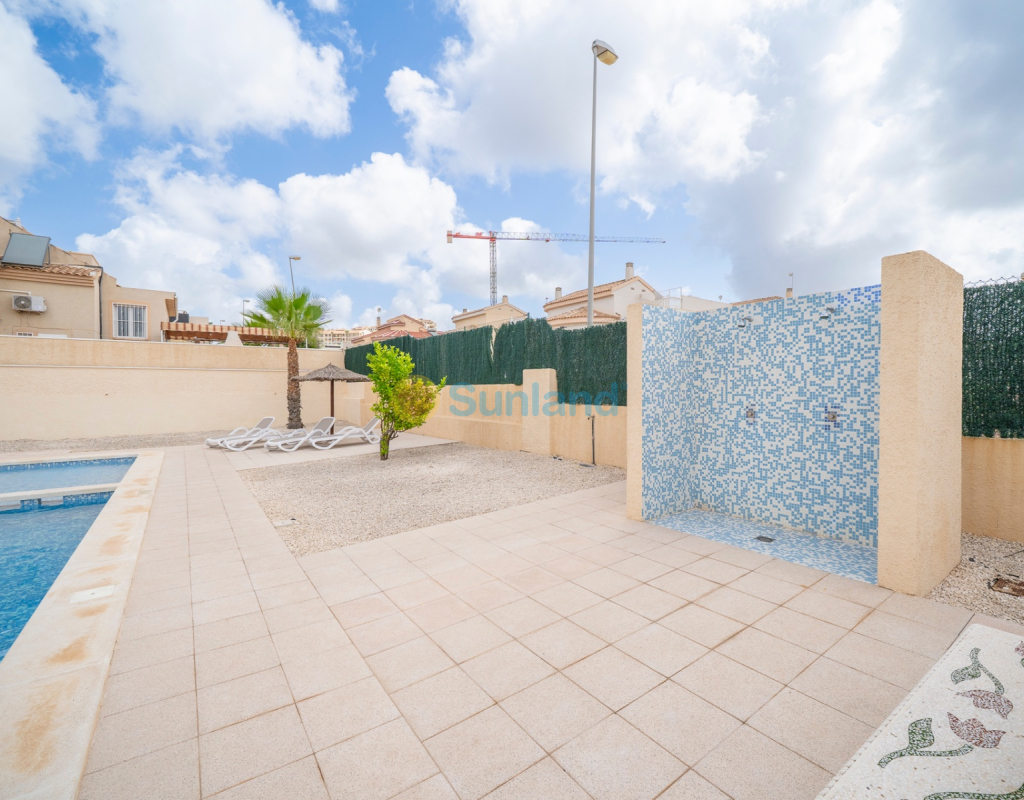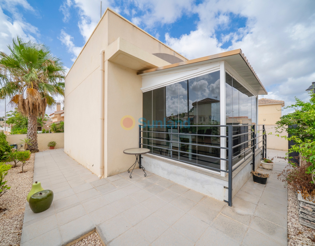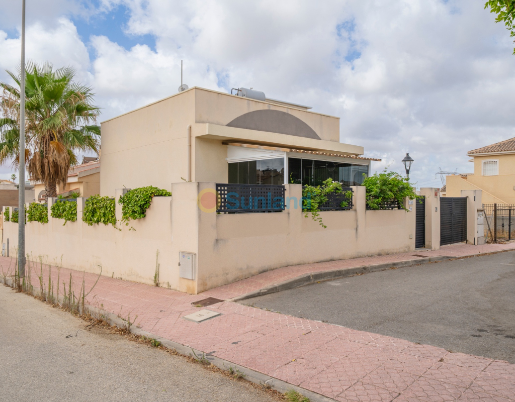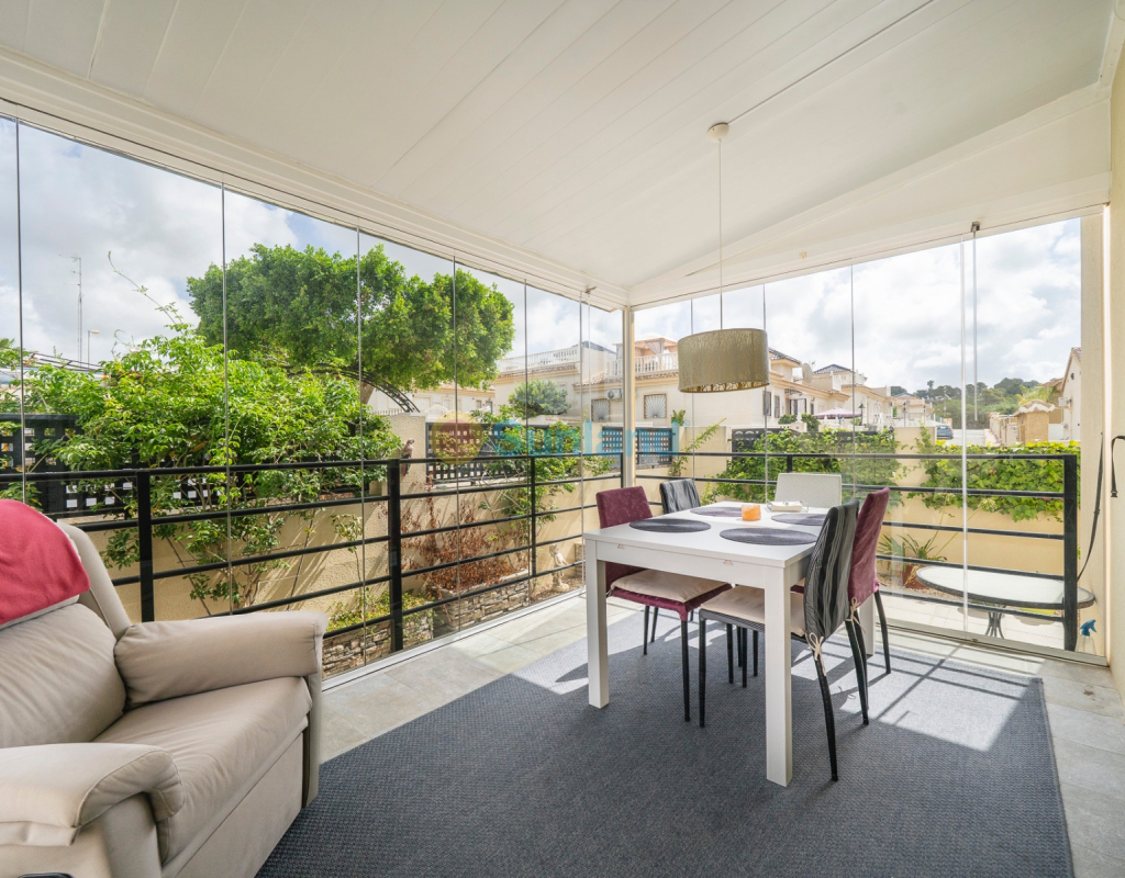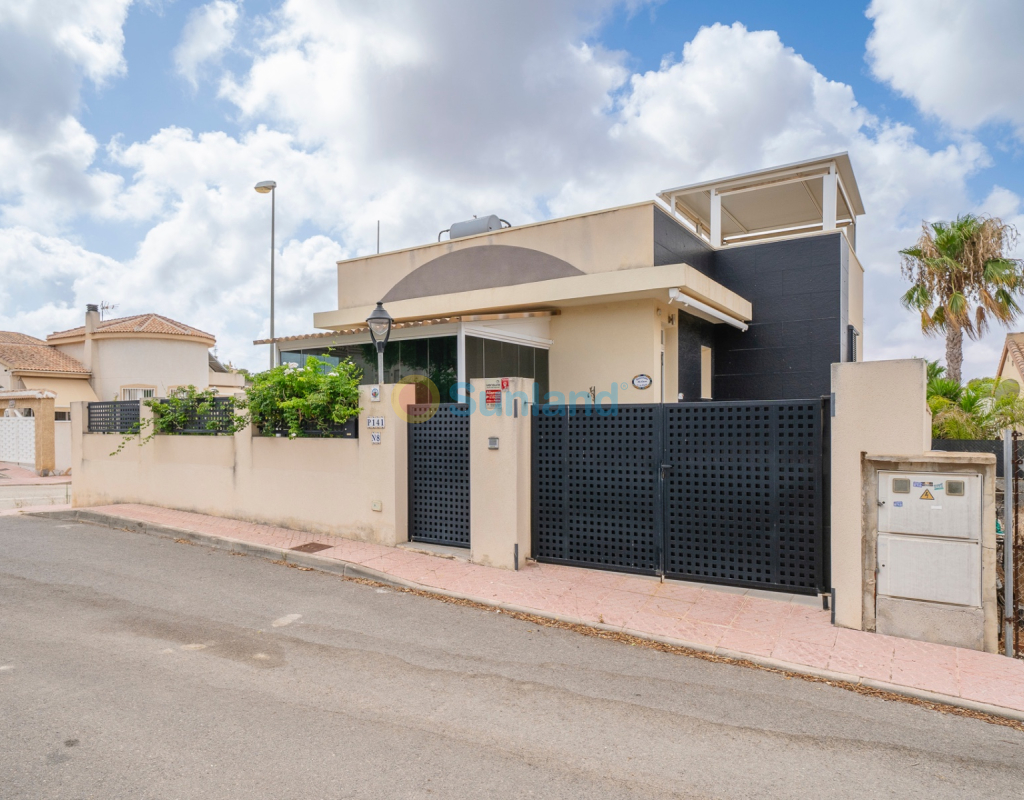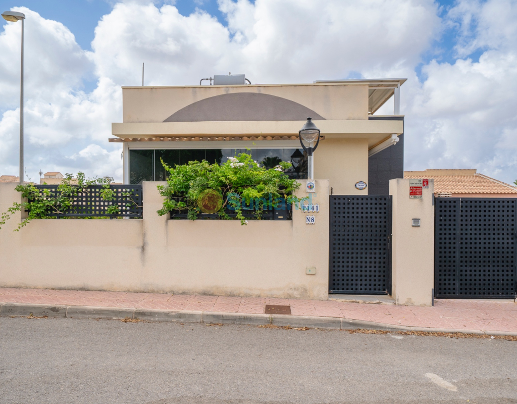 Sjarmerende Frittliggende Villa i Ciudad Quesada – Innflyttingsklar Vi presenterer denne koselige frittliggende villaen, som ligger i det prestisjefylte området Ciudad Quesada. Eiendommen ble bygget i 2012 og renovert i 2017, og kombinerer moderne komfort med middelhavsstil på en privat tomt på 211 m². Boligen har 78 m² bruksareal og består av 2 romslige soverom og 2 bad, hvorav ett er en suite med dusj. Det åpne kjøkkenet i amerikansk stil har en praktisk kjøkkenøy og er sømløst integrert med en lys og luftig stue. Det er klimaanlegg i begge soverom og i stuen, som gir komfort året rundt. Nyt det naturlige lyset og det milde klimaet fra den innglassede terrassen, eller slapp av på det romslige solariumet med pergola – perfekt for soling eller sene sommerkvelder. Tomten inkluderer også et praktisk grillområde, et lite bod på siden av huset og privat parkering på egen tomt. Som en del av et godt vedlikeholdt boligområde har eiendommen tilgang til et felles svømmebasseng, ideelt for å kjøle seg ned og sosialisere. En ideell bolig – enten som helårsbolig eller feriested. Ikke gå glipp av denne muligheten!