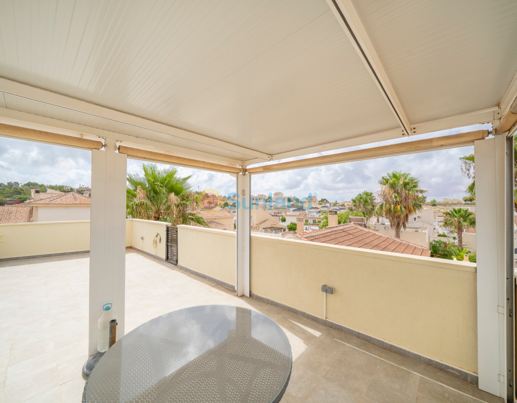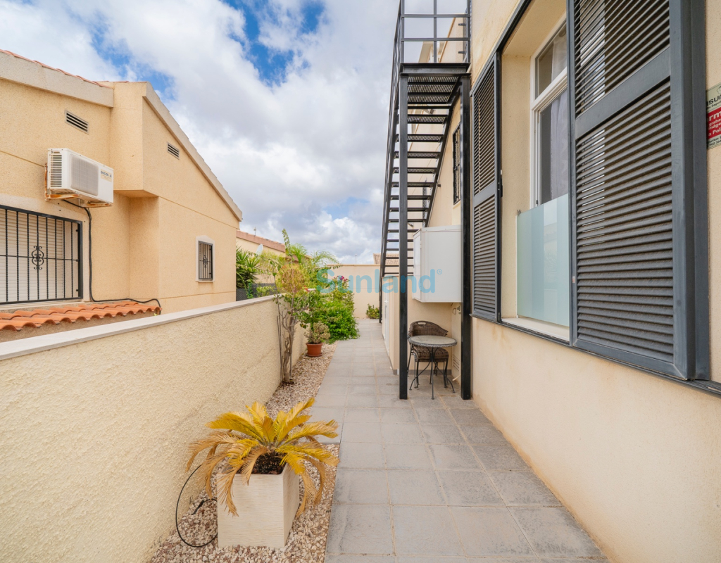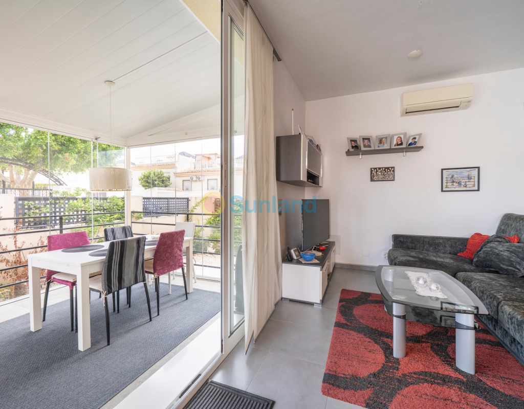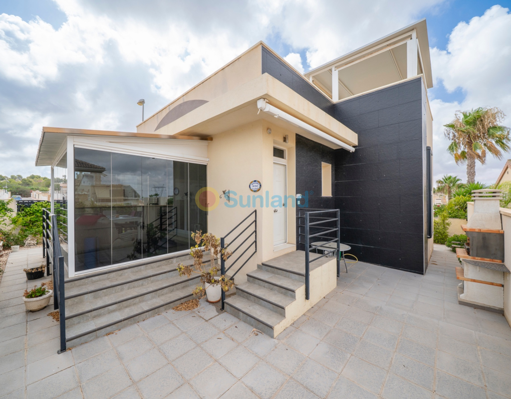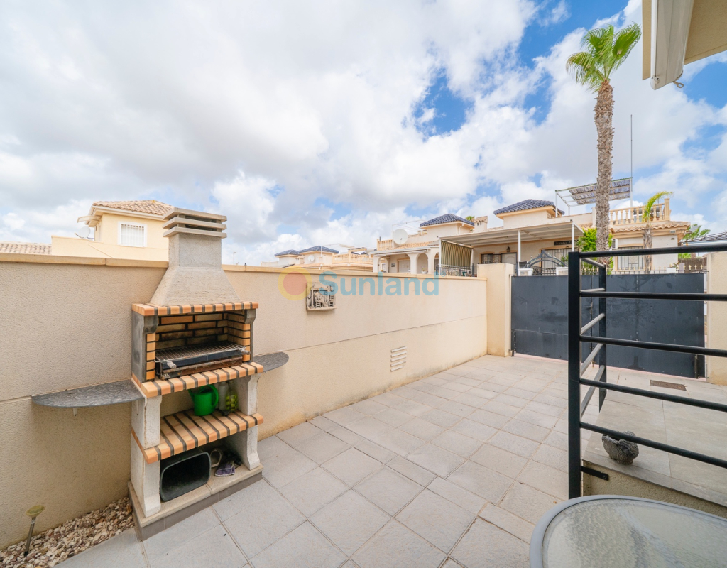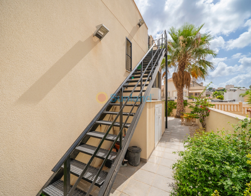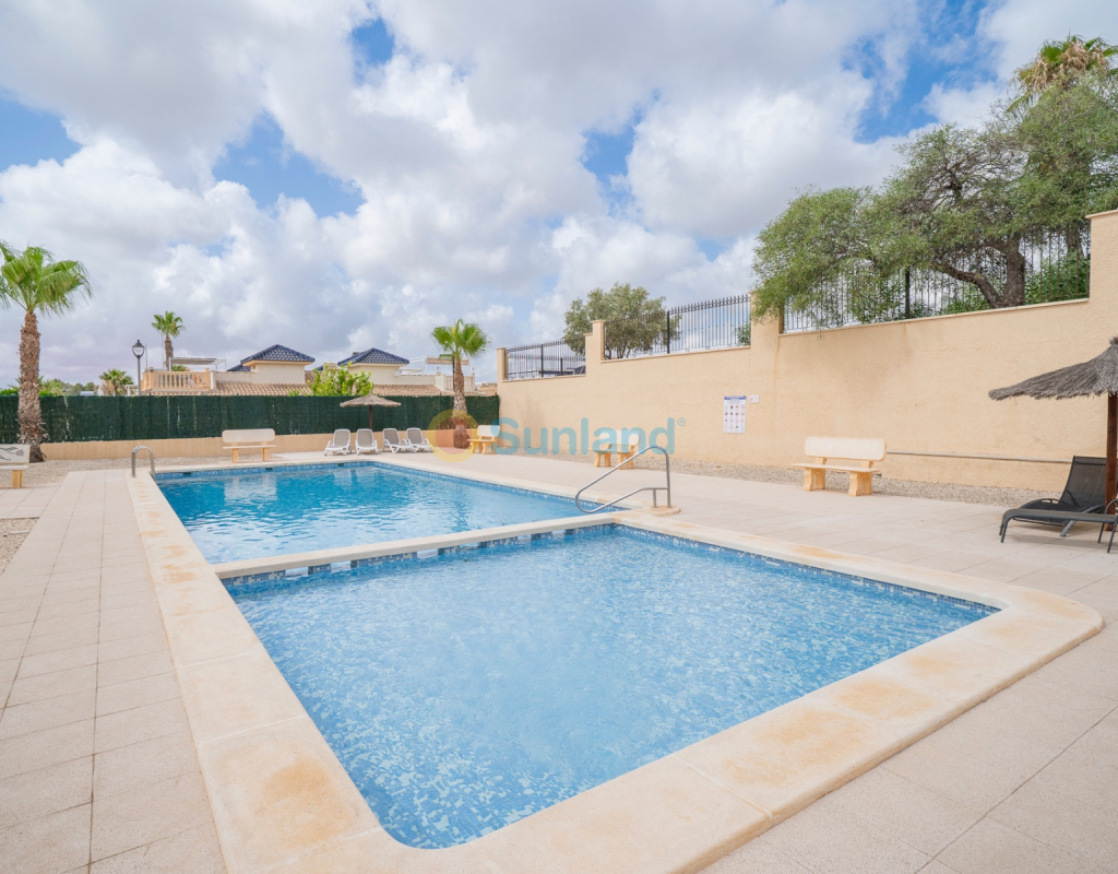 Sjarmerende Frittliggende Villa i Ciudad Quesada – Innflyttingsklar Vi presenterer denne koselige frittliggende villaen, som ligger i det prestisjefylte området Ciudad Quesada. Eiendommen ble bygget i 2012 og renovert i 2017, og kombinerer moderne komfort med middelhavsstil på en privat tomt på 211 m². Boligen har 78 m² bruksareal og består av 2 romslige soverom og 2 bad, hvorav ett er en suite med dusj. Det åpne kjøkkenet i amerikansk stil har en praktisk kjøkkenøy og er sømløst integrert med en lys og luftig stue. Det er klimaanlegg i begge soverom og i stuen, som gir komfort året rundt. Nyt det naturlige lyset og det milde klimaet fra den innglassede terrassen, eller slapp av på det romslige solariumet med pergola – perfekt for soling eller sene sommerkvelder. Tomten inkluderer også et praktisk grillområde, et lite bod på siden av huset og privat parkering på egen tomt. Som en del av et godt vedlikeholdt boligområde har eiendommen tilgang til et felles svømmebasseng, ideelt for å kjøle seg ned og sosialisere. En ideell bolig – enten som helårsbolig eller feriested. Ikke gå glipp av denne muligheten!