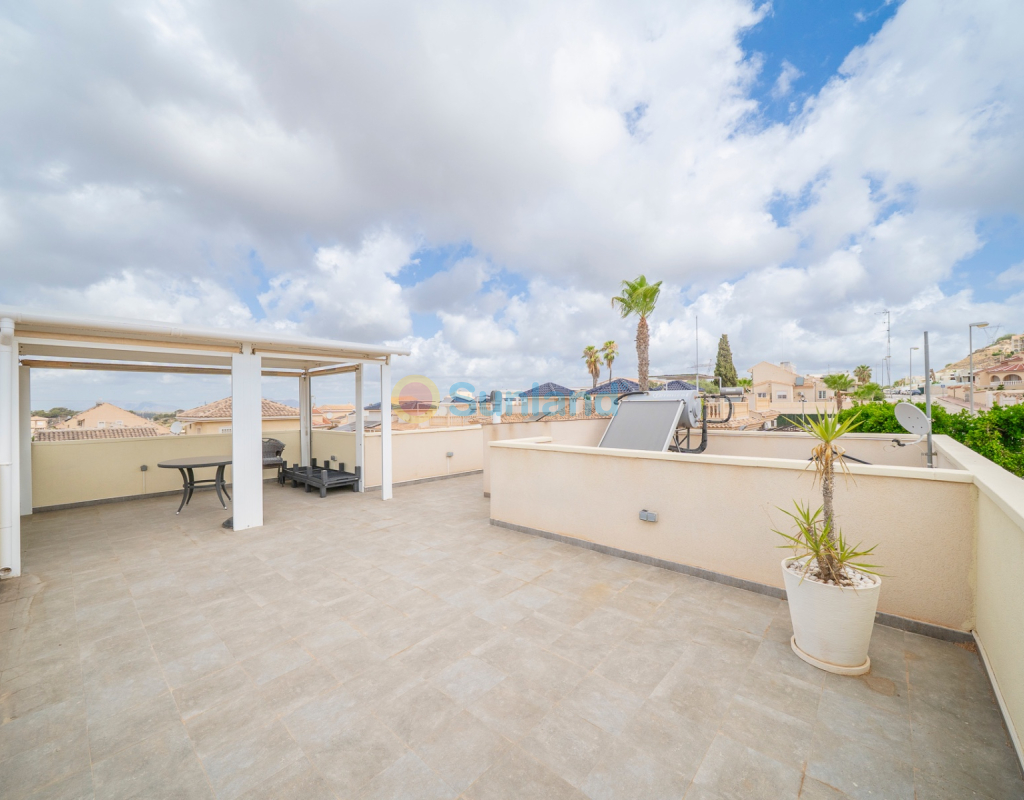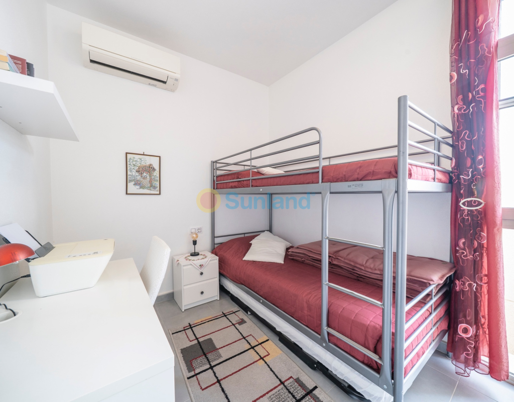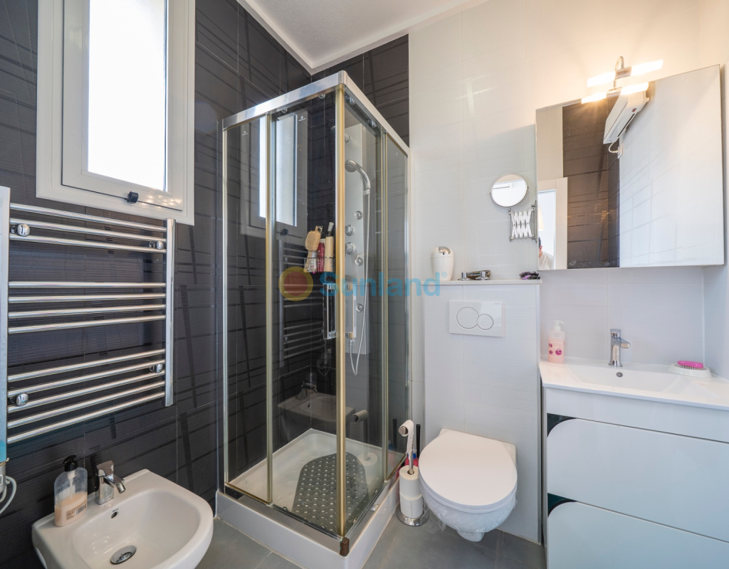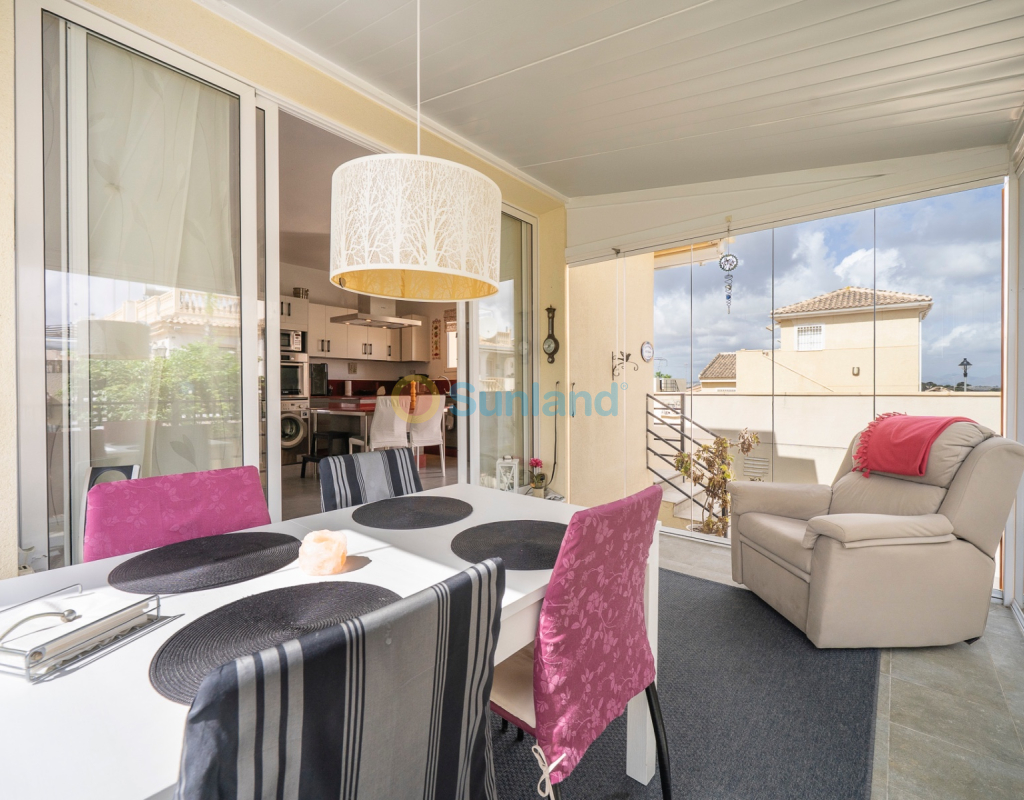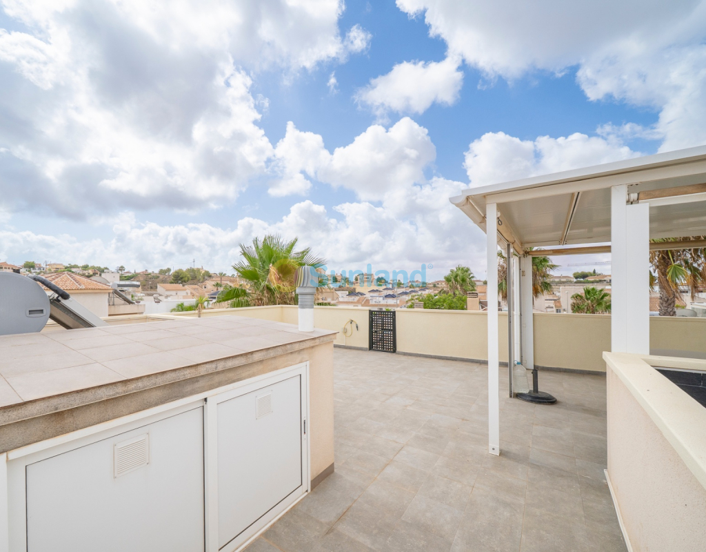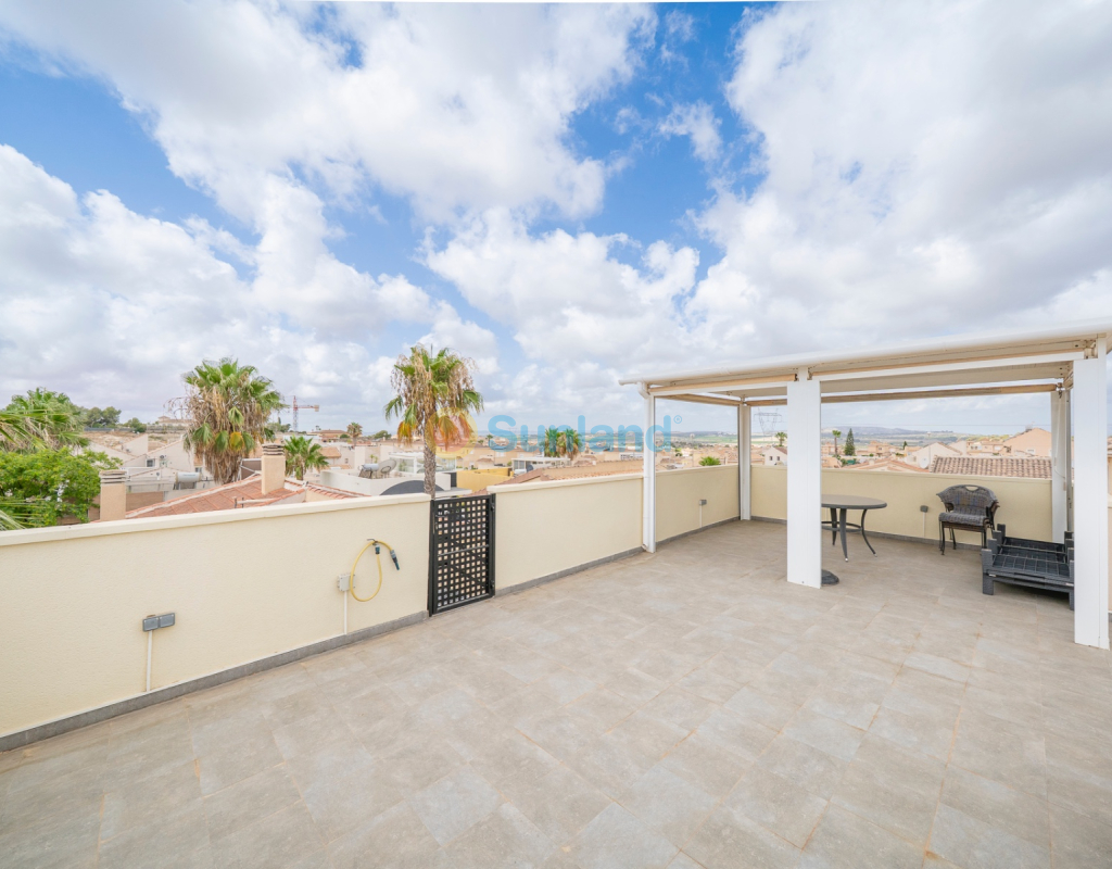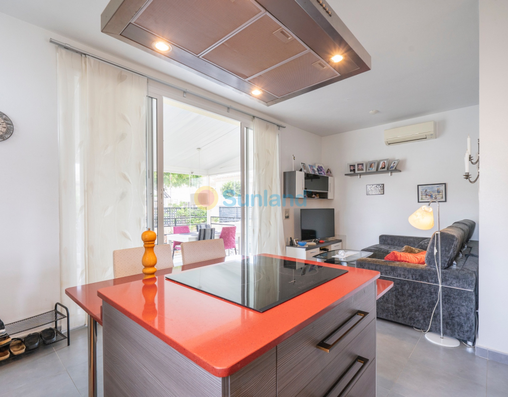 Sjarmerende Frittliggende Villa i Ciudad Quesada – Innflyttingsklar Vi presenterer denne koselige frittliggende villaen, som ligger i det prestisjefylte området Ciudad Quesada. Eiendommen ble bygget i 2012 og renovert i 2017, og kombinerer moderne komfort med middelhavsstil på en privat tomt på 211 m². Boligen har 78 m² bruksareal og består av 2 romslige soverom og 2 bad, hvorav ett er en suite med dusj. Det åpne kjøkkenet i amerikansk stil har en praktisk kjøkkenøy og er sømløst integrert med en lys og luftig stue. Det er klimaanlegg i begge soverom og i stuen, som gir komfort året rundt. Nyt det naturlige lyset og det milde klimaet fra den innglassede terrassen, eller slapp av på det romslige solariumet med pergola – perfekt for soling eller sene sommerkvelder. Tomten inkluderer også et praktisk grillområde, et lite bod på siden av huset og privat parkering på egen tomt. Som en del av et godt vedlikeholdt boligområde har eiendommen tilgang til et felles svømmebasseng, ideelt for å kjøle seg ned og sosialisere. En ideell bolig – enten som helårsbolig eller feriested. Ikke gå glipp av denne muligheten!