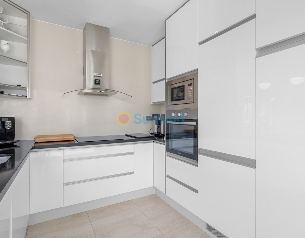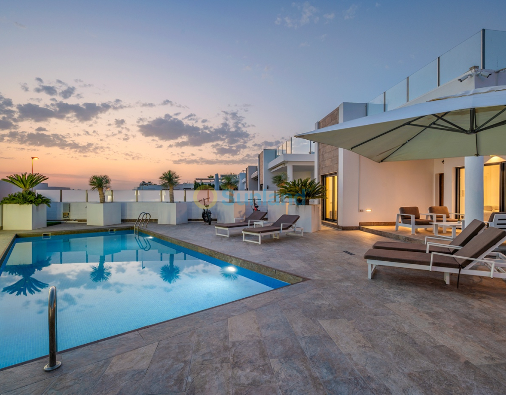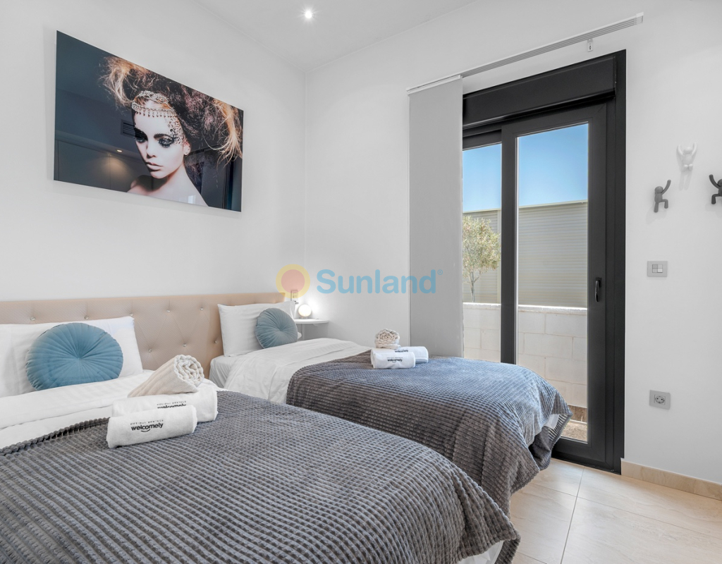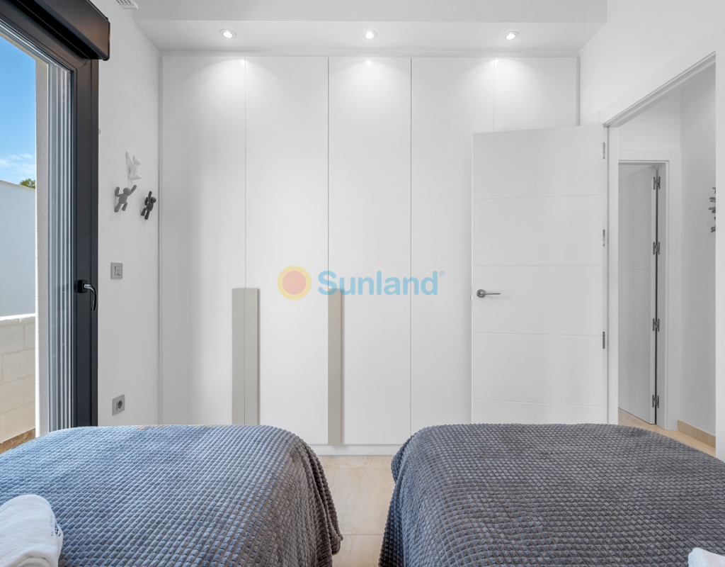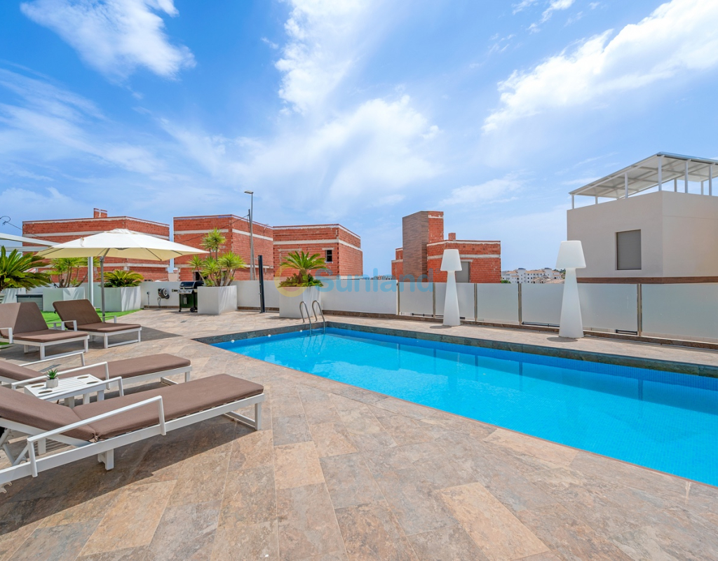 Denne moderne eneboligen fra 2018 ligger i Villamartín, Orihuela Costa. Den har et boareal på 113 m² og står på en romslig tomt på 464 m². Boligen har moderne design og en funksjonell planløsning, perfekt for å nyte den avslappede middelhavslivsstilen. Den sørvendte orienteringen gir naturlig lys hele dagen og skaper en varm og behagelig atmosfære. Villaen har tre romslige soverom med innebygde garderober og to komplette bad, hvorav ett er en suite til hovedsoverommet. Det åpne kjøkkenet er sømløst integrert med spise- og stueområdet, som har direkte utgang til terrassen og det private bassenget. I tillegg er det et separat vaskerom. Uteområdet har privat basseng, lettstelt hage, overbygd terrasse for måltider ute, og en pergola med kunstgress. Det finnes også en stor takterrasse for avslapning og privat parkering på tomten med overbygd carport. Ekstrautstyr inkluderer sentral aircondition, solcellepaneler, kvalitetsmaterialer og gjennomtenkt planløsning. Boligen ligger i et rolig boligområde med kort vei til golfbaner, Zenia Boulevard og flotte strender. Et perfekt valg både som helårsbolig og investering i et av Costa Blancas mest ettertraktede områder.