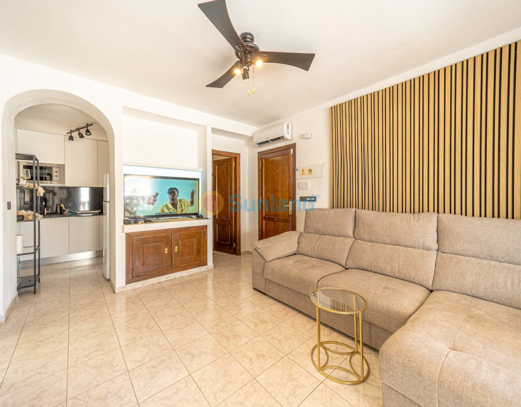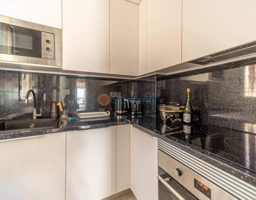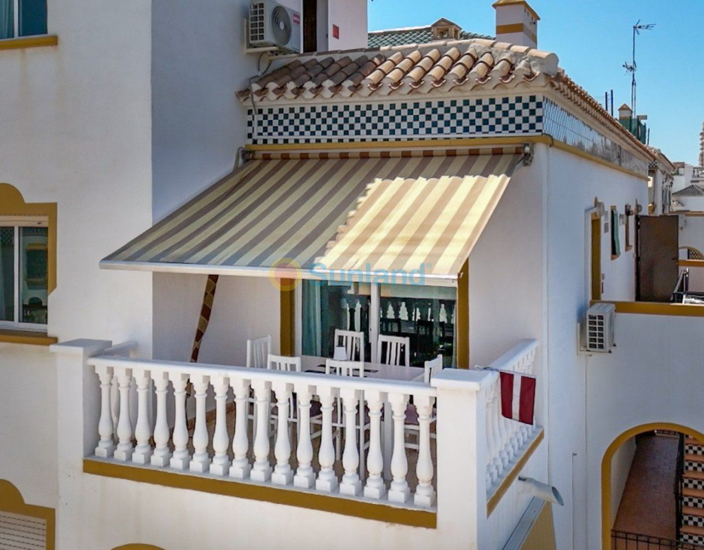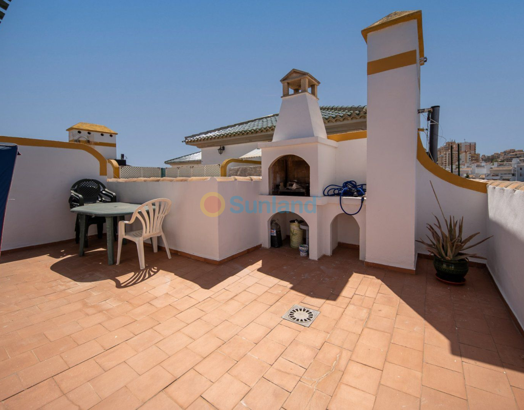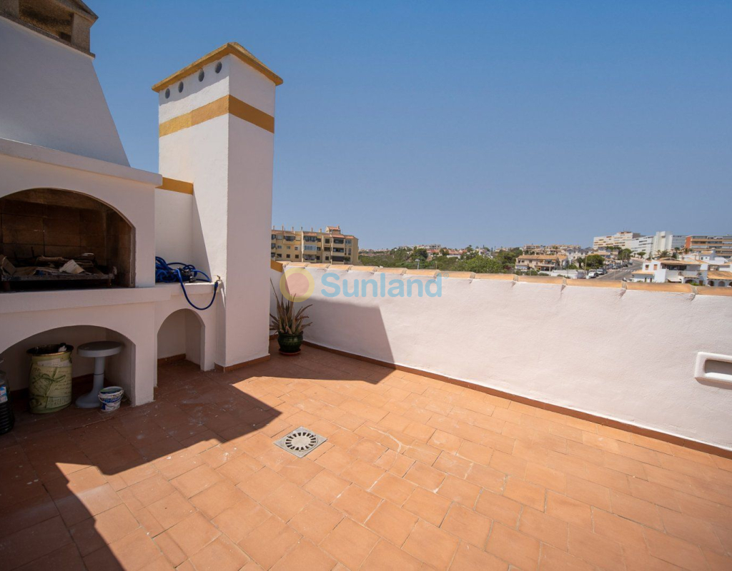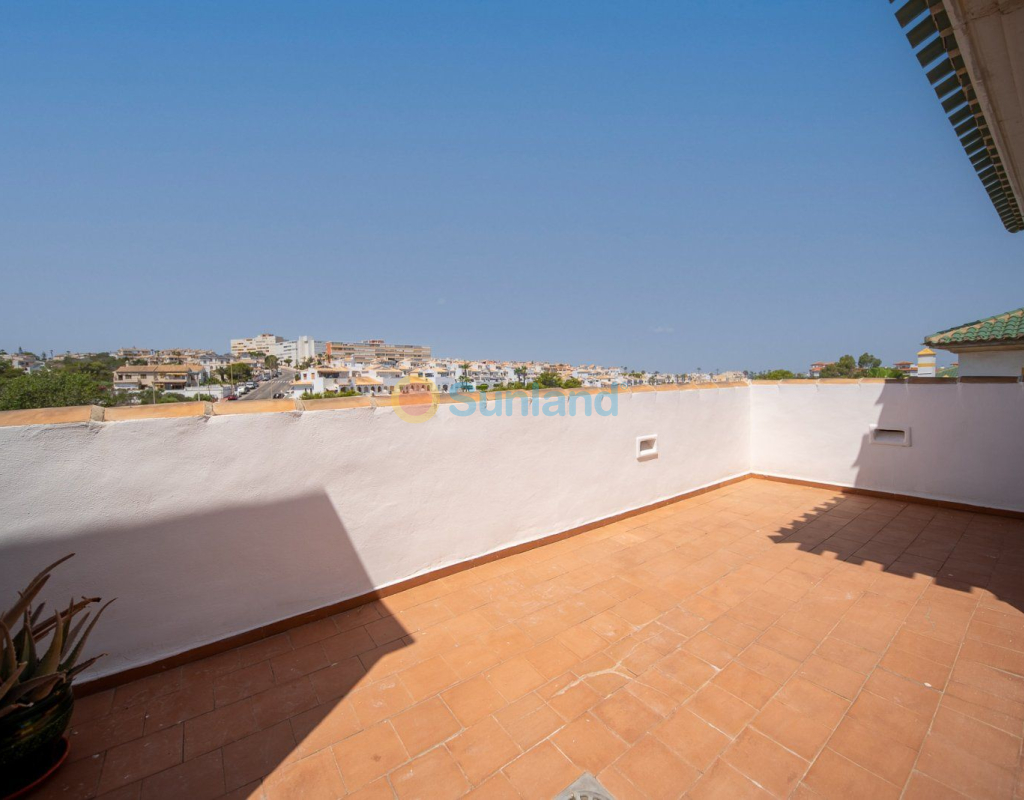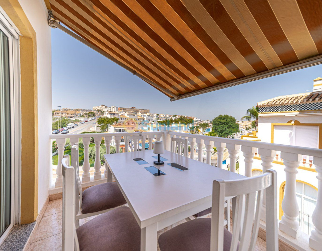 Dupleks penthouse med stor terrasse og solrikt takterrasse. Vakker dupleks penthouse beliggende i et rolig boligområde med felles svømmebasseng. Boligen tilbyr 3 soverom, 1 bad, separat kjøkken og en lys stue med utgang til privat terrasse. Øverste etasje har et ekstra soverom og en romslig, solrik takterrasse med grill og panoramautsikt over byen. Leiligheten har nytt klimaanlegg, selges møblert og er klar til innflytting. Kvaliteter: 3 soverom og 1 bad Separat kjøkken Privat terrasse og solrik takterrasse Felles svømmebasseng Nytt klimaanlegg 85 m² bygget Byggeår: 1995 Sørvestvendt Selges møblert Årlige kostnader: IBI: 195 € Felleskostnader: 600 €