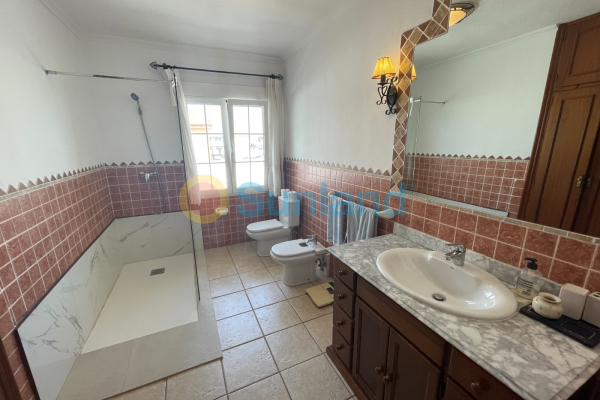 I kjelleren fortsetter historien: garasje, et ekstra kjøkken (for familiens skjulte kokk), bad og plass til å lage 2 ekstra soverom om ønskelig. I tillegg er det direkte tilgang til bassenget, som forresten er under 3 år gammelt.