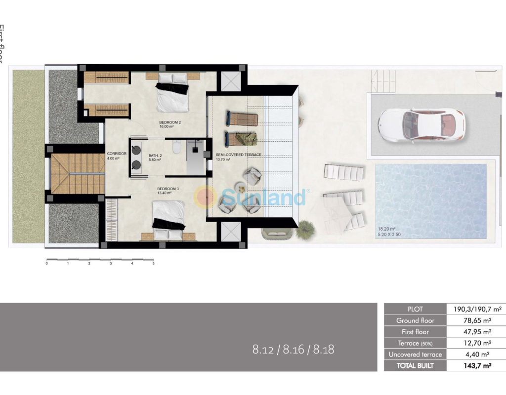 Nybyggede tomannsboliger og rekkehus i Dolores, Alicante Oppdag dette eksklusive nybyggprosjektet med 20 moderne tomannsboliger og rekkehus i Dolores, en sjarmerende by i hjertet av Vega Baja-regionen i provinsen Alicante. Dolores er omgitt av frukthager og naturskjønnhet og tilbyr en fredelig livsstil bare en kort kjøretur fra Middelhavskysten. Moderne villaer med private bassenger Hver bolig i dette nye boligprosjektet er nøye planlagt over to etasjer og har: 3 romslige soverom 2 komplette bad og 1 gjestetoalett Åpen kjøkkenløsning med kjøkkenøy, møblert og utstyrt med hvitevarer Lys stue/spisestue med direkte tilgang til terrassen Privat hage med svømmebasseng, filtreringssystem og LED-belysning Parkering på tomten Disse villaene kombinerer funksjonalitet og stil, og tilbyr alt du trenger for et moderne middelhavsliv. Høyeffektive funksjoner og moderne komfort Husene er bygget etter de høyeste standarder og inkluderer: Klimaanlegg med kanaler på begge etasjer 250-liters aerotermisk vannvarmesystem Elektrisk gulvvarme på badene Motoriserte persienner LED-belysning i hele interiøret og eksteriøret 3 kW solcellepaneler for forbedret energieffektivitet Disse funksjonene sikrer et bærekraftig og komfortabelt hjem hele året. Ideell beliggenhet nær kysten og fasiliteter Dolores er en velfungerende og voksende by bare 12 km fra de fantastiske strendene i La Marina og Guardamar del Segura. Området tilbyr viktige tjenester, inkludert butikker, restauranter, skoler og helsesentre. Det har også en rolig, boligvennlig atmosfære som er ideell for familier og pensjonister. Avstander til viktige severdigheter: La Marina-stranden – 12 km Guardamar del Segura – 14 km Alicante lufthavn – 30 km Murcia-Corvera lufthavn – 85 km La Marquesa Golf (Ciudad Quesada) – 13 km Torrevieja – 25 km Ditt nye hjem venter i Dolores Enten du er på utkikk etter en permanent bolig, et feriested eller en investering på Costa Blanca, er disse nye villaene i Dolores et perfekt valg. Kontakt oss i dag for mer informasjon eller for å avtale en visning.
