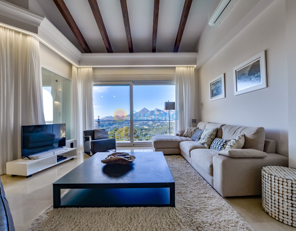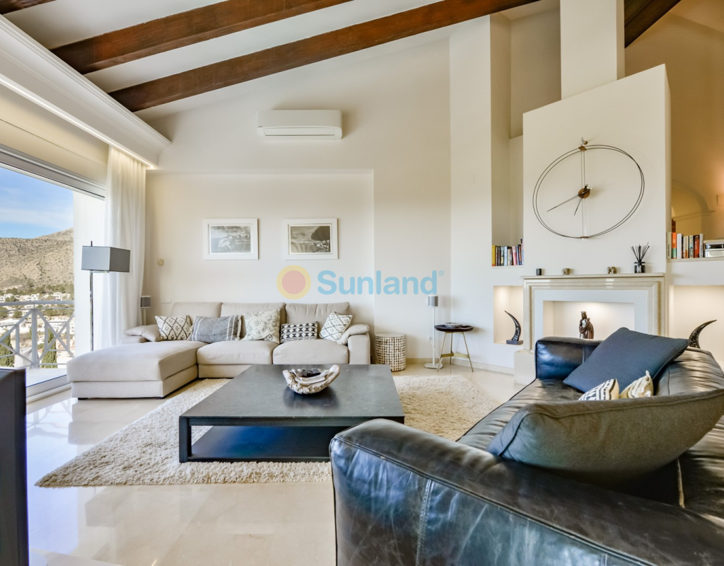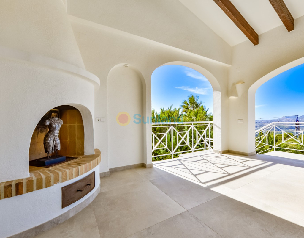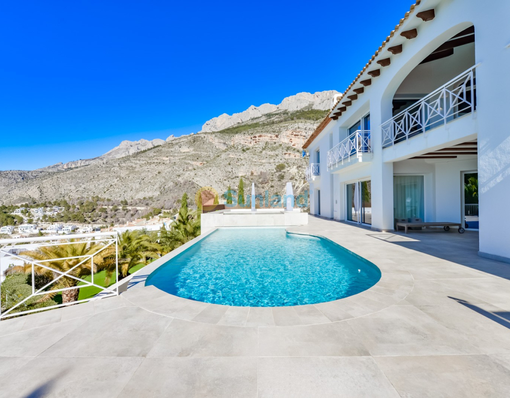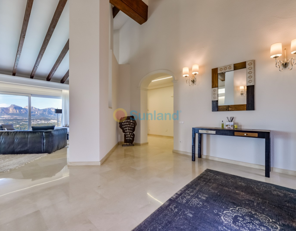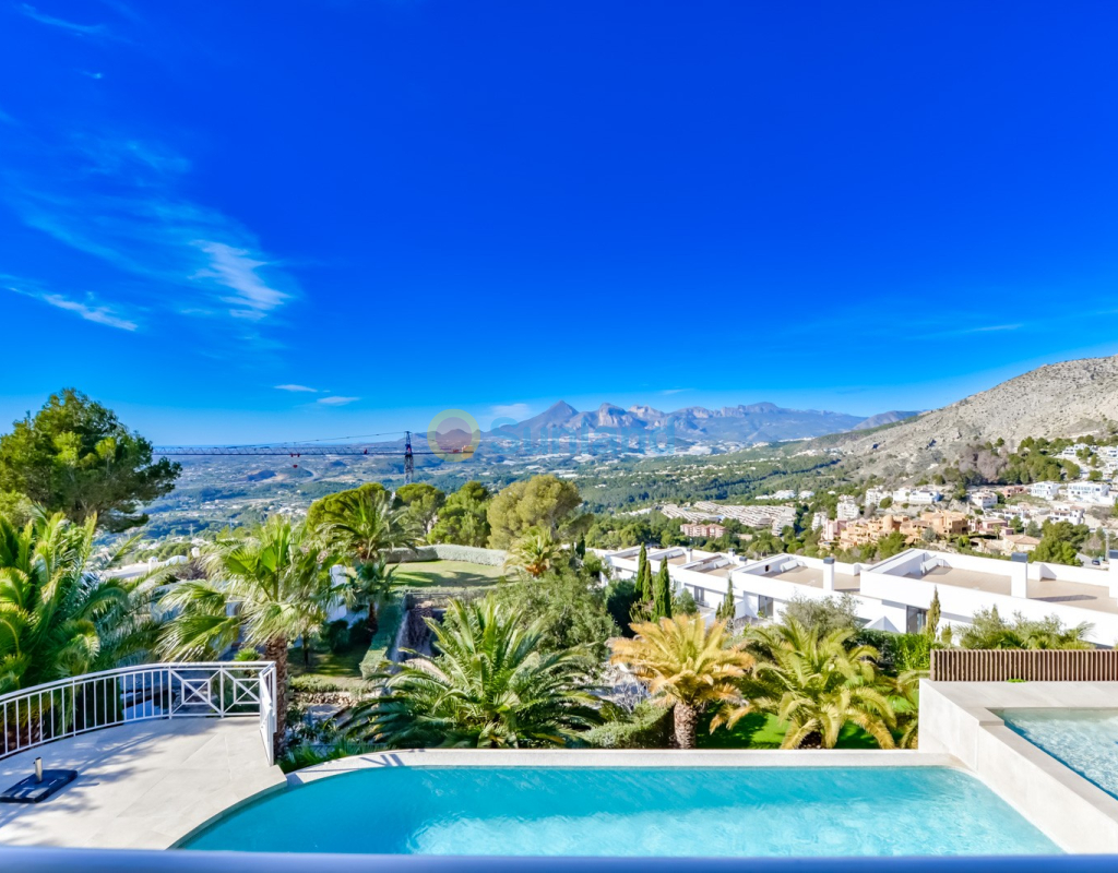 Plassert i prestisjetunge Sierra de Altea, omdefinerer denne luksusvillaen eksklusivitet og komfort. Fra første øyeblikk omslutter dens majestet og design deg, og kombinerer perfekt middelhavssjarm med en sofistikert moderne stil. Priviligert beliggenhet, absolutt privatliv Bare 6 minutter fra strendene og golfbanen, og nær sentrum av Altea, tilbyr denne 920 m² store eiendommen på en 2440 m² stor tomt den perfekte kombinasjonen av ro og tilgang til de beste tjenestene på Costa Blanca. Et hjem designet for glede Når du kommer inn i den elegante entréen, ønsker en dør i massivt tre deg velkommen inn i et lysfylt rom med åpen planløsning. Den imponerende stuen med peis, spisestuen og designerkjøkkenet med øy skaper en ideell setting for underholding og hygge. Fra hvert hjørne rammer de store vinduene inn den eksepsjonelle havutsikten over Altea-bukten og den majestetiske Sierra Helada, og forvandler landskapet til et naturlig kunstverk. De høye taket med trebjelker, de fine materialene og harmonien i hver detalj gjenspeiler luksus på sitt beste. Eksklusivitet på alle nivåer Hovedsoverommet har havutsikt, innebygde garderober og eget bad med dusj, badekar og dobbel vask. To soverom med eget bad, hvert med eget bad. Den nederste etasjen har en annen stue, spisestue og åpent kjøkken, perfekt for gjester. Et treningsrom, bod og en lukket garasje for tre biler. En villa designet for privatliv og komfort Takket være dens optimaliserte layout er denne villaen ideell for store familier eller de som liker å underholde, med rom designet for intimitet og komfort. Utenfor omgir en perfekt anlagt og velstelt hage eiendommen, med et bredt utvalg av blomster og modne trær som gir friskhet og eksklusivitet. Rett overfor en rolig dam med eksotisk fisk ligger den ekstra juvelen til denne eiendommen: Gjestehus med marokkansk essens En selvstendig oase med en stemningsfull design, en privat hage og enestående havutsikt. Fullt utstyrt, og tilbyr klimaanlegg, kabel-TV, fiberoptisk internett og et tilkoblet sikkerhetssystem. Ønsker du å bygge enda en luksusvilla? Gjestehuset ligger på en egen tomt, noe som kan tillate fremtidig bygging av en annen luksusvilla på samme sted. Mer enn et hjem, en livsstil Bo på et sted hvor privatliv, komfort og naturlig skjønnhet smelter sammen i perfekt harmoni.