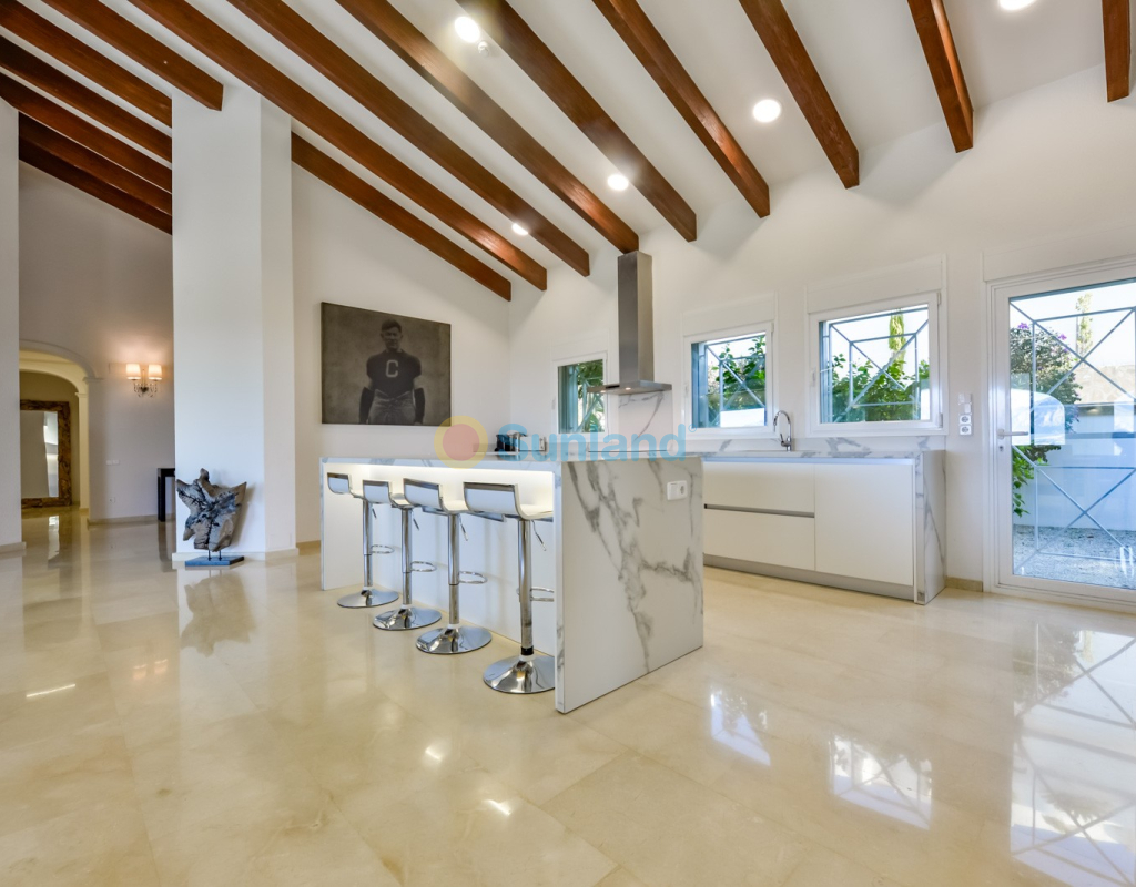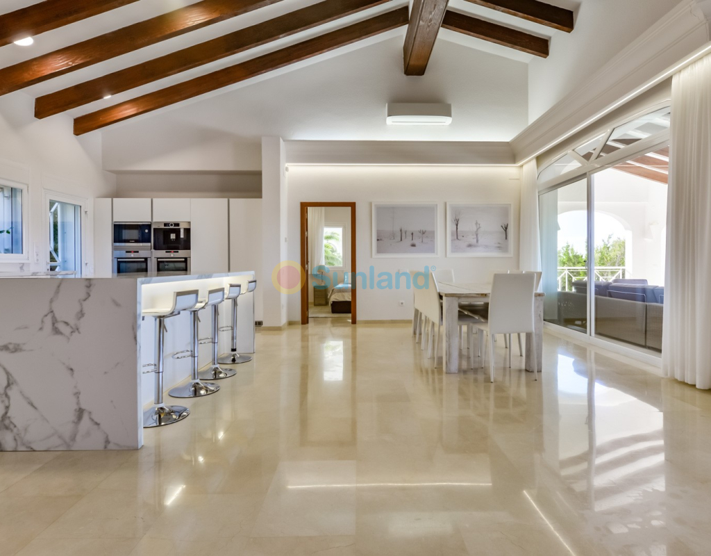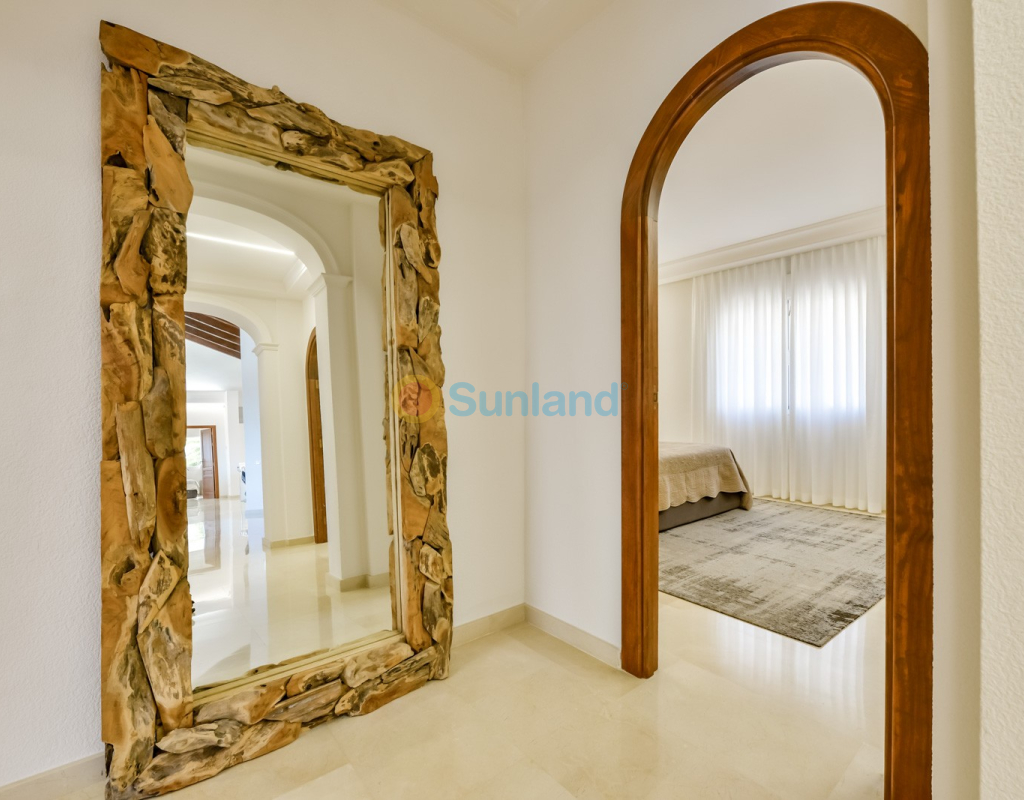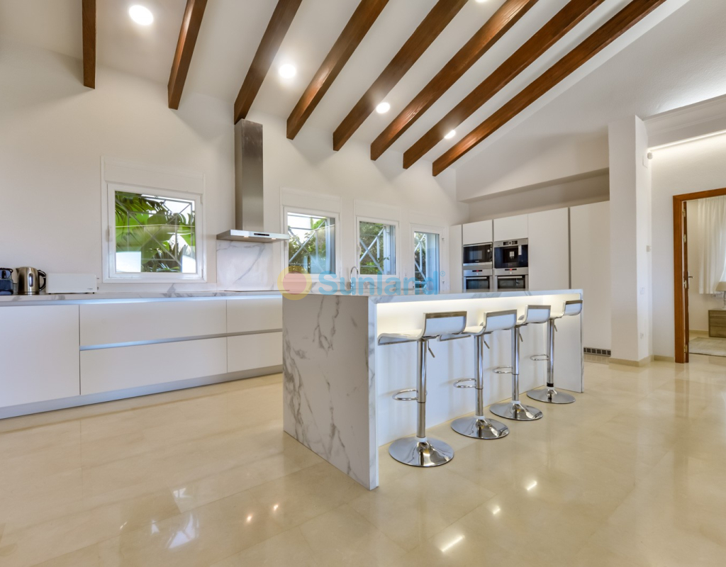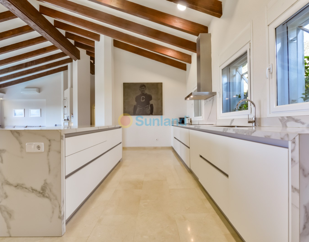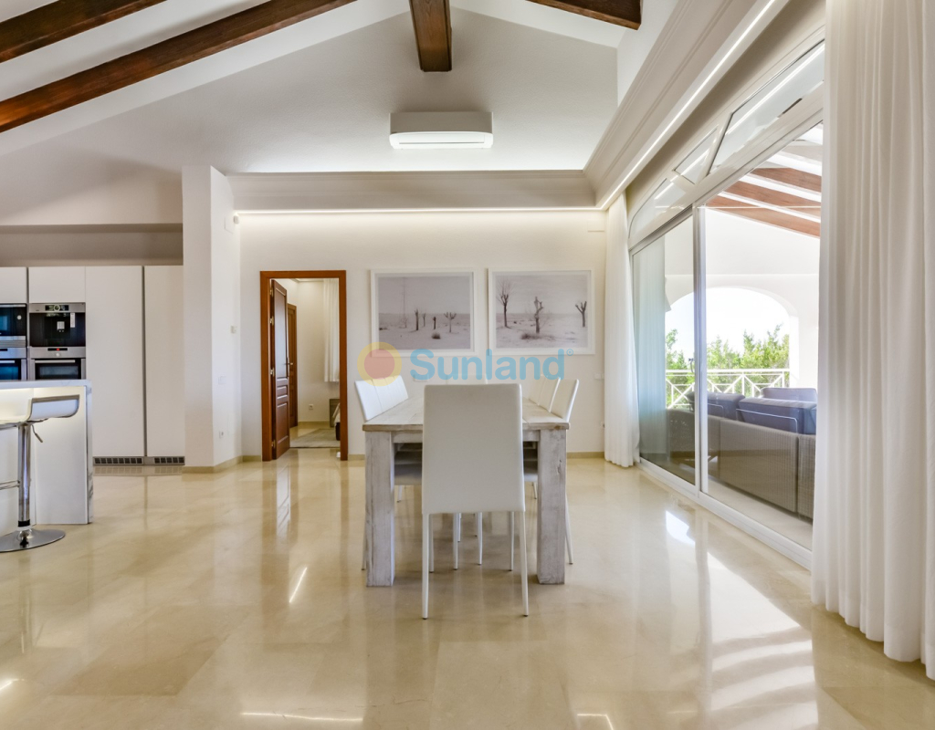 Plassert i prestisjetunge Sierra de Altea, omdefinerer denne luksusvillaen eksklusivitet og komfort. Fra første øyeblikk omslutter dens majestet og design deg, og kombinerer perfekt middelhavssjarm med en sofistikert moderne stil. Priviligert beliggenhet, absolutt privatliv Bare 6 minutter fra strendene og golfbanen, og nær sentrum av Altea, tilbyr denne 920 m² store eiendommen på en 2440 m² stor tomt den perfekte kombinasjonen av ro og tilgang til de beste tjenestene på Costa Blanca. Et hjem designet for glede Når du kommer inn i den elegante entréen, ønsker en dør i massivt tre deg velkommen inn i et lysfylt rom med åpen planløsning. Den imponerende stuen med peis, spisestuen og designerkjøkkenet med øy skaper en ideell setting for underholding og hygge. Fra hvert hjørne rammer de store vinduene inn den eksepsjonelle havutsikten over Altea-bukten og den majestetiske Sierra Helada, og forvandler landskapet til et naturlig kunstverk. De høye taket med trebjelker, de fine materialene og harmonien i hver detalj gjenspeiler luksus på sitt beste. Eksklusivitet på alle nivåer Hovedsoverommet har havutsikt, innebygde garderober og eget bad med dusj, badekar og dobbel vask. To soverom med eget bad, hvert med eget bad. Den nederste etasjen har en annen stue, spisestue og åpent kjøkken, perfekt for gjester. Et treningsrom, bod og en lukket garasje for tre biler. En villa designet for privatliv og komfort Takket være dens optimaliserte layout er denne villaen ideell for store familier eller de som liker å underholde, med rom designet for intimitet og komfort. Utenfor omgir en perfekt anlagt og velstelt hage eiendommen, med et bredt utvalg av blomster og modne trær som gir friskhet og eksklusivitet. Rett overfor en rolig dam med eksotisk fisk ligger den ekstra juvelen til denne eiendommen: Gjestehus med marokkansk essens En selvstendig oase med en stemningsfull design, en privat hage og enestående havutsikt. Fullt utstyrt, og tilbyr klimaanlegg, kabel-TV, fiberoptisk internett og et tilkoblet sikkerhetssystem. Ønsker du å bygge enda en luksusvilla? Gjestehuset ligger på en egen tomt, noe som kan tillate fremtidig bygging av en annen luksusvilla på samme sted. Mer enn et hjem, en livsstil Bo på et sted hvor privatliv, komfort og naturlig skjønnhet smelter sammen i perfekt harmoni.