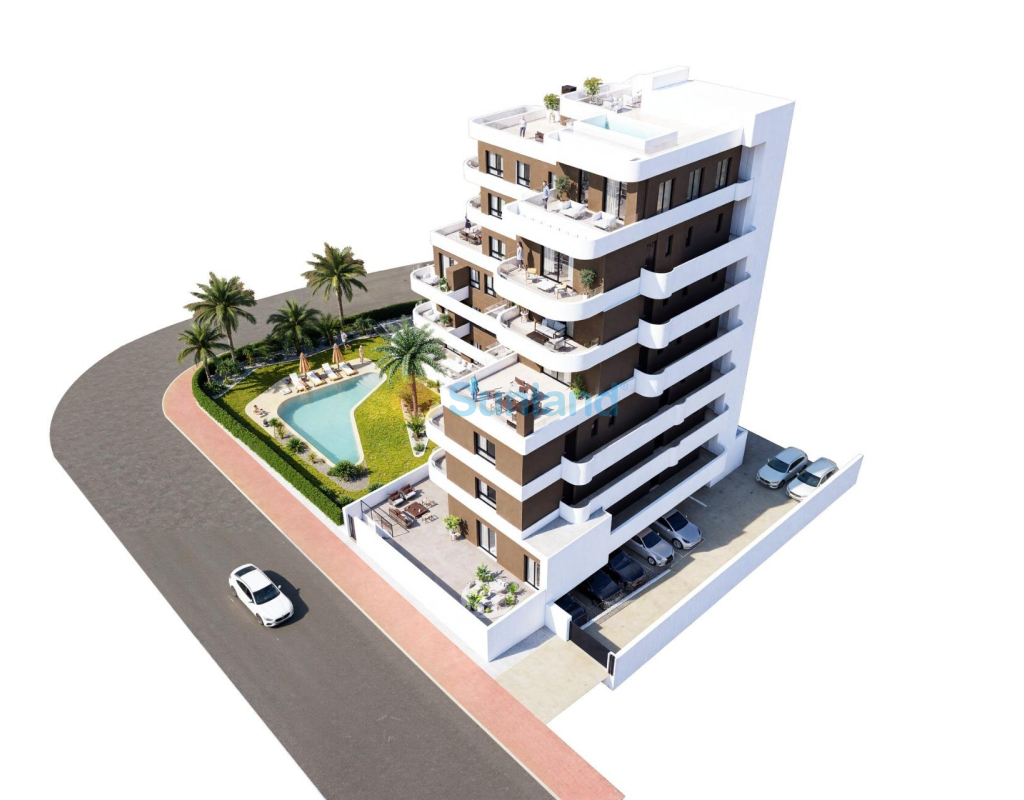 Nybyggede leiligheter i Guardamar del Segura – moderne boende bare 1,4 km fra stranden Oppdag et nytt boligprosjekt i Guardamar del Segura, Alicante, med bare 19 eksklusive, moderne boliger designet for komfortabel, moderne livsstil på Costa Blanca. Dette prosjektet har en ideell beliggenhet bare 1,4 km fra stranden og en kort spasertur fra sentrum, og kombinerer stil, praktisk funksjonalitet og en førsteklasses beliggenhet ved kysten. Eksklusivt boligprosjekt med begrenset tilgjengelighet Dette boutique-prosjektet består av leiligheter med 2 og 3 soverom med en rekke planløsninger som passer til forskjellige behov: Leiligheter i første etasje med romslige private terrasser Leiligheter i midtre etasjer med store balkonger eller åpne terrasser. En spektakulær penthouse med privat solarium og svømmebasseng Hver eiendom har elegante, buede arkitektoniske linjer, glassrekkverk og moderne finish – ideelt for både helårsbolig eller et luksuriøst feriested. Premium finish og energieffektive funksjoner Hver bolig er designet for komfort og bærekraft og inkluderer: Forsterket inngangsdør for ekstra sikkerhet Fullt møblert kjøkken med hvitevarer inkludert Energieffektivt aerotermisk system for varmt vann Privat parkeringsplass inkludert i prisen Bygningen har også et felles svømmebasseng og anlagte hageområder, perfekt for å nyte det solfylte middelhavsklimaet. Førsteklasses beliggenhet i Guardamar del Segura Dette boligprosjektet ligger i en godt tilknyttet og livlig del av Guardamar, med enkel tilgang til natur, strender og viktige tjenester. Beboerne nyter nærheten til supermarkeder, restauranter, legesentre, parker og byens berømte furuskog og sanddyner. Viktige avstander: Guardamar sentrum – 1 km Nærmeste strand – 1,4 km Marina – 2 km Reina Sofía-parken – 1,5 km La Marquesa Golf (Ciudad Quesada) – 9 km Habaneras kjøpesenter (Torrevieja) – 13 km Alicante-Elche flyplass – 33 km Offentlig transport inkluderer direkte busslinjer til Alicante og Torrevieja, som gir enkel tilgang uten behov for bil. Sikre deg din leilighet på Costa Blanca Enten du er på utkikk etter en permanent bolig, feriebolig eller smart investering, er dette nye prosjektet i Guardamar del Segura det perfekte valget. Kontakt oss i dag for å få mer informasjon eller reservere din nye bolig ved sjøen.