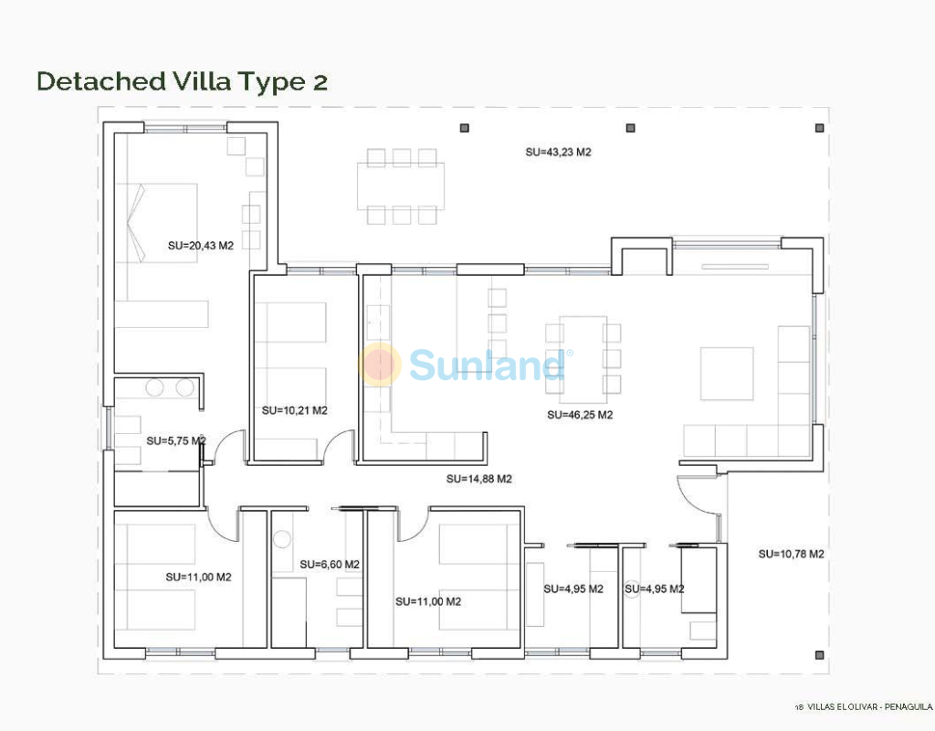 Nybyggede villaer i Penáguila – Ro og natur i hjertet av Sierra de Aitana, Alicante Oppdag en unik mulighet til å bo omgitt av natur i et fredelig miljø med fantastisk fjellutsikt. Dette nye prosjektet med 35 enetasjes villaer ligger ved siden av den sjarmerende landsbyen Penáguila, i hjertet av Sierra de Aitana i Alicante. Med sjenerøse tomter på 800 m² tilbyr disse boligene privatliv, komfort og direkte kontakt med naturen. Romslige boliger med tilpassede planløsninger Hver villa ligger på en privat tomt på 800 m² og er fordelt på én etasje, noe som gir maksimal komfort og tilgjengelighet. Velg mellom 5 forskjellige planløsninger med 3 eller 4 soverom, 2 eller 3 bad og byggearealer fra 130 til 178 m². Alle boliger har store overbygde terrasser, ideelle for å nyte friluftslivet hele året. Dette prosjektet er perfekt for familier, pensjonister eller alle som ønsker en primær- eller sekundærbolig i rolige og sunne omgivelser, men likevel nær alle nødvendige fasiliteter. Høy kvalitet og bærekraftige systemer Villaene er bygget med materialer av høyeste kvalitet og moderne, energieffektive installasjoner, inkludert: PVC-utvendig snekring med doble vinduer og elektriske persienner Gulvvarme via aerotermisk system Varmt vann til husholdningen også drevet av aerotermisk energi Overbygd parkering med metallpergola og solcellepaneler Fullt utstyrte kjøkken med overskap og underskap Dette fokuset på bærekraft forbedrer ikke bare komforten, men reduserer også energikostnadene på lang sikt. En privilegert beliggenhet mellom fjell og kyst Disse villaene ligger bare noen minutter fra sentrum av Penáguila, en pittoresk landsby kjent for sin fredelige atmosfære og tradisjonelle sjarm, og har en perfekt beliggenhet mellom fjellets ro og kystens bekvemmeligheter. Avstander til viktige severdigheter: Alcoy: 20 km Benidorm: 38 km Alicante by: 52 km Alicante lufthavn: 60 km Nærmeste golfbane (Alenda Golf): 45 km Strendene i Villajoyosa og Benidorm: ca. 45 km Denne beliggenheten gir utmerket tilgang til både innlandet og kysten, noe som gjør den ideell for naturelskere som fortsatt ønsker å være i nærheten av urbane tjenester og badebyer. Reserver din drømmevilla i Sierra de Aitana To villaer er allerede under bygging og vil være ferdige om bare 4 måneder. De resterende enhetene er tilgjengelige med 12 måneders leveringstid fra reservasjon. Kontakt oss i dag for å få mer informasjon og sikre deg ditt nye hjem i Penáguila – der komfort møter naturen.