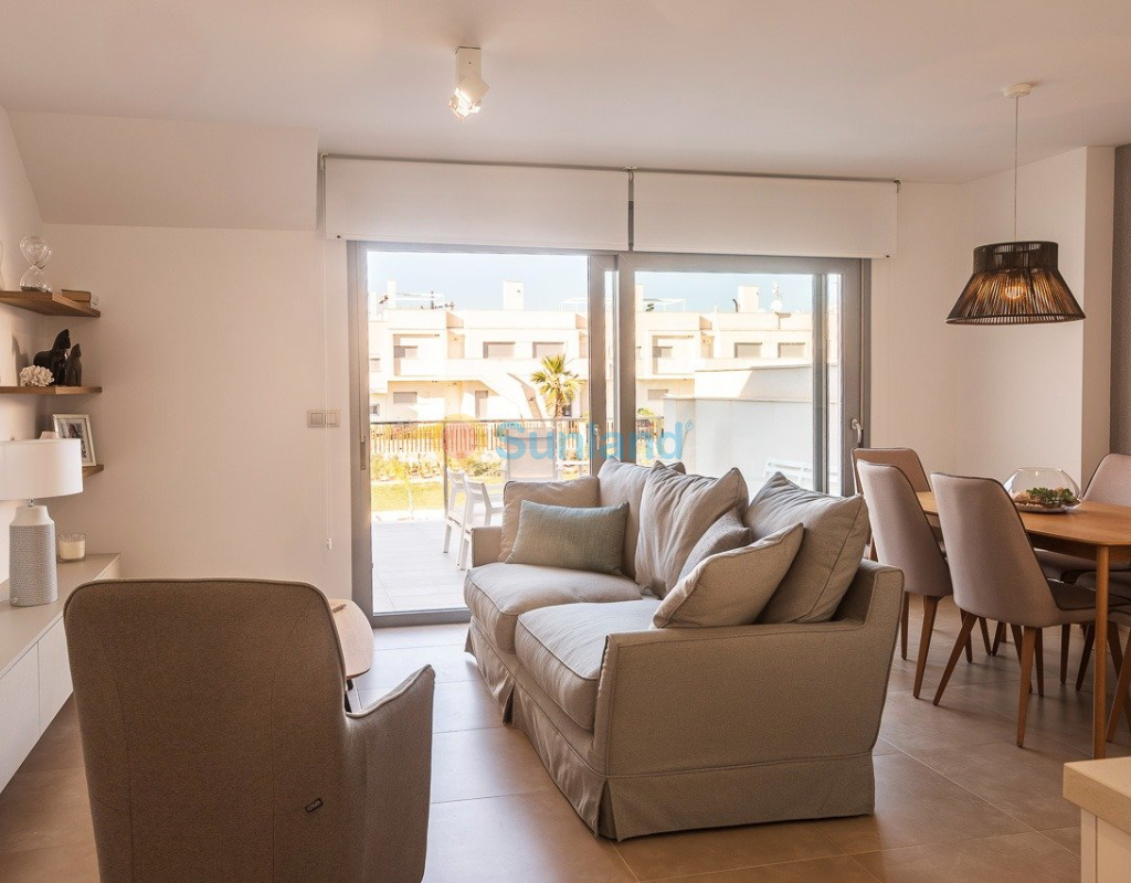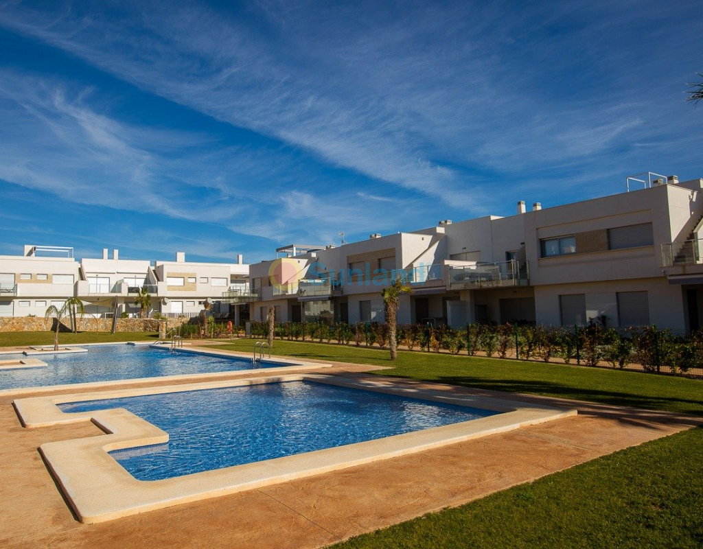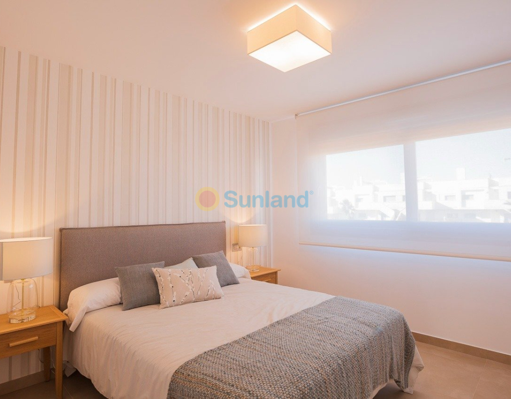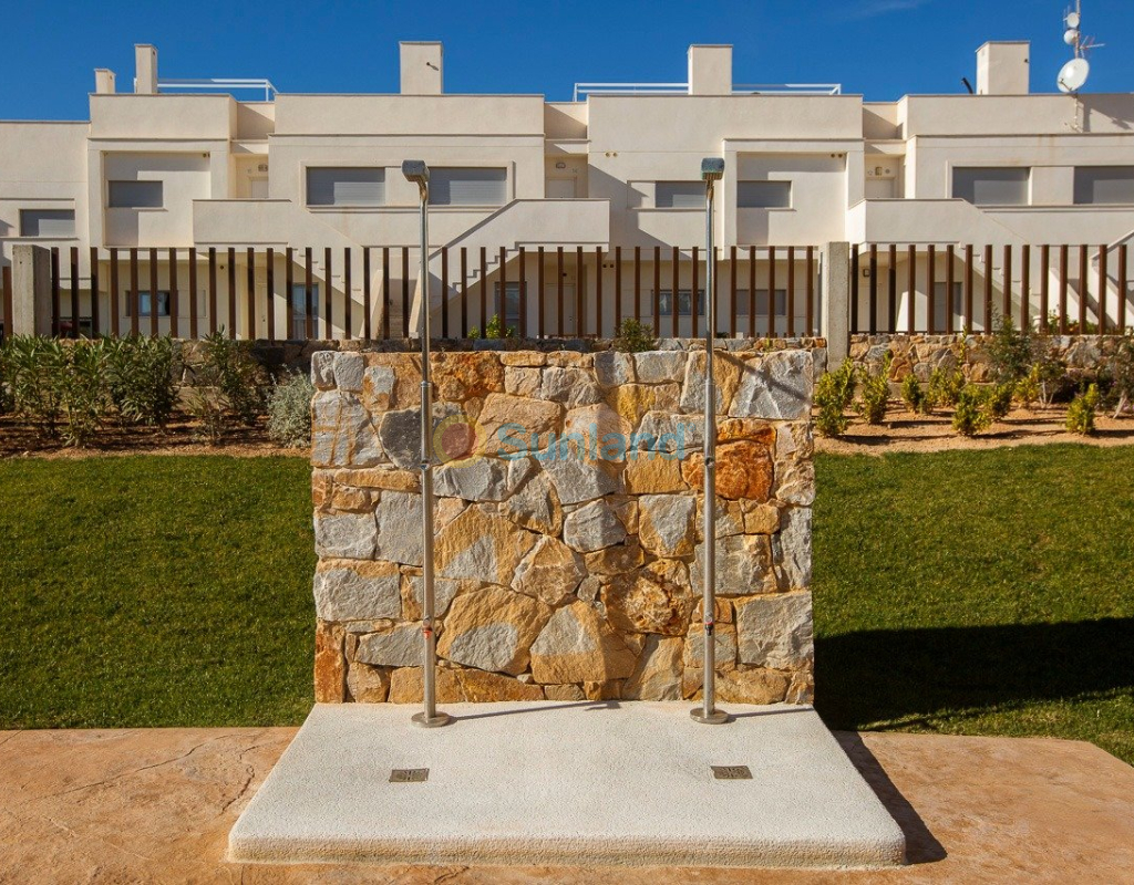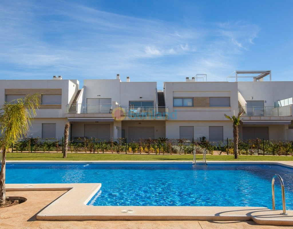 NYBYGG BOLIG AV BUNGALOW LEILIGHETER I VISTABELLA Nybygget boligkompleks på bungalowleiligheter i Vistabella nær golfbanen. Komplekset med fellesfasiliteter og svømmebasseng består av bungalower med 2 og 3 soverom, i første etasje med privat hage og toppetasje med privat solarium, åpen kjøkkenløsning med stue, innebygde garderober, terrasse. Hver leilighet har privat parkering. Tilvalgsbod mot ekstra kostnad. På Vistabella Golf er det plass til alle. Banen er laget slik at hver spiller kan nyte den fra start til slutt. Dens bølgende gater, strategiske bunkere eller innsjøer er noen av funksjonene som gjør den til en av de mest attraktive designene i området, hvor hvert slag er en utfordring og en nytelse for sansene. De 18 hullene i Vistabella Golf, par 72 og mer enn 6000 meter i lengde er designet etter retningslinjene til de moderne feltene med 4 tees med stor amplitude i hvert hull, brede fairways og hevet bunkers. Vistabella Golf klubbhus og restaurant og lokale barer og butikker ligger innen 5 minutters gange. Den travle byen San Miguel de Salinas og Los Montesinos ligger 5 minutters kjøring unna, og de vakre strendene med blått flagg ved Guardamar ligger bare 15 minutters kjøring unna. Alicante flyplass ligger 35 minutter unna, og den nye Corvera Murcia flyplass ligger 45 minutter unna.