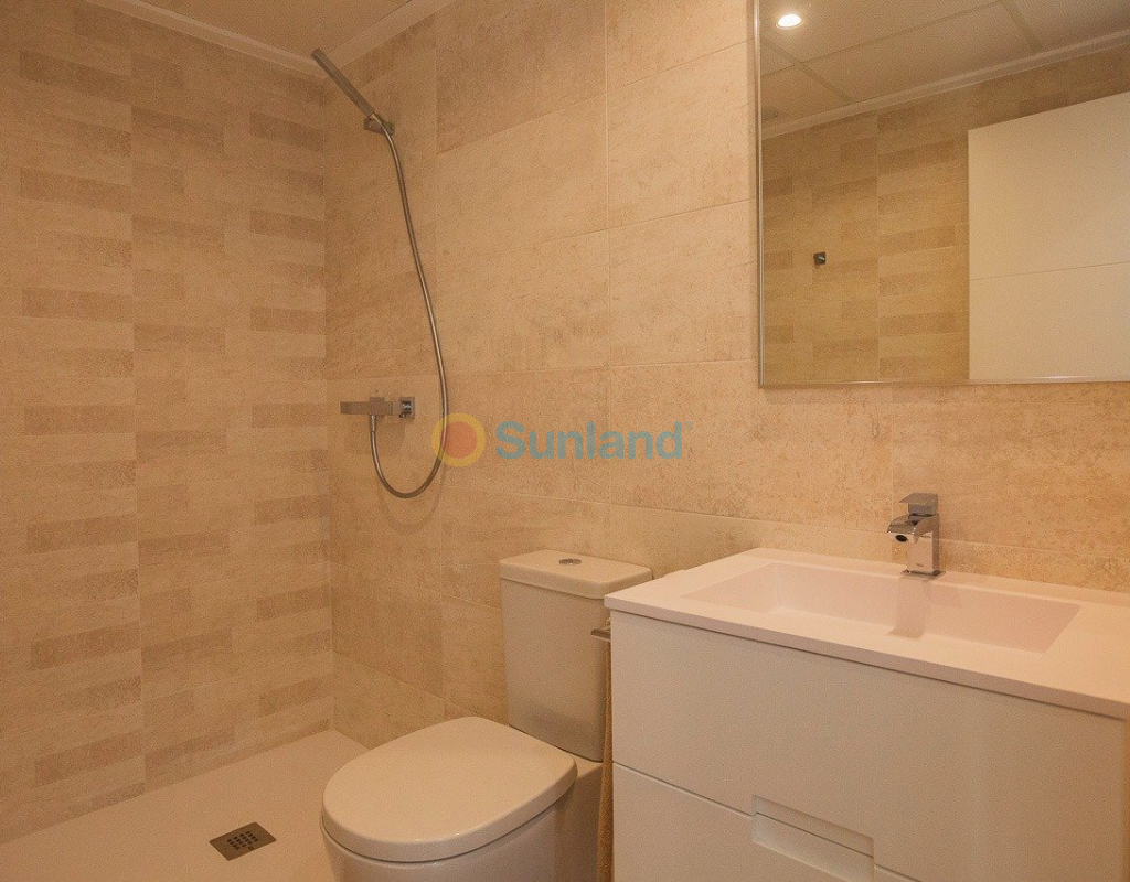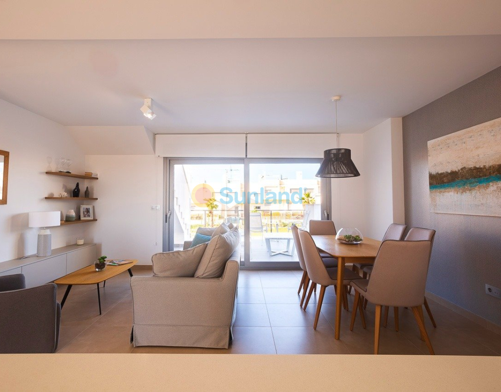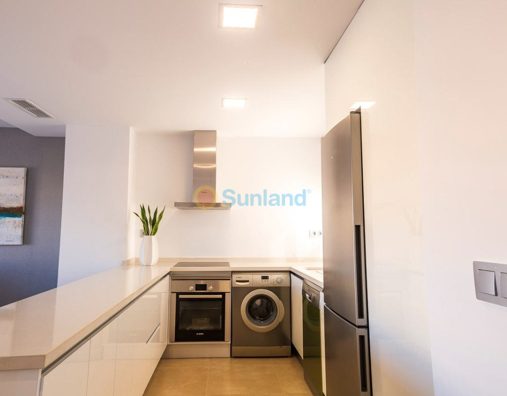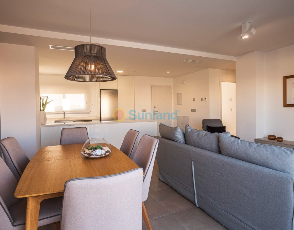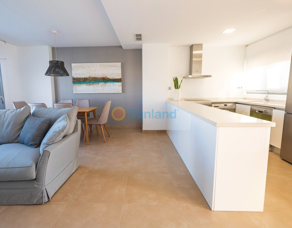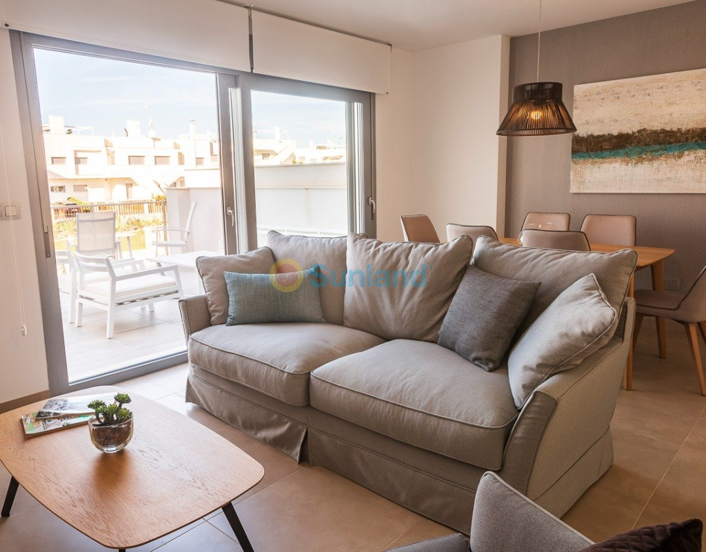NYBYGG BOLIG AV BUNGALOW LEILIGHETER I VISTABELLA Nybygget boligkompleks på bungalowleiligheter i Vistabella nær golfbanen. Komplekset med fellesfasiliteter og svømmebasseng består av bungalower med 2 og 3 soverom, i første etasje med privat hage og toppetasje med privat solarium, åpen kjøkkenløsning med stue, innebygde garderober, terrasse. Hver leilighet har privat parkering. Tilvalgsbod mot ekstra kostnad. På Vistabella Golf er det plass til alle. Banen er laget slik at hver spiller kan nyte den fra start til slutt. Dens bølgende gater, strategiske bunkere eller innsjøer er noen av funksjonene som gjør den til en av de mest attraktive designene i området, hvor hvert slag er en utfordring og en nytelse for sansene. De 18 hullene i Vistabella Golf, par 72 og mer enn 6000 meter i lengde er designet etter retningslinjene til de moderne feltene med 4 tees med stor amplitude i hvert hull, brede fairways og hevet bunkers. Vistabella Golf klubbhus og restaurant og lokale barer og butikker ligger innen 5 minutters gange. Den travle byen San Miguel de Salinas og Los Montesinos ligger 5 minutters kjøring unna, og de vakre strendene med blått flagg ved Guardamar ligger bare 15 minutters kjøring unna. Alicante flyplass ligger 35 minutter unna, og den nye Corvera Murcia flyplass ligger 45 minutter unna.