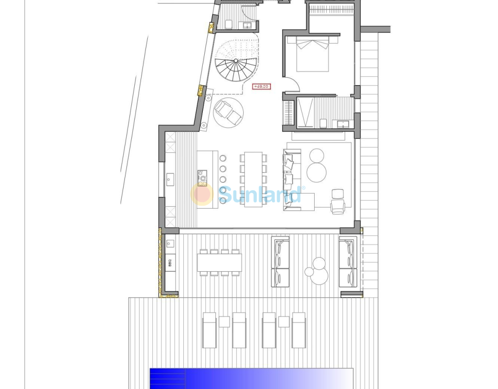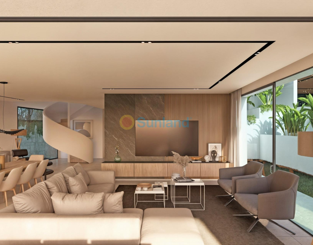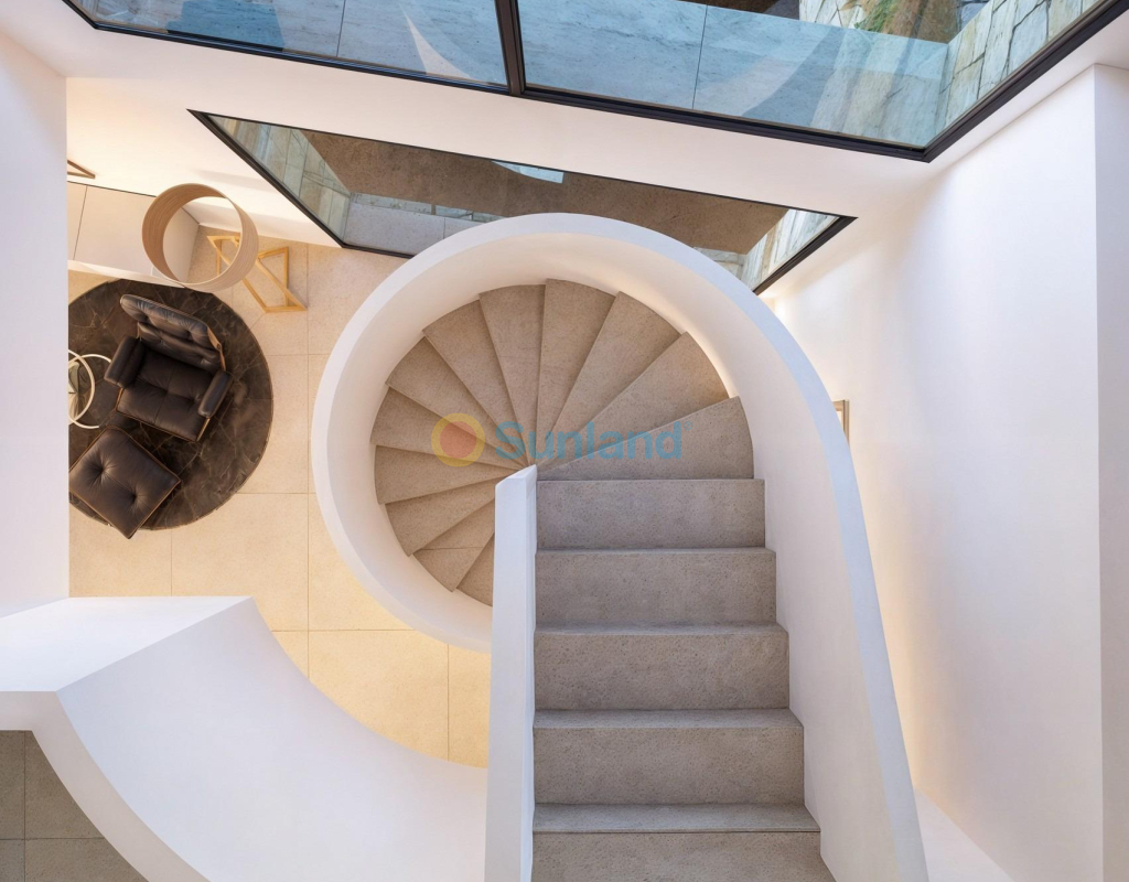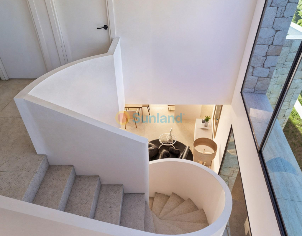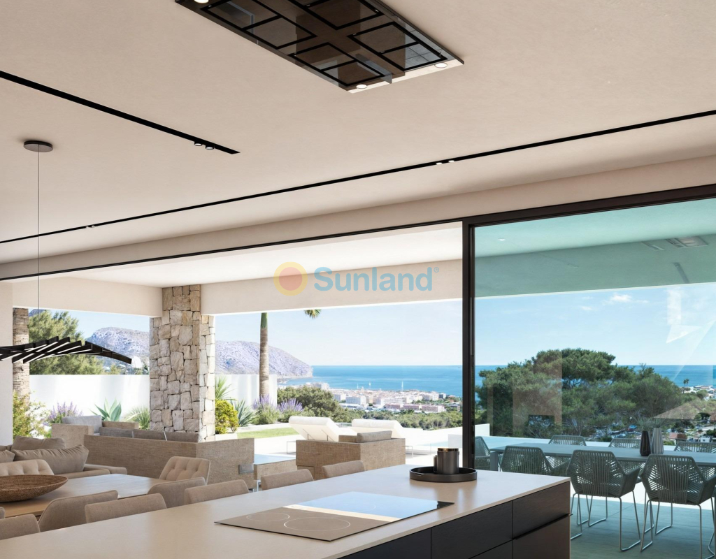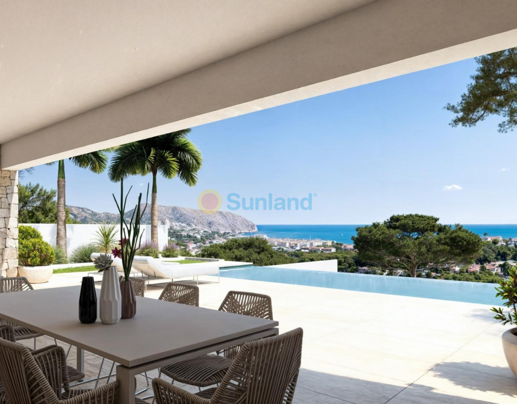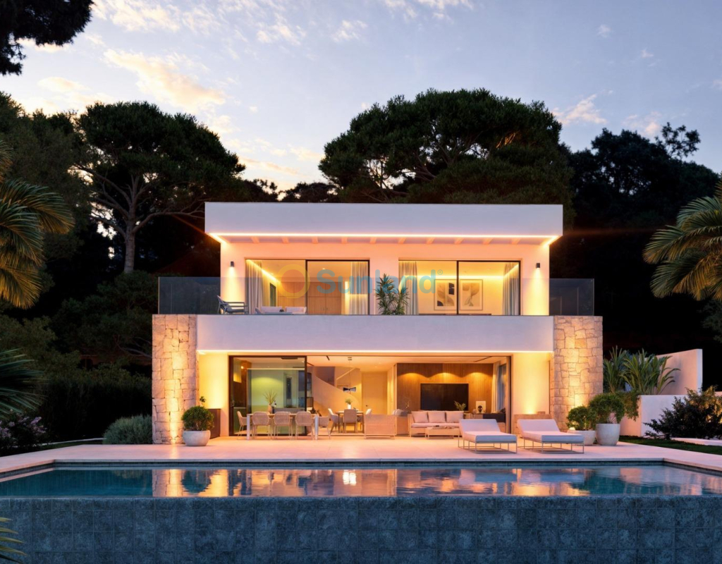 Luksuriøs nybygget villa med havutsikt i Moraira Førsteklasses beliggenhet nær stranden og sentrum Denne luksuriøse villaen i Moraira ligger perfekt til bare 1,8 km fra stranden og det livlige sentrum, og tilbyr en ideell balanse mellom privatliv og bekvemmelighet. Moraira, en sjarmerende kystby på Costa Blanca, er kjent for sine fine sandstrender, krystallklare vann og middelhavsstil. Byen har et bredt utvalg av restauranter, barer, supermarkeder og en livlig marina. Alicante internasjonale lufthavn ligger omtrent 90 km (1 time og 15 minutter) unna via motorveien A7, mens Valencia lufthavn ligger i samme avstand mot nord, noe som gjør tilgangen enkel og praktisk. Moderne design med romslig interiør Denne villaen er bygget på en sjenerøs tomt på 912 m² og har et samlet areal på 350 m² fordelt på to etasjer. Boligen har 4 soverom med eget bad og et gjestetoalett, alt ferdig med materialer av topp kvalitet. Første etasje har en lys åpen stue og spisestue som er sømløst forbundet med et moderne kjøkken med sentral kjøkkenøy. Herfra åpner store skyvedører direkte ut til terrassen, sommerkjøkkenet og det private bassenget. Et soverom med eget bad, et gjestetoalett, et vaskerom og et allsidig multifunksjonsrom fullfører denne etasjen. Elegant øverste etasje med havutsikt En designertrapp fører til andre etasje, som har tre ekstra soverom med eget bad, samt en romslig entré og privat terrasse med spektakulær havutsikt. Eiendommen har også garasje, privat parkering, gulvvarme, klimaanlegg, doble vinduer og en forsterket sikkerhetsdør, som sikrer maksimal komfort og trygghet. Utendørs middelhavsoase Uteområdet er designet som et privat tilfluktssted, og kombinerer anlagte hager, både overbygde og åpne terrasser, et privat svømmebasseng med utendørs dusj og en grillplass som er perfekt for selskapelighet. Den sørøstlige orienteringen garanterer rikelig med naturlig lys hele dagen, slik at hvert hjørne av villaen føles lyst og innbydende. Livsstil i Moraira Moraira er kjent for sin avslappede, men kosmopolitiske atmosfære. Familier vil elske den trygge sandstranden, mens naturelskere kan nyte fantastiske kystvandringer med utsikt over Peñón de Ifach i Calpe, som ligger bare 12 km unna. Golfelskere vil også finne utmerkede golfbaner innen 10 til 15 km. Din drømmevilla venter Opplev luksuriøst liv i Moraira med denne eksklusive villaen. Kontakt oss i dag for å avtale en visning og gjør dette middelhavsparadiset til ditt nye hjem.