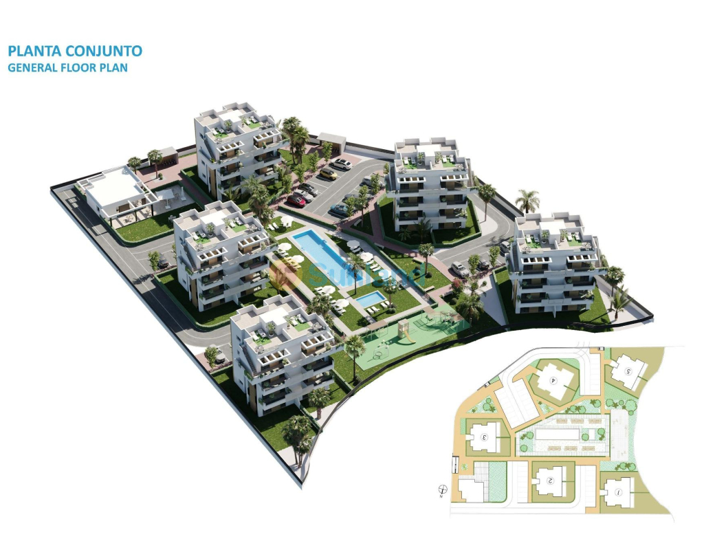 Nybyggede turistleiligheter i Santa Rosalía Lake and Life Resort Costa Cálida Førsteklasses beliggenhet i hjertet av Costa Cálida Disse nybyggede turistleilighetene i Santa Rosalía Lake and Life Resort representerer en av de beste investerings- og livsstilsmulighetene i regionen Murcia. Komplekset ligger mindre enn 4 km fra strendene i Los Alcázares og bare 22 km fra Murcia internasjonale lufthavn, og tilbyr en uovertruffen kombinasjon av tilgjengelighet, fritidsaktiviteter og moderne middelhavsliv. Den historiske byen Cartagena ligger bare 15 minutter unna, mens flere prestisjetunge golfbaner ligger innenfor en radius på 10 km. Eksklusivt boligkompleks med 40 leiligheter Prosjektet består av fem uavhengige bygninger med totalt 40 fullt møblerte leiligheter, fordelt på fire etasjer med to enheter per etasje. Hver leilighet har 2 soverom og 2 bad, designet for komfort og funksjonalitet. Kjøpere kan velge mellom enheter i første etasje med private hager, leiligheter i mellomste etasje med store terrasser eller penthouse-leiligheter med privat solarium og fantastisk utsikt. Fullt utstyrte boliger klare til innflytting Alle eiendommer leveres nøkkelferdige, inkludert møbler, klimaanlegg, belysning, kjøkkenutstyr, sengetøy, håndklær og et dekorasjonspakke. Dette sikrer at både eiere og gjester kan nyte en problemfri opplevelse fra første dag, noe som gjør det til et ideelt produkt for ferieutleie eller personlig bruk. Førsteklasses fasiliteter og fellesarealer Det inngjerdede boligområdet ligger på en 7000 m² stor tomt, designet med tanke på privatliv og sikkerhet takket være perimetergjerde og kontrollert tilgang. Beboere og gjester kan nyte godt av anlagte middelhavshager, felles svømmebassenger, lekeplasser for barn og rikelig med parkeringsplasser. I tillegg inkluderer prosjektet en egen bygning for felles tjenester som resepsjon, kafé, vaskeri og treningsstudio. Santa Rosalía Lake and Life Resort Livsstil Å eie en leilighet her betyr tilgang til de eksklusive fasilitetene i Santa Rosalía Lake and Life Resort, et unikt boligkompleks med mer enn 126 000 m² grøntområder. Høydepunktene inkluderer en spektakulær 17 000 m² krystallklar lagune med hvite sandstrender, to øyer (den ene med egen bar), strandklubber, idrettsanlegg, sykkel- og turstier, paddle- og tennisbaner, minigolf, hundeparker og et livlig klubbhus. Sikkerhets- og vedlikeholdstjenester er tilgjengelige 24/7, noe som gir trygghet for både beboere og besøkende. Invester i kvalitet og livsstil Disse nybygde turistleilighetene kombinerer høyt utleiepotensial med en eksepsjonell livsstil på Costa Cálida. Enten som feriebolig eller investering, er Santa Rosalía Lake and Life Resort et reisemål som garanterer kvalitet og verdi. Kontakt oss i dag for å lære mer og sikre deg en leilighet i dette unike middelhavsresortet.