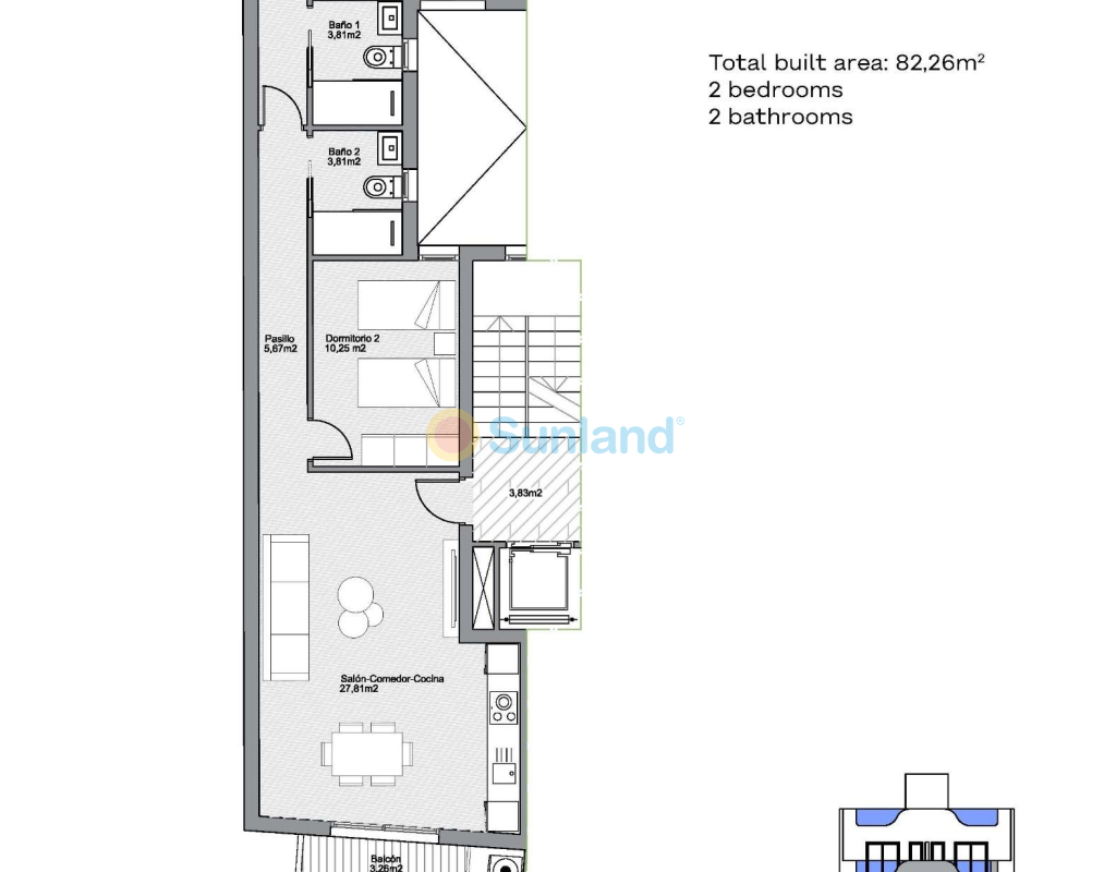 Moderne nybyggede leiligheter i hjertet av Torrevieja, bare 600 m fra sjøen Eksklusivt boutique-prosjekt i sentrum av Torrevieja Oppdag et eksklusivt boligprosjekt med bare 7 moderne nybyggede leiligheter, ideelt beliggende i det livlige sentrum av Torrevieja, Alicante. Bare 600 m fra strandpromenaden kombinerer disse stilige boligene fordelene ved å bo ved kysten med bekvemmeligheten ved en urban livsstil, med enkel tilgang til butikker, restauranter og fritidstilbud. Moderne design og smarte planløsninger Velg mellom leiligheter med 1 eller 2 soverom, hver med 2 bad (ett en-suite). De åpne planløsningene er designet for å maksimere plass og naturlig lys, og sikrer både komfort og funksjonalitet. Premium-finish som sikkerhetsdører, innebygde garderober med tekstilfinish, aluminiumsvinduer med termisk brudd og motoriserte persienner i stuen garanterer holdbarhet og stil. Kjøkken og bad har innredning av høy kvalitet, med dusjvegger og innebygde speil inkludert. Forhåndsinstallert luftkondisjonering for komfort hele året. Eksklusive fasiliteter for beboerne Denne moderne bygningen er designet for bekvemmelighet og avslapning. Beboerne kan nyte: Solarium på taket med felles svømmebasseng Parkeringsplass for sykler og e-scootere i første etasje Heis med tilgang til alle etasjer, inkludert taket Dynamisk livsstil på Costa Blanca Torrevieja er en livlig kystby kjent for sitt solrike klima med over 300 soldager i året, kulturelle arrangementer og middelhavsstil. Strendene, marinaen, promenadene og vannsportfasilitetene gjør det til et ideelt sted å bo permanent eller nyte en ferie. Alle viktige tjenester som supermarkeder, kafeer, skoler og helsesentre ligger innen gangavstand. Utmerket beliggenhet og tilknytning Denne privilegerte beliggenheten sikrer rask tilgang til viktige destinasjoner: Promenade: 600 m Playa del Acequión: 1 km Torrevieja Marina: 600 m Zenia Boulevard kjøpesenter: 8 km Golfbaner: 7–10 km Alicante internasjonale lufthavn: 45 km Ditt middelhavshjem venter Enten du er på utkikk etter et feriehus, en smart investering eller en permanent bolig, tilbyr disse moderne nybygde leilighetene i Torrevieja en enestående mulighet i et av de mest attraktive områdene på Costa Blanca. Kontakt oss i dag for å avtale en visning og sikre deg ditt nye hjem i dette eksklusive sentrumsprosjektet.