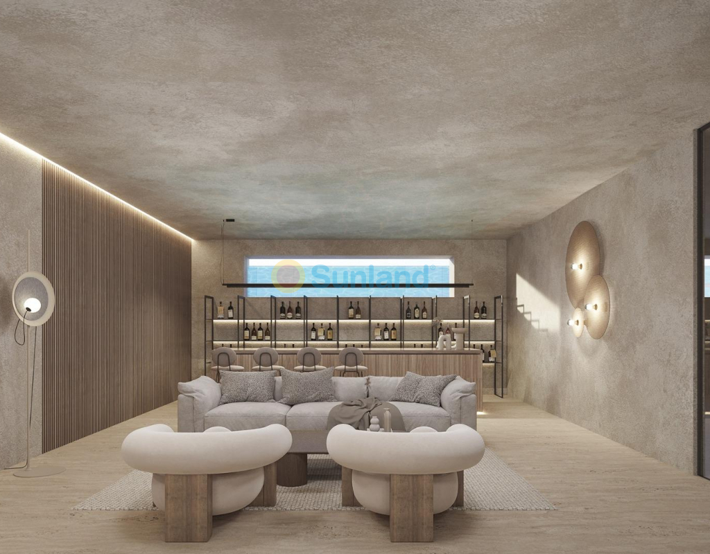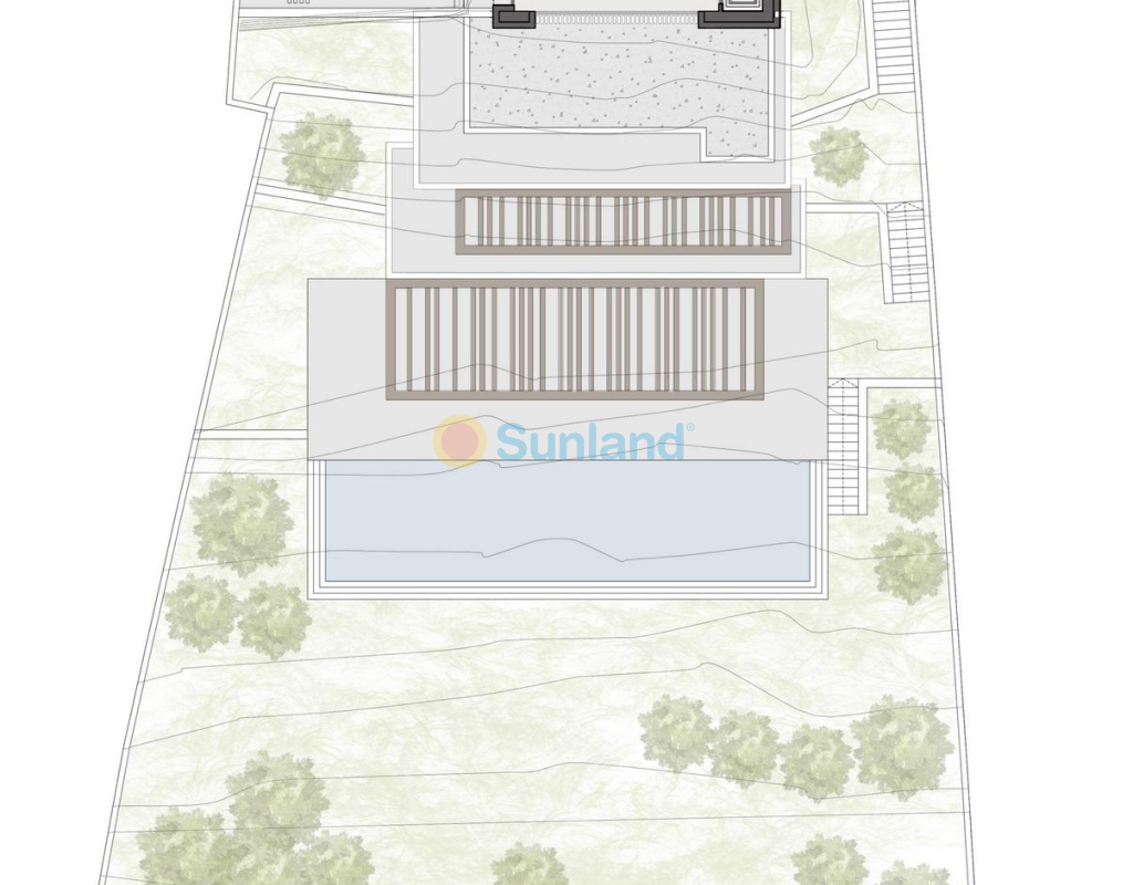 NYBYGGET VILLA I BENISSA Nybygget villa designet for å gå i dialog med omgivelsene og integreres i dem. Strukturen, basert på betongplattformer og pergolaer i tre, glir langs den naturlige skråningen av landet og skaper de innvendige oppholdsrommene. Tilgang til huset er gjennom en kassett som gir panoramautsikt over det omkringliggende området. På første nivå finner vi hovedsoverommet med eget omkledningsrom, bad og terrasse. En plattform for et soverom med eget bad med all mulig privatliv og intimitet. Går vi lenger ned, finner vi en annen plattform med resten av rommene i huset. Totalt tre romslige soverom med eget bad og terrasse opptar denne plassen. Det tredje nivået er okkupert av dagområdet. To separate stue-spisestue- og kjøkkenområder, som kan kobles sammen ved å skille skyvedøren som skiller dem fra hverandre. På den måten får man en åpen planløsning som står i direkte forbindelse med utsiden gjennom fire skyvepaneler. Et flytende rom mellom ute og inne som gjør at du kan nyte huset med brisen og utsikten til utsiden. I kjelleren er det et stort fritidsrom, spillrom, TV og bar og et treningsrom. Begge rommene oversvømmes av lyset som kommer inn gjennom åpningene i svømmebassenget og som lyset kommer inn gjennom, filtrert av vannets lysstyrke. Et hjem med eksepsjonell finish som gir det varme og som samtidig er i dialog med bassenget. TEKNISK KONTROLL OG DEKNINGSFORSIKRING -10 års ansvarsforsikring for strukturelle skader. -Kvalitetskontroll av bygningen utført av et sertifisert testlaboratorium. -Energikontroll utført av et akkreditert firma. -Teknisk kontroll (OCT) utført av et akkreditert selskap. -Installasjon av videoovervåket porttelefonanlegg med panoramautsikt. EKSTERIØR -Infinity-basseng. -Utvendig avgrensningsmur av murverk og metallgjerde. -Glassrekkverk på terrassene. -LED innfelt belysning rundt omkretsen av huset. -Motorisert hovedport til garasjen, av merket HORMANN eller tilsvarende. -Hage med trær og vanningssystem. -Asfaltert innkjøringsrampe og parkeringsplass med brostein. RØRLEGGERARBEID OG ELEKTRISITET -Hjemmeautomatiseringssystem som styrer persienner, bassengbelysning, utvendig belysning og videointercom. -JUNG elektriske installasjoner. Gulvvarme og kanalisert klimaanlegg med uavhengige termostater i hvert rom, AIRZONE-system. -Hvite sanitærinnredninger, møbler, vasker og armaturer i porselen fra ROCA, HANSGROHE og GEBERIT. -Høyeffektiv luft-til-vann-varmepumpe med slanke, lineære ventilasjonsåpninger. Telefon- og TV-tilkobling i alle soverom, stue, kjøkken og kjellerrom. -Video intercom og alarmsystem med detektorer. KJØKKEN roposed modell i prosjektet: -Kjøkkenmøbler med fransk eik. Nytt Darwin-maskinvaresystem. Skuff- og skapinnredning i arkitektmodell. -Kjøkkenbenkeplate i porselensteintøy, LIVING CERAMICS. -Avanserte hvitevarer fra MIELE eller tilsvarende, fullt integrert, inkludert stekeovn, mikrobølgeovn, kaffetrakter, oppvaskmaskin, kjøleskap, fryser og induksjonstopp med integrert avtrekksvifte med utvendig ventilasjon. Benissa er en pittoresk by i Alicante-provinsen, kjent for sin rike historie, sitt fjellandskap og sin forrevne kystlinje. Gamlebyen i Benissa er spesielt sjarmerende, med smale brosteinsbelagte gater, hvite hus med detaljer fra middelalderen og historiske landemerker som Purísima Xiqueta-kirken og kontraktshallen (Lonja de Contratación). Arkitekturen gjenspeiler byens mauriske og middelalderske fortid, og tilbyr besøkende en reise gjennom tiden. I tillegg til kulturarven kan Benissa skilte med en vakker kystlinje på ca. 4 kilometer, kjent for sine viker og krystallklare strender, som Cala Advocat og Cala Fustera. Disse områdene er ideelle for dykking, snorkling og andre vannaktiviteter. Byen er også kjent for sine vandre- og sykkelruter som går både langs kysten og i innlandet, og som gir besøkende panoramautsikt over Middelhavet og det landlige landskapet. Benissas kjøkken er et annet høydepunkt, med tradisjonelle retter som arroz a banda, tørket blekksprut og lokale pølser.