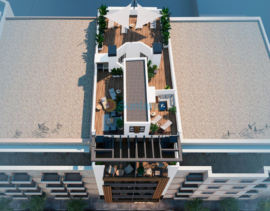 Moderne leiligheter bare 250 meter fra Playa del Cura i Torrevieja Eksklusivt nytt boligprosjekt i hjertet av Torrevieja Dette eksklusive boligprosjektet med 12 moderne leiligheter ligger bare 250 meter fra Playa del Cura, en av de mest populære strendene i Torrevieja. Bygningen er designet med en perfekt balanse mellom eleganse, funksjonalitet og middelhavsstil, og tilbyr en rekke ulike planløsninger med 1 eller 2 soverom, inkludert leiligheter med terrasse og penthouse-leiligheter med private solterrasser. Den sentrale beliggenheten gir enkel tilgang til butikker, restauranter, fritidsområder og alle nødvendige tjenester, samtidig som den opprettholder en følelse av komfort og ro. Førsteklasses fasiliteter for en moderne livsstil Utbyggingen inkluderer 130 m² fellesarealer designet for avslapning og underholdning. Beboerne kan nyte: Svømmebasseng i første etasje med barneområde Treningsstudio og badstue Solarium på taket med avslapningsområder og frodig vegetasjon Alle leilighetene er bygget med materialer og overflater av høy kvalitet, som sikrer både komfort og holdbarhet. Funksjonene inkluderer: Fullt møblerte bad med dusjvegger Forhåndsinstallert luftkondisjonering Høykvalitets PVC-utvendig snekring med solbeskyttelsesglass Forsterket sikkerhetsdør Det pulserende livet i Torrevieja Torrevieja er en livlig kystby på Costa Blanca, kjent for sine kulturelle og rekreasjonsaktiviteter året rundt. Med over 300 soldager i året og et mildt middelhavsklima er området ideelt for strandelskere, friluftsentusiaster og de som søker en pulserende livsstil. Byen tilbyr også et bredt utvalg av tjenester, internasjonal mat, marinaer og en livlig promenade. Førsteklasses beliggenhet med utmerket tilknytning Utbyggingen er strategisk plassert med enkel tilgang til viktige severdigheter: Alicante lufthavn: 45 km Golfbaner: 7–10 km Zenia Boulevard kjøpesenter: 8 km Torrevieja marina og havn: 2 km Ditt perfekte hjem ved sjøen Enten du er på utkikk etter en permanent bolig, en feriebolig eller en eiendom med utleiepotensial, tilbyr disse moderne leilighetene i Torrevieja en utmerket mulighet til å investere i Costa Blanca-livsstilen. Kontakt oss i dag for å avtale en visning og sikre deg din moderne leilighet bare noen skritt fra Playa del Cura.