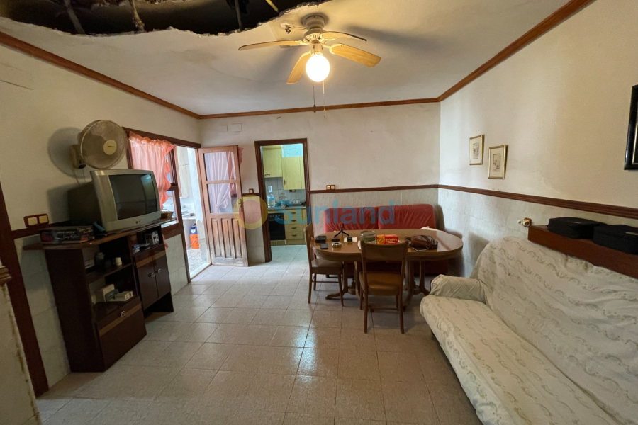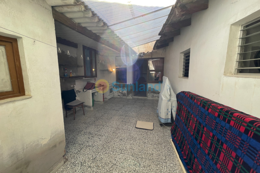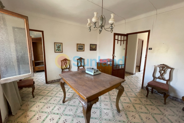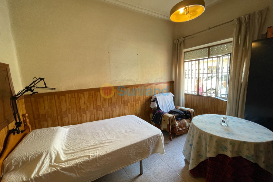 Til salgs: romslig rekkehus på 500 m², beliggende midt i hjertet av Benejúzar. Eiendommen har den store fordelen av å ha to gatefasader, med separate innganger fra hver side, noe som gir mange bruksområder.