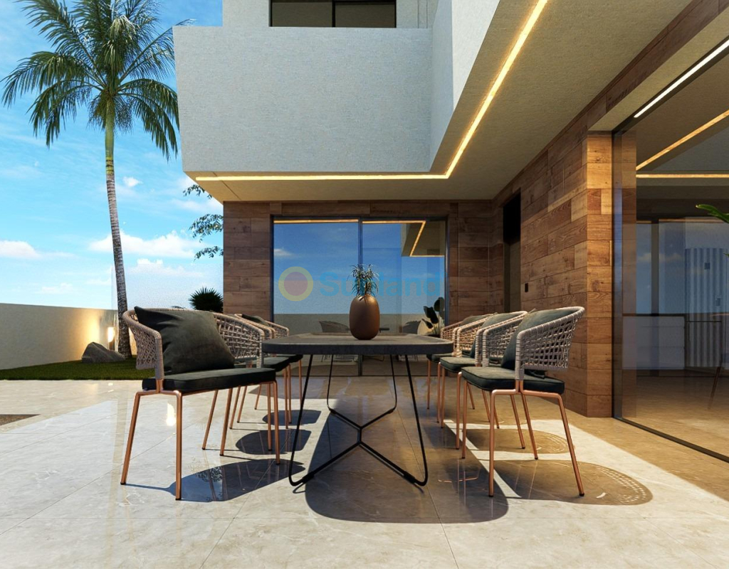 Nybyggede villaer i San Pedro del Pinatar med privat basseng Moderne design og førsteklasses beliggenhet Dette eksklusive nybyggprosjektet med villaer i San Pedro del Pinatar tilbyr den perfekte kombinasjonen av moderne stil, komfort og en uovertruffen beliggenhet på Costa Cálida. Villaene er designet i to etasjer og bygget på tomter fra 250 m2. Hver villa har en moderne planløsning med en lys åpen stue og kjøkken som går sømløst over i det private bassengområdet. Parkering er inkludert på tomten for maksimal bekvemmelighet. Villaene ligger i et sentralt boligområde, bare 5 minutters gange fra sentrum, 900 meter fra sjøen og i nærheten av alle nødvendige tjenester som butikker, supermarkeder, skoler og restauranter. Romslig interiør og funksjonell planløsning Disse villaene er fordelt på to etasjer: Første etasje: åpen stue og spisestue med integrert kjøkken, ett soverom, ett bad og en terrasse. Andre etasje: to soverom med eget bad og tilgang til en 25 m2 åpen terrasse. Hver detalj er nøye utformet for å maksimere komfort og stil, noe som gjør disse villaene ideelle som permanent bolig, feriehus eller investeringseiendom. Høy kvalitet på finish og funksjoner Hver eiendom har førsteklasses finish og moderne installasjoner for å sikre energieffektivitet og en luksuriøs boopplevelse: Pansret inngangsdør og elektriske persienner i stuen Forhåndsinstallert luftkondisjonering Aerotermisk varmtvannssystem Fullt utstyrt kjøkken med hvitevarer LED-belysningspakke for interiør og eksteriør Livsstil i San Pedro del Pinatar San Pedro del Pinatar er en ettertraktet kystby mellom Middelhavet og Mar Menor, kjent for sine naturlige gjørmebad i Lo Pagán, rolige strender og nautiske aktiviteter. Marinaen og seilklubbene tiltrekker seg vannsportentusiaster, mens det milde klimaet gjør det mulig å drive med utendørsaktiviteter hele året. Byen tilbyr også idrettsanlegg, et innendørs svømmebasseng og et livlig sosialt og kulturelt program. Avstander til viktige severdigheter: Dos Mares kjøpesenter: 5 km Cartagena: 25 minutter Murcia internasjonale lufthavn: 30 minutter Alicante lufthavn: 75 km Golfbaner: innenfor en radius på 10–20 km Sikre deg ditt nye hjem i Costa Cálida Med sin førsteklasses beliggenhet, moderne design og utmerkede forbindelser er disse villaene i San Pedro del Pinatar en unik mulighet. Kontakt oss i dag for å avtale en visning og begynn å nyte den middelhavsstilen du fortjener.