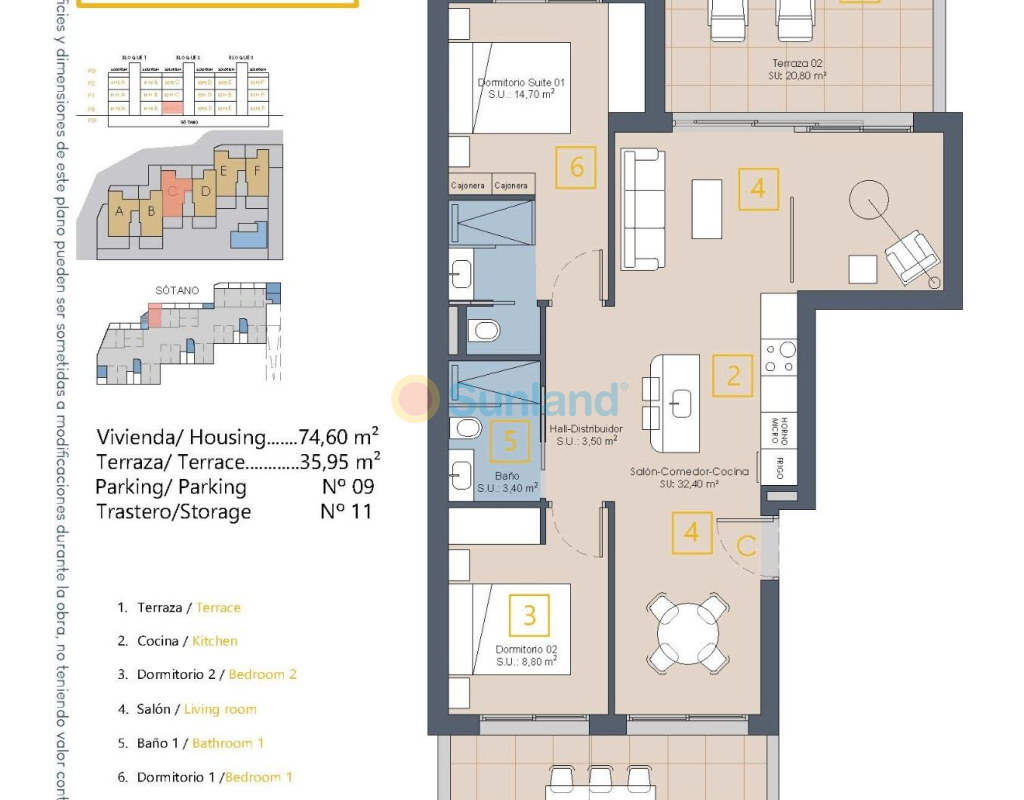 Nybygget boligkompleks i Los Alcázares ved Serena Golf Eksklusivt boende på Costa Cálida Oppdag dette nye boligprosjektet i Los Alcázares, med perfekt beliggenhet ved Serena Golf og bare 1,3 km fra strendene ved Mar Menor. Dette prosjektet ligger i hjertet av Costa Cálida og kombinerer moderne arkitektur, komfort og enestående omgivelser. Med utmerkede veiforbindelser ligger komplekset bare 30 km fra Murcia lufthavn (25 minutter) og 90 km fra Alicante lufthavn (55 minutter), og tilbyr enkel tilgang til Cartagena, Murcia og Costa Blanca. Moderne boliger med eksepsjonell design Boligkomplekset består av 18 elegante leiligheter og 7 eksklusive villaer, hver designet for å maksimere plass, lys og funksjonalitet. Beboerne vil nyte en fantastisk utsikt over golfbanen og, fra de øverste etasjene, det glitrende vannet i Mar Menor. Velg mellom: Leiligheter med 2 eller 3 soverom og 2 bad, alle med dobbel orientering og to terrasser for sol hele dagen. Leiligheter i første etasje med private hager. Leiligheter i midtre etasje med store terrasser. Penthouse-leiligheter med to terrasser, privat solarium og panoramautsikt. Frittliggende villaer ved golfbanen, med 3 soverom, 2 bad, kjeller, solarium og privat basseng. Premium-funksjoner og fasiliteter Alle boliger er utstyrt med høykvalitets finish og moderne bekvemmeligheter, inkludert: Parkeringsplass og bod Aerotermisk varmtvannssystem Forhåndsinstallert klimaanlegg Elektriske persienner og komplett belysningspakke Fullt utstyrte bad med møbler og dusjvegger Felles svømmebasseng og anlagte hager Heis i leilighetsblokkene Perfekt beliggenhet for golf- og strandelskere Beliggende i en privilegert enklave, er utviklingen omgitt av det fredelige grøntområdet Serena Golf og ligger bare en kort spasertur fra det varme, grunne vannet i Mar Menor. Dette unike området tilbyr muligheter for svømming, seiling, paddleboarding og andre vannsportaktiviteter hele året, noe som gjør det ideelt for både avslapning og aktivitet. Viktige avstander: Strand (Mar Menor): 1,3 km Serena Golf: Ved siden av komplekset Los Alcázares sentrum: 2 km Cartagena: 22 km Murcia by: 40 km Murcia flyplass: 30 km (25 minutter) Alicante lufthavn: 90 km (55 minutter) Sikre deg en middelhavsstil Dette boligprosjektet i Los Alcázares tilbyr den perfekte kombinasjonen av strand, golf og moderne livsstil. Enten det er som permanent bolig, feriebolig eller investering, tilbyr det alt du trenger for en autentisk middelhavsstil. Kontakt oss i dag for å avtale en visning og sikre deg ditt nye hjem på Costa Cálida.