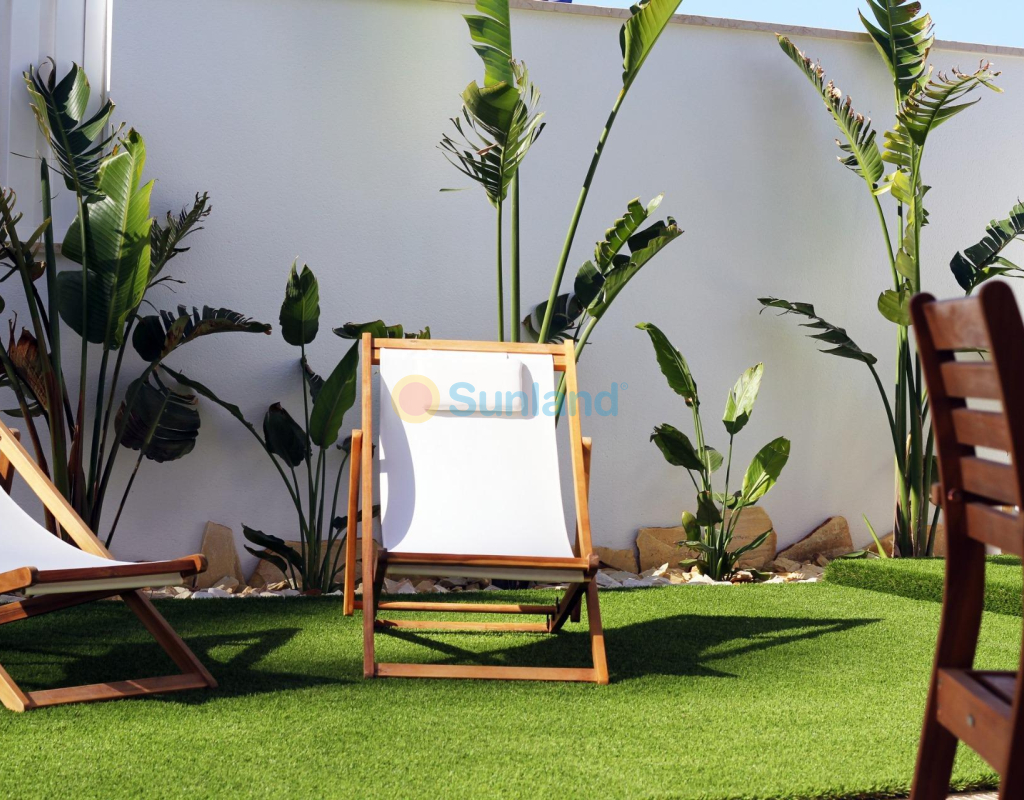 NYBYGD BOLIGKOMPLEKS I TORRE DE LA HORADADA Nybygget boligkompleks med bungalowleiligheter med felles svømmebasseng i Torre de la Horadada, 800 meter fra stranden. Alle eiendommene har 2-3 soverom, 2 bad, åpen kjøkkenløsning med stue, garderober og terrasse. Alle eiendommene har private hager og parkeringsplass. Pluss bungalower i toppetasjen har privat solarium. Torre de la Horadada ligger sør for Alicante med en vakker beliggenhet ved kysten. De vakre strendene i Torre de la Horadada og Mil Palmeras har fin sand og en vakker strandpromenade. Det er mange restauranter, barer og butikker, og du kan også drive med vannsport, dykking og snorkling. Det er gode forbindelser, bare 40 minutter fra flyplassene i Alicante og Murcias Corvera, med store kommersielle kjøpesentre og flere golfbaner innen rekkevidde.