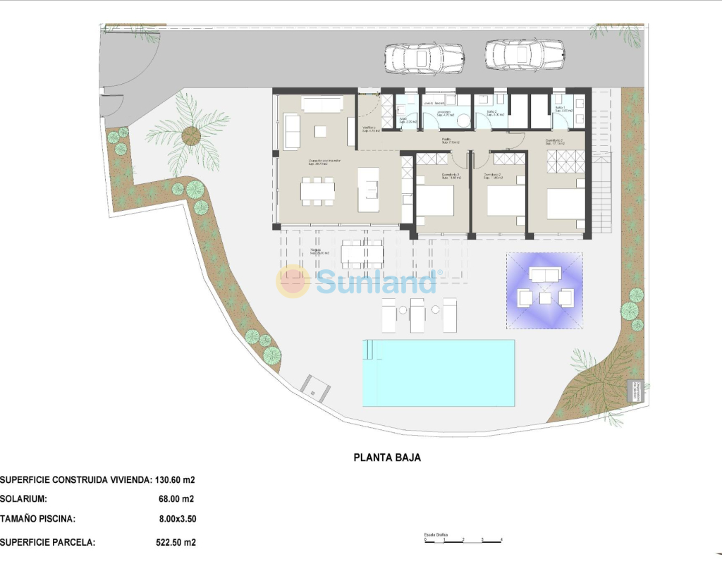 Moderne villa bare 150 meter fra stranden i Cabo de Palos, Costa Cálida Eksklusiv middelhavsstil ved sjøen Denne luksuriøse nybygde villaen i Cabo de Palos, som ligger bare 150 meter fra stranden, kombinerer moderne arkitektur med komfort og privatliv. Eiendommen er bygget på en 522 m2 tomt og tilbyr en eksepsjonell beliggenhet for de som søker et fredelig kysthus omgitt av natur, med alle fasiliteter i nærheten. Cabo de Palos er et av de mest eksklusive reisemålene på Costa Cálida, kjent for sitt krystallklare vann, sjarmerende bukter og livlige marina. Området er ideelt for elskere av dykking, seiling og middelhavsgastronomi, samtidig som det ligger bare en kort kjøretur unna større byer som Cartagena og La Manga. Elegant design og funksjonell planløsning Denne fantastiske villaen i ett plan har et byggeareal på 130 m2, designet for å maksimere naturlig lys og komfort. 3 soverom, inkludert en master suite med eget bad Åpen stue og spisestue med store vinduer som gir sømløs forbindelse til hagen Fullt utstyrt moderne kjøkken med høykvalitets finish og integrerte hvitevarer Vaskerom og gjestebad Privat basseng (8x3 m) omgitt av anlagte hager med vanningsanlegg og belysning 68 m2 solarium på taket med havutsikt og det perfekte stedet for å nyte middelhavssolen hele året Komfort, sikkerhet og høykvalitets finish Hver detalj er nøye designet for en eksepsjonell boopplevelse: LED-belysning i hele interiøret og eksteriøret Doble vinduer for varme- og lydisolering Full aircondition-installasjon Sikkerhetssystem med utvendige kameraer og innvendige bevegelsessensorer Anlagt hage med innfødte planter og automatisk vanningsanlegg Førsteklasses beliggenhet i Cabo de Palos Villaen har en strategisk og fredelig beliggenhet i Cala Flores-området, bare noen skritt fra uberørte strender og pittoreske viker som er ideelle for svømming og snorkling. Strand: 150 m Marina og promenade: 1 km (5 minutter) La Manga Club Golf Resort: 12 km Murcia internasjonale lufthavn (Corvera): 56 km Alicante lufthavn: 126 km Lev ut din middelhavsdrøm Denne eksklusive villaen i Cabo de Palos tilbyr den perfekte balansen mellom luksus, natur og nærhet til havet. Enten som permanent bolig eller feriebolig, gir den en unik mulighet til å nyte den autentiske middelhavsstilen. Kontakt oss i dag for å avtale en visning og gjør dette ekstraordinære kysthuset til ditt.