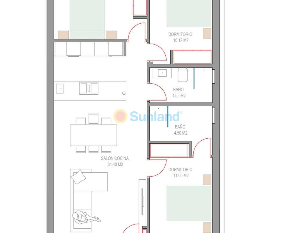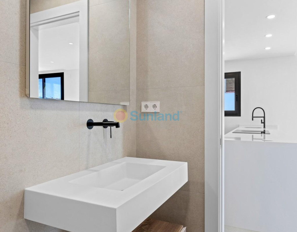 Eksklusive nybygg i Pilar de la Horadada, Costa Blanca Moderne middelhavsstil nær stranden Oppdag dette eksklusive nybyggprosjektet med bare 8 moderne boliger i Pilar de la Horadada, som ligger i gangavstand fra sentrum og bare 3,5 km fra de vakre strendene i Torre de la Horadada og Mil Palmeras. Denne sjarmerende kystbyen, som ligger i den sørligste delen av Costa Blanca, er kjent for sin avslappede atmosfære, tradisjonelle spanske sjarm og utmerkede fasiliteter. Innbyggerne kan nyte godt av et bredt utvalg av tjenester, inkludert supermarkeder, restauranter, butikker og fritidsområder, alt bare noen få minutter unna. Elegante boliger designet for komfort og stil Utbyggingen tilbyr et utvalg av leiligheter i første etasje med terrasser og private hager, eller leiligheter i øverste etasje med romslige terrasser og private solarium. Hver bolig har 3 soverom og 2 bad, hvorav ett er ensuite, designet med moderne linjer og høykvalitets finish for å sikre maksimal komfort. Boligkomplekset har et felles svømmebasseng omgitt av anlagte hager, som skaper et innbydende og fredelig miljø for avslapning og fritid. Hver eiendom har også en privat parkeringsplass og et bod. Høy kvalitet på finish og førsteklasses funksjoner Disse nybygde boligene er konstruert med materialer av topp kvalitet og med fokus på detaljer. Viktige spesifikasjoner inkluderer: Aluminiumsvinduer i antrasittgrått med termisk barriere (merket CORTIZO) Firedobbel vinduer med solbeskyttelse Elektriske aluminiumsluker i soverommene Hengende toaletter og dusjkabinetter med integrert gulv Baderomsmøbler med LED-bakbelyste speil og elektriske håndklestativ Fullt utstyrt kjøkken med Miele-apparater LED-belysning innvendig og utvendig i hele boligen Komplett klimaanlegg via kanaler (Fujitsu-system) Perfekt beliggenhet på Costa Blanca Pilar de la Horadada har en ideell beliggenhet både for permanent opphold og ferier. Byen kombinerer det beste av tradisjonelt spansk liv med moderne infrastruktur og nærhet til havet. Viktigste avstander: Strendene i Torre de la Horadada og Mil Palmeras: 3,5 km Lo Romero golfbane: 6 km Murcia-Corvera flyplass: 40 km Alicante flyplass: 55 km Marinaen i San Pedro del Pinatar: 10 km Ditt nye hjem i solen venter Nyt den perfekte kombinasjonen av design, komfort og middelhavsstil i disse nybygde boligene i Pilar de la Horadada. Enten du er på utkikk etter et feriested eller en bolig for hele året, tilbyr dette eksklusive prosjektet den ideelle balansen mellom kvalitet, beliggenhet og moderne livsstil. Kontakt oss i dag for mer informasjon eller for å avtale en visning.