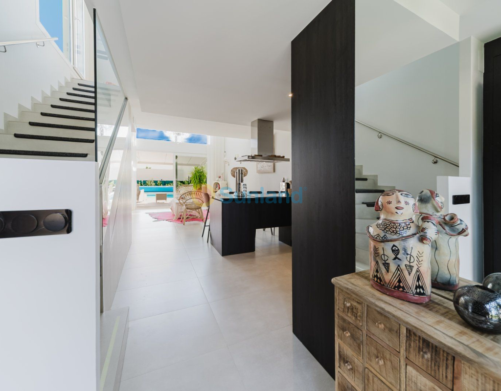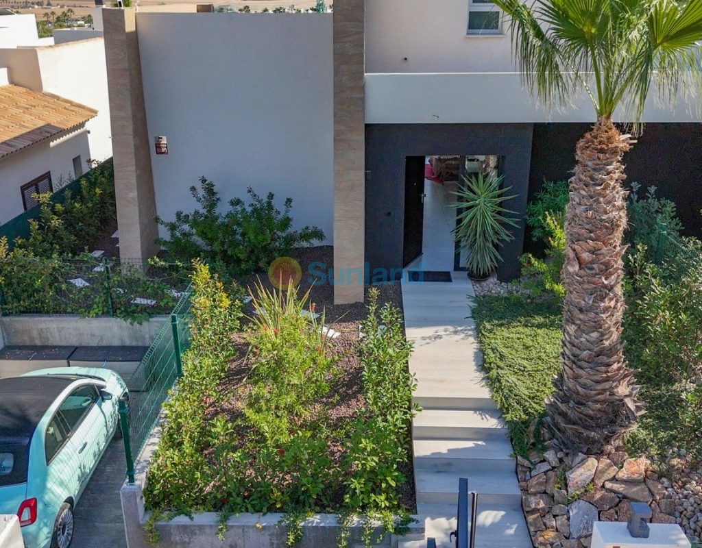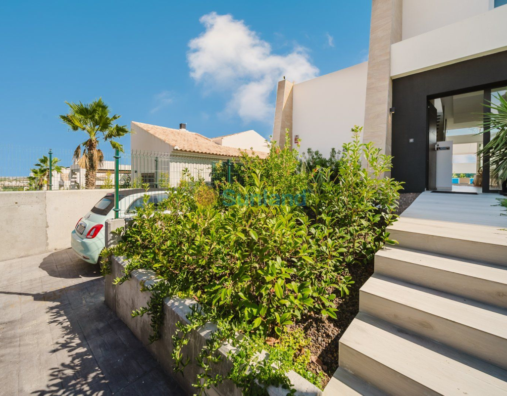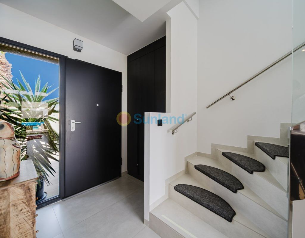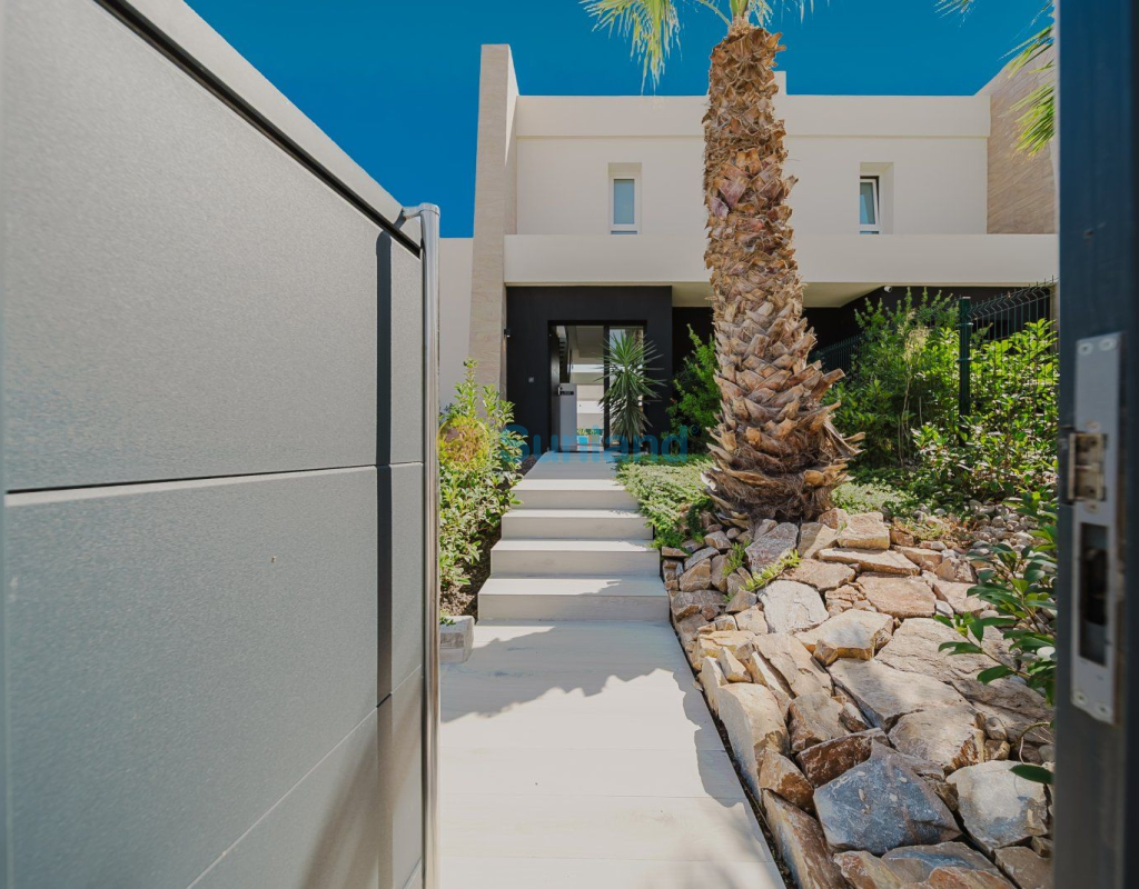 Moderne halvannenebolig med privat basseng på La Finca Golf, Algorfa. Ligger i et eksklusivt boligområde innenfor La Finca Golf. Denne moderne halvanneneboligen ble bygget i 2024 på en tomt på 312 m² og har 108 m² fordelt på to etasjer. Boligen har 3 soverom (2 i første etasje og 1 i andre etasje med terrasse), 2 bad med gulvvarme, en romslig stue med dobbel takhøyde og et moderne fullt utstyrt kjøkken. Uteområdet har en lettstelt hage med automatisk vanning, privat svømmebasseng på 24 m² (4×6 m) og parkeringsplass på egen tomt. Utstyrt med aerotermisk system, solcellepaneler for varmtvann, elektriske persienner og markiser. Boligen er i perfekt stand, sørvestvendt og svært lys. Kvaliteter: 3 soverom (2 i første etasje) 2 bad med gulvvarme 108 m² bebygd / 312 m² tomt Privat basseng 24 m² (4×6 m) Stue med dobbel takhøyde Moderne kjøkken fullt utstyrt Aerotermisk system og solcellepaneler Elektriske persienner og markiser Lettstelt hage med automatisk vanning Parkering på egen tomt Sørvestvendt Byggeår: 2024 Om La Finca Golf Resort La Finca Golf er en av Costa Blancas beste golfdestinasjoner. Denne 18-hulls, par-72 mesterskapsbanen tilbyr brede fairways, perfekte greener, strategisk plasserte bunkere, vannhinder, vakre naturlandskap og imponerende utsikter, noe som gjør golfopplevelsen utfordrende, men likevel underholdende for golfere på alle nivåer. På La Finca vil du oppdage toppmoderne fasiliteter, inkludert et velutstyrt sport- og treningssenter, paddel- og tennisbaner, og tre spisesteder—et klubbhus restaurant og to eksklusive Wine & Dine-opplevelse. Fasiliteter: 18-hulls par-72 mesterskapsgolfbane Klubbhusrestaurant og bar Wine & Dine Frijolino og Misto Treningssenter, tennis- og paddelbaner 5-stjerners La Finca Hotel Spa og svømmebasseng Vinkjeller, La Finca Bodega Ladestasjon for elbiler Avstand til: Alicante flyplass – 55 km, 40 min Kjøpesenteret La Zenia Boulevard – 21 km, 20 min Stranden i Guardamar del Segura – 19 km, 20 min Vannpark, Aquopolis Torrevieja – 19 km, 20 min Hospital Universitario de Torrevieja – 18 km, 18 min
