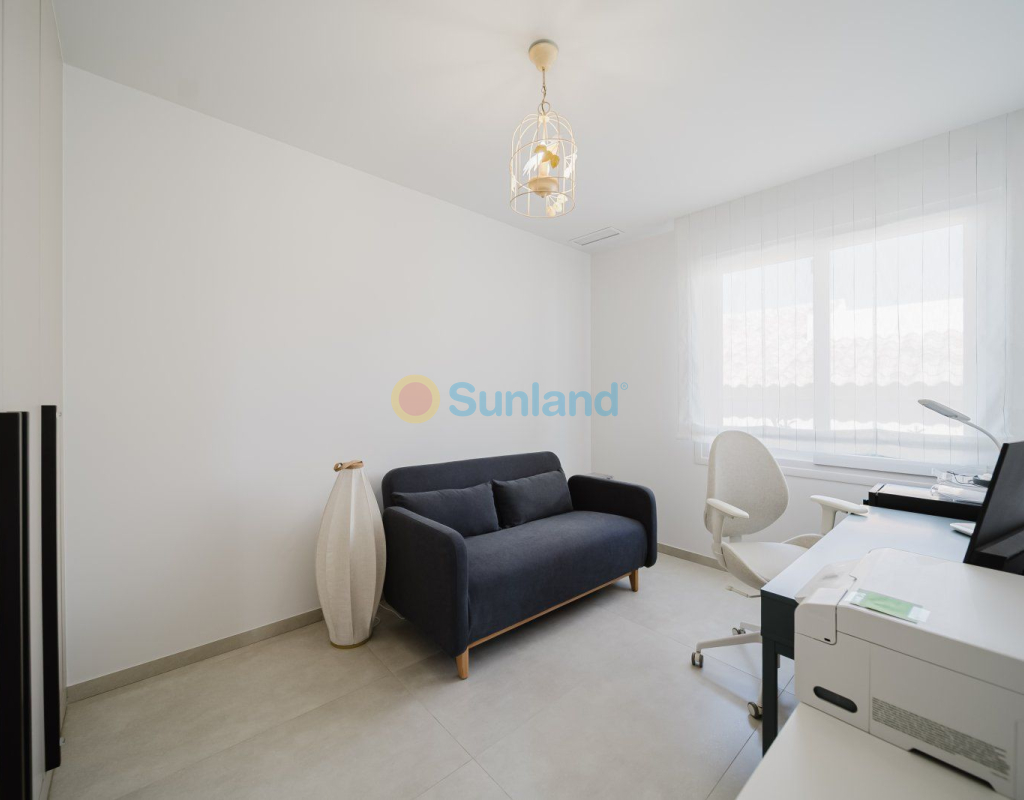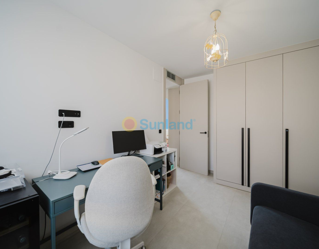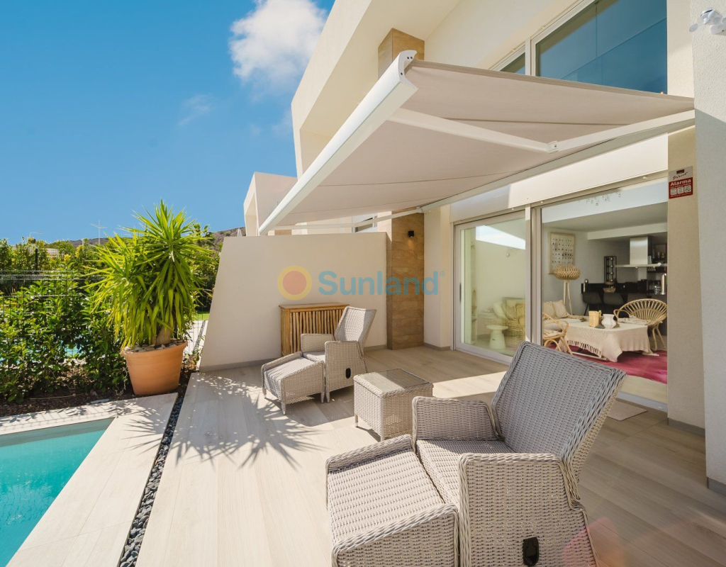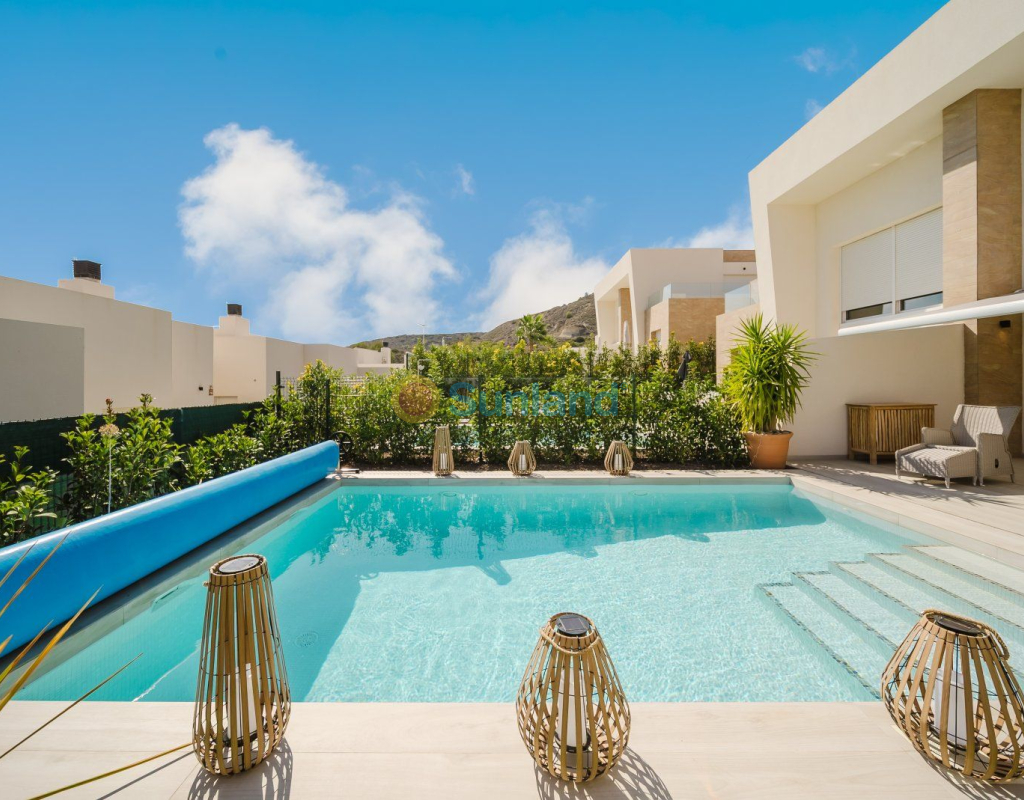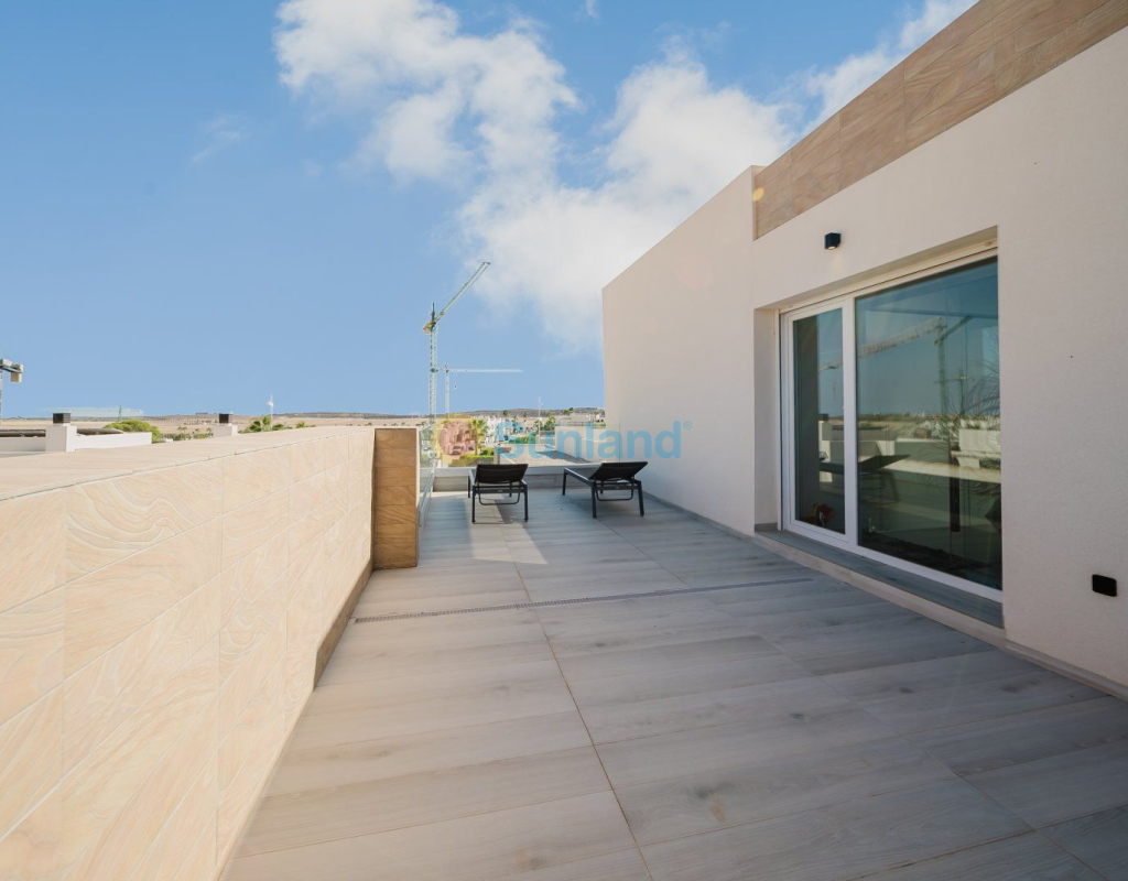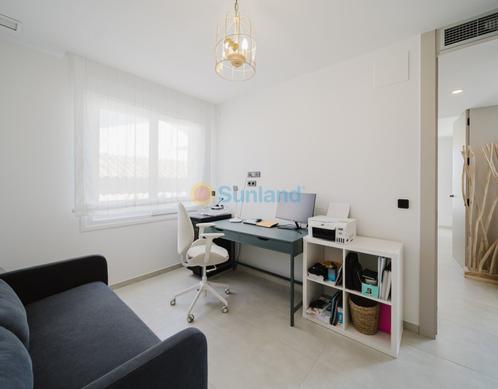 Moderne halvannenebolig med privat basseng på La Finca Golf, Algorfa. Ligger i et eksklusivt boligområde innenfor La Finca Golf. Denne moderne halvanneneboligen ble bygget i 2024 på en tomt på 312 m² og har 108 m² fordelt på to etasjer. Boligen har 3 soverom (2 i første etasje og 1 i andre etasje med terrasse), 2 bad med gulvvarme, en romslig stue med dobbel takhøyde og et moderne fullt utstyrt kjøkken. Uteområdet har en lettstelt hage med automatisk vanning, privat svømmebasseng på 24 m² (4×6 m) og parkeringsplass på egen tomt. Utstyrt med aerotermisk system, solcellepaneler for varmtvann, elektriske persienner og markiser. Boligen er i perfekt stand, sørvestvendt og svært lys. Kvaliteter: 3 soverom (2 i første etasje) 2 bad med gulvvarme 108 m² bebygd / 312 m² tomt Privat basseng 24 m² (4×6 m) Stue med dobbel takhøyde Moderne kjøkken fullt utstyrt Aerotermisk system og solcellepaneler Elektriske persienner og markiser Lettstelt hage med automatisk vanning Parkering på egen tomt Sørvestvendt Byggeår: 2024 Om La Finca Golf Resort La Finca Golf er en av Costa Blancas beste golfdestinasjoner. Denne 18-hulls, par-72 mesterskapsbanen tilbyr brede fairways, perfekte greener, strategisk plasserte bunkere, vannhinder, vakre naturlandskap og imponerende utsikter, noe som gjør golfopplevelsen utfordrende, men likevel underholdende for golfere på alle nivåer. På La Finca vil du oppdage toppmoderne fasiliteter, inkludert et velutstyrt sport- og treningssenter, paddel- og tennisbaner, og tre spisesteder—et klubbhus restaurant og to eksklusive Wine & Dine-opplevelse. Fasiliteter: 18-hulls par-72 mesterskapsgolfbane Klubbhusrestaurant og bar Wine & Dine Frijolino og Misto Treningssenter, tennis- og paddelbaner 5-stjerners La Finca Hotel Spa og svømmebasseng Vinkjeller, La Finca Bodega Ladestasjon for elbiler Avstand til: Alicante flyplass – 55 km, 40 min Kjøpesenteret La Zenia Boulevard – 21 km, 20 min Stranden i Guardamar del Segura – 19 km, 20 min Vannpark, Aquopolis Torrevieja – 19 km, 20 min Hospital Universitario de Torrevieja – 18 km, 18 min