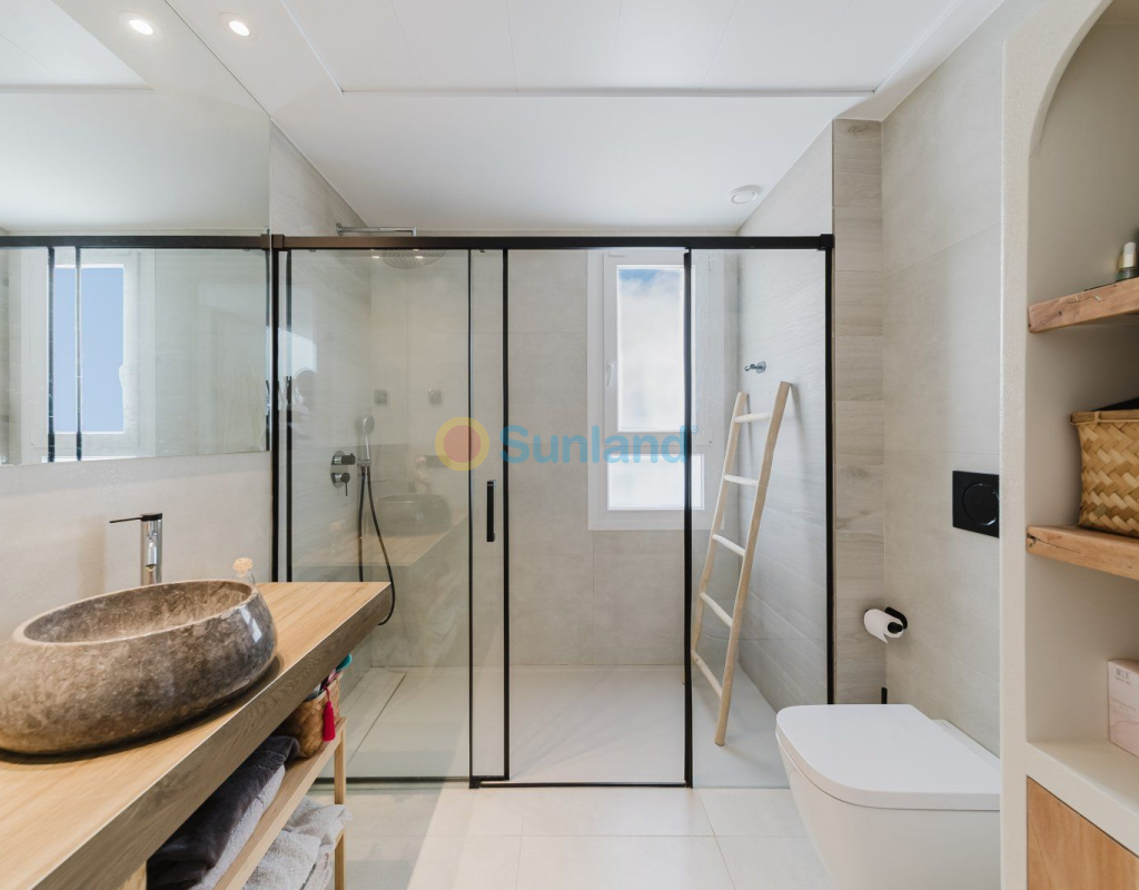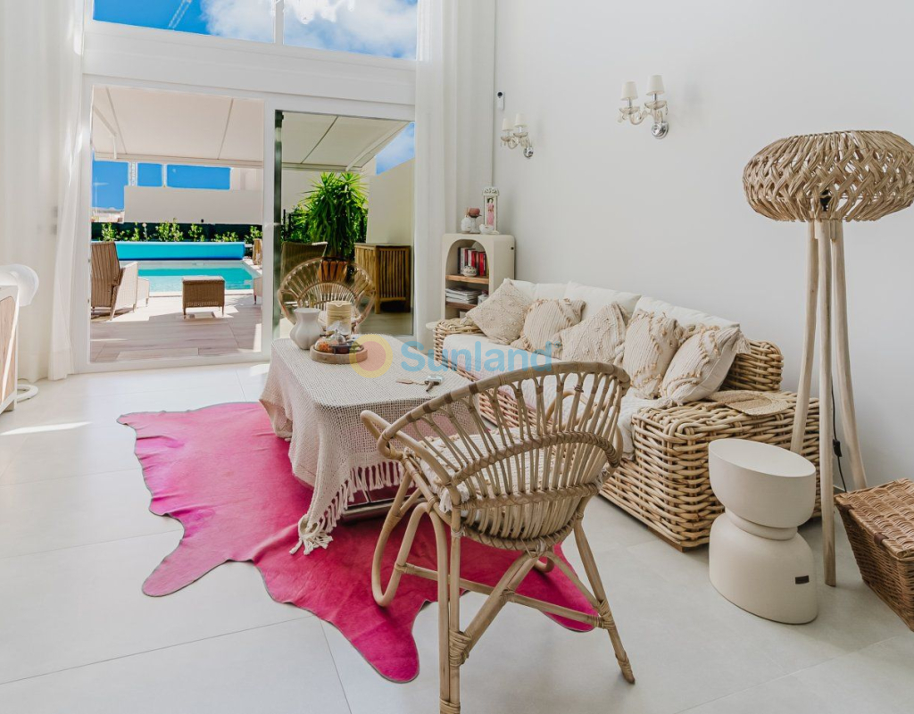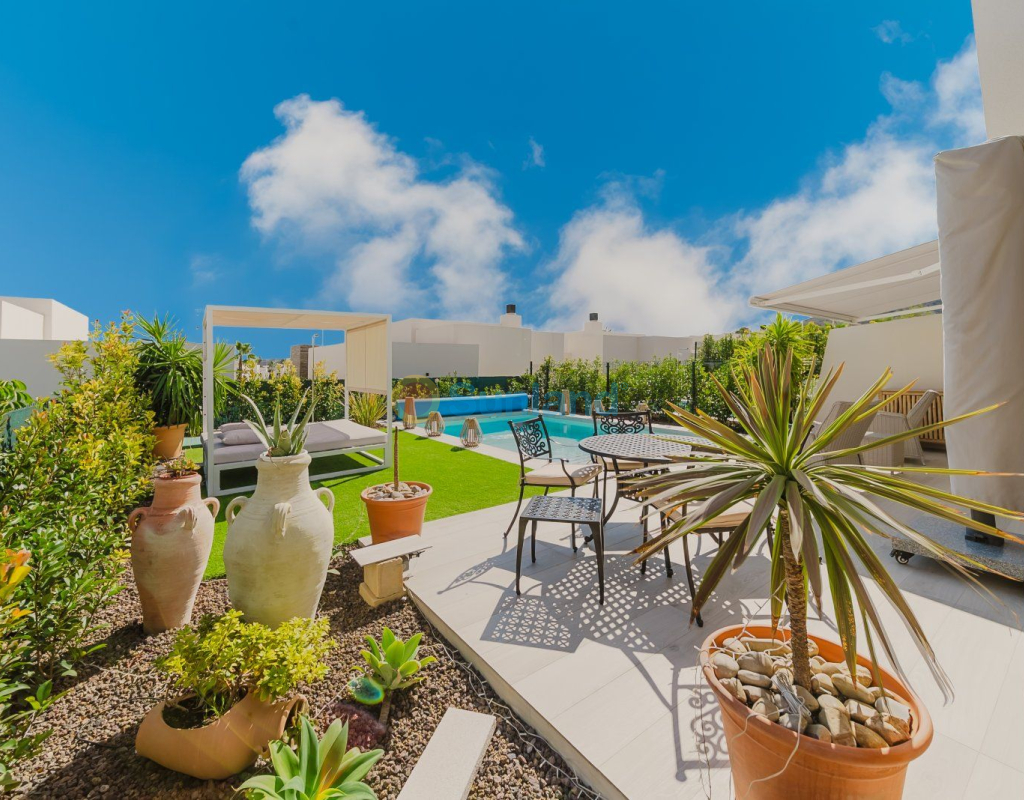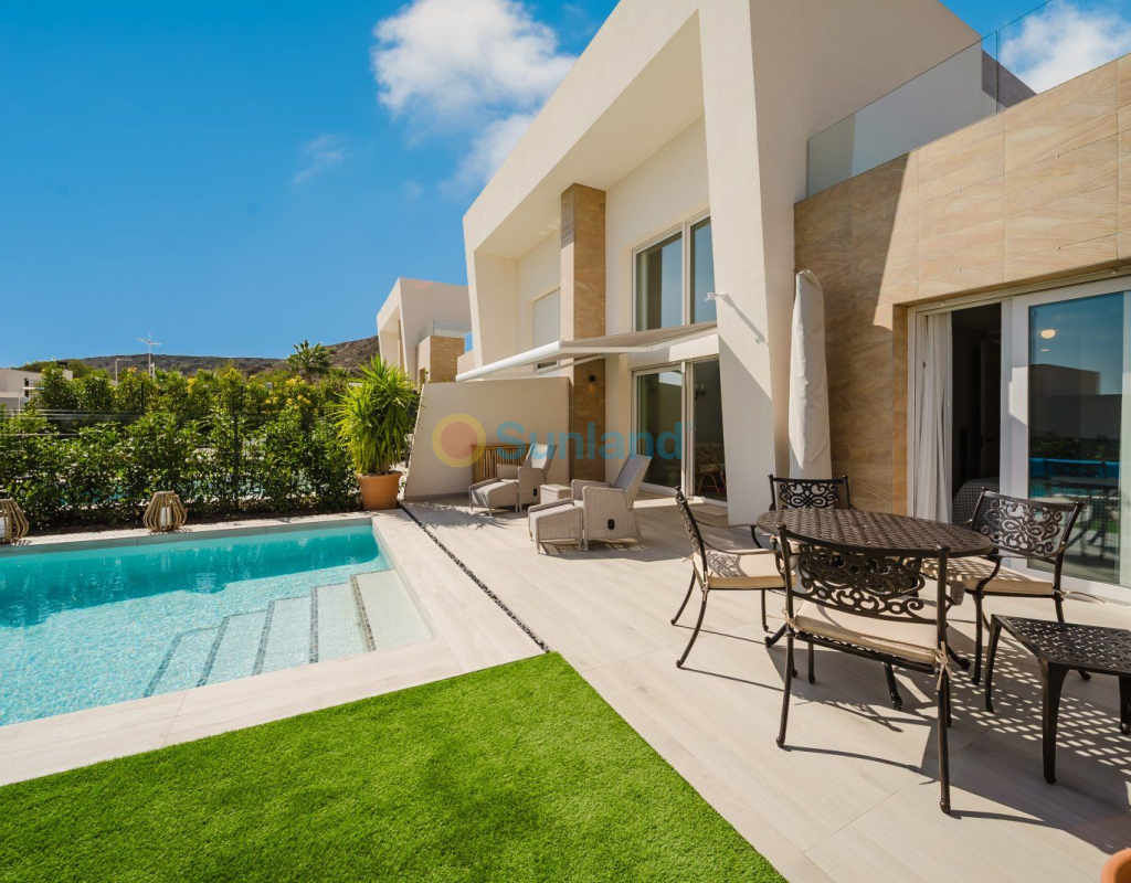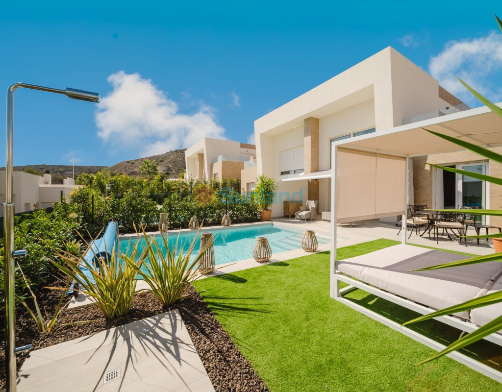 Moderne halvannenebolig med privat basseng på La Finca Golf, Algorfa. Ligger i et eksklusivt boligområde innenfor La Finca Golf. Denne moderne halvanneneboligen ble bygget i 2024 på en tomt på 312 m² og har 108 m² fordelt på to etasjer. Boligen har 3 soverom (2 i første etasje og 1 i andre etasje med terrasse), 2 bad med gulvvarme, en romslig stue med dobbel takhøyde og et moderne fullt utstyrt kjøkken. Uteområdet har en lettstelt hage med automatisk vanning, privat svømmebasseng på 24 m² (4×6 m) og parkeringsplass på egen tomt. Utstyrt med aerotermisk system, solcellepaneler for varmtvann, elektriske persienner og markiser. Boligen er i perfekt stand, sørvestvendt og svært lys. Kvaliteter: 3 soverom (2 i første etasje) 2 bad med gulvvarme 108 m² bebygd / 312 m² tomt Privat basseng 24 m² (4×6 m) Stue med dobbel takhøyde Moderne kjøkken fullt utstyrt Aerotermisk system og solcellepaneler Elektriske persienner og markiser Lettstelt hage med automatisk vanning Parkering på egen tomt Sørvestvendt Byggeår: 2024 Om La Finca Golf Resort La Finca Golf er en av Costa Blancas beste golfdestinasjoner. Denne 18-hulls, par-72 mesterskapsbanen tilbyr brede fairways, perfekte greener, strategisk plasserte bunkere, vannhinder, vakre naturlandskap og imponerende utsikter, noe som gjør golfopplevelsen utfordrende, men likevel underholdende for golfere på alle nivåer. På La Finca vil du oppdage toppmoderne fasiliteter, inkludert et velutstyrt sport- og treningssenter, paddel- og tennisbaner, og tre spisesteder—et klubbhus restaurant og to eksklusive Wine & Dine-opplevelse. Fasiliteter: 18-hulls par-72 mesterskapsgolfbane Klubbhusrestaurant og bar Wine & Dine Frijolino og Misto Treningssenter, tennis- og paddelbaner 5-stjerners La Finca Hotel Spa og svømmebasseng Vinkjeller, La Finca Bodega Ladestasjon for elbiler Avstand til: Alicante flyplass – 55 km, 40 min Kjøpesenteret La Zenia Boulevard – 21 km, 20 min Stranden i Guardamar del Segura – 19 km, 20 min Vannpark, Aquopolis Torrevieja – 19 km, 20 min Hospital Universitario de Torrevieja – 18 km, 18 min