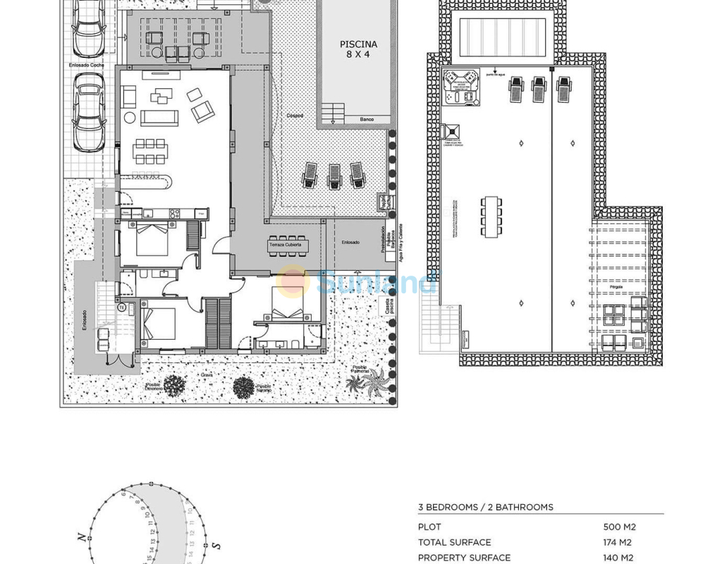 - Bebygget: 140m2