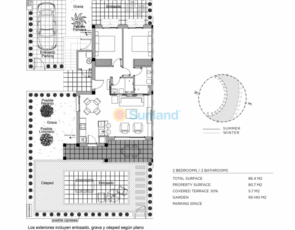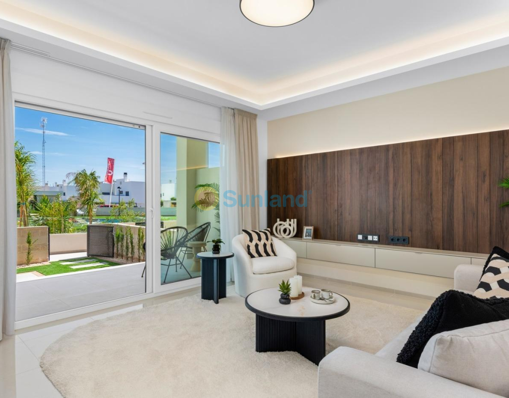 Moderne middelhavsleiligheter i Ciudad Quesada, Costa Blanca Eksklusivt boligområde Oppdag et eksklusivt privat boligkompleks designet for å tilby maksimal komfort, kvalitet og livsstil på et av de mest ettertraktede stedene på Costa Blanca. Dette moderne boligkomplekset ligger i Ciudad Quesada, bare noen minutter fra Alicante internasjonale lufthavn, og kombinerer den tidløse sjarmen til middelhavsarkitektur med et friskt, funksjonelt design som er ideelt for moderne livsstil. Elegante leiligheter med private uteområder Komplekset har to typer boliger som passer til forskjellige livsstiler. Velg mellom leiligheter i første etasje med en romslig privat hage, perfekt for avslapning utendørs, eller leiligheter i andre etasje med et stort privat solarium, ideelt for å nyte solskinnet og den rolige utsikten hele året. Hver leilighet har 2 soverom og 2 bad, og tilbyr lyse og komfortable interiører. I tillegg har hver bolig privat parkering innenfor komplekset og et bod for ekstra bekvemmelighet. Fellesarealer for avslapning og velvære Boligkomplekset er designet for nytelse og avslapning, og tilbyr vakkert anlagte felleshager og et stort svømmebasseng som skaper en rolig og eksklusiv atmosfære. Enten du ønsker å slappe av i solen, ta en forfriskende dukkert eller bare nyte naturen, tilbyr dette boligprosjektet alt du trenger for å leve komfortabelt på Costa Blanca. Førsteklasses beliggenhet nær strender og golf Ciudad Quesada er et veletablert og livlig samfunn, kjent for sine utmerkede tjenester, restauranter og fritidsaktiviteter. La Marquesa golfbane, som ligger bare noen få minutter unna, er en av de mest historiske golfbanene på Costa Blanca, med 18 hull og det berømte hull 17 inspirert av Sawgrass, som tilbyr en unik opplevelse for golfentusiaster. De vakre blåflaggstrendene i Guardamar del Segura, La Mata og Torrevieja ligger bare 15 km fra prosjektet, og er perfekte for soling eller vannsport. Alicante internasjonale lufthavn ligger praktisk til 40 km unna, noe som gjør det enkelt og tilgjengelig å reise. Middelhavslivsstil på sitt beste Omgitt av natur, golfbaner og havet, tilbyr dette boligprosjektet den perfekte rammen for både permanent boende og ferieopplevelser. Det er et sted hvor moderne komfort møter sjarmen ved middelhavsstilen. Planlegg ditt besøk i dag Ikke gå glipp av muligheten til å eie ditt nye hjem i Ciudad Quesada, Costa Blanca. Kontakt oss i dag for mer informasjon eller for å avtale en privat visning av disse eksepsjonelle nybygde leilighetene.