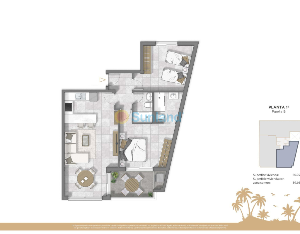 Nye leiligheter i sentrum av Guardamar del Segura, Costa Blanca Førsteklasses beliggenhet nær stranden Oppdag dette eksepsjonelle nybygget boligkomplekset som ligger i hjertet av Guardamar del Segura, en sjarmerende kystby kjent for sine naturlige sanddyner, furuskoger og gylne sandstrender. Med en ideell beliggenhet bare 1 km fra stranden og innen gangavstand til butikker, restauranter, supermarkeder og fritidstilbud, tilbyr dette prosjektet den perfekte balansen mellom bekvemmelighet og middelhavsstil. Stilfulle boliger designet for komfort Dette moderne boligkomplekset består av leiligheter med 2 og 3 soverom og 2 bad (inkludert ett en-suite). Kjøpere kan velge mellom leiligheter i første etasje med terrasse og uteplass, leiligheter i mellomste etasje med terrasse eller penthouse-leiligheter med privat solarium, ideelt for å nyte solen og havbrisen hele året. Hver bolig har et åpent kjøkken integrert med en romslig stue, innebygde garderober og et privat oppbevaringsrom på taket. Valgfrie parkeringsplasser i første etasje er tilgjengelige for ekstra bekvemmelighet. Førsteklasses kvalitet og energieffektivitet Boligene er designet for å tilby moderne komfort og effektivitet, og har høykvalitets finish: Fullt utstyrte bad med servantskap, speil og skjermer Sikkerhetsforsterket inngangsdør Aerotermisk varmtvannssystem Doble vinduer med termisk barriere Heis med tilgang til alle etasjer Vakre fellesarealer Komplekset har attraktive grønne områder, et felles svømmebasseng og et felles solarium på taket, som gir beboerne avslappende uteområder i solen. Nyt det beste Guardamar har å tilby Guardamar del Segura tilbyr 11 km med naturlige strender, en marina med aktiviteter året rundt, idrettsanlegg med padel, tennis, fotball og et oppvarmet innendørsbasseng, samt parker, markeder og kulturelle arenaer. Med sin avslappede kystatmosfære og et komplett utvalg av tjenester er det et ideelt sted både for permanent opphold og ferieturer. Viktige avstander: Strand: 1 km Alicante-Elche flyplass: 20 km La Marquesa Golf: 8 km Torrevieja marina: 14 km Guardamar marina: 2 km Sikre deg ditt nye hjem på Costa Blanca Ikke gå glipp av muligheten til å bo i et av de mest attraktive områdene på Costa Blanca. Kontakt oss i dag for å avtale en visning og oppdag ditt fremtidige hjem i Guardamar del Segura.