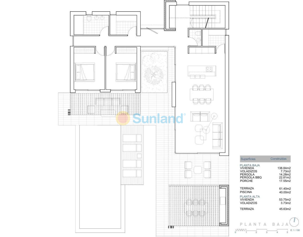 Moderne nybygget villa nær sjøen i Javea Eksklusivt middelhavsliv i Javea Oppdag denne fantastiske moderne villaen som ligger i et av de mest ettertraktede og fredelige områdene i Javea, bare 800 meter fra sjøen. Denne boligen ligger mellom furutrær og nær de berømte Cala de la Barraca og Cala del Portixol, og tilbyr en privilegert livsstil omgitt av natur og kystens skjønnhet. Javea, som ligger på Costa Blanca mellom Alicante og Valencia, er kjent for sitt krystallklare vann, sjarmerende gamleby og milde klima året rundt, noe som gjør det til et av de mest ettertraktede reisemålene i Middelhavet. Elegant design og lyse, åpne rom Denne villaen er designet for komfort og stil, og har en moderne arkitektur med myke linjer, store vinduer og flytende integrasjon mellom inne og ute. Naturlig lys bader hvert hjørne og skaper en varm og innbydende atmosfære som er ideell for både å bo og underholde. Villaen er fordelt på to etasjer og inkluderer Åpen stue og spisestue med sømløs tilgang til terrasser og basseng Fullt møblert åpent kjøkken 3 soverom og 2 bad pluss 1 gjestetoalett Vaskerom og pantry Privat hage, terrasser og bassengområde med sommerkjøkken Privat master suite og utendørs livsstil Første etasje har to soverom, et bad og romslige fellesarealer. I andre etasje ligger hovedsoverommet, som er et privat fristed med eget bad, en romslig walk-in-garderobe og en 45 m² stor terrasse, perfekt for å nyte soloppgangen og den middelhavske brisen. Uteområdet er designet for avslapning, med privat basseng, solterrasser og frodige omgivelser som sikrer ro og privatliv. Førsteklasses beliggenhet i Costa Blanca Nord Javea tilbyr en eksepsjonell livsstil med vakre strender, turstier, marinaer, golfbaner og gourmetrestauranter. Byen ligger 92 km fra Alicante og 105 km fra Valencia. Viktige avstander Strand og Cala del Portixol: 0,8 km Javea havn og marina: 8 km Javea golfklubb: 10 km Alicante lufthavn: 100 km Valencia lufthavn: 125 km Ditt middelhavshjem venter Enten du er på jakt etter en permanent bolig, et luksuriøst feriested eller en førsteklasses investering, tilbyr denne villaen privatliv, komfort og en eksepsjonell beliggenhet ved kysten. Kontakt oss i dag for mer informasjon eller for å avtale en visning av dette eksklusive, moderne hjemmet i Javea.