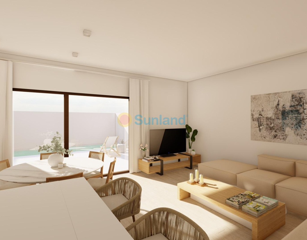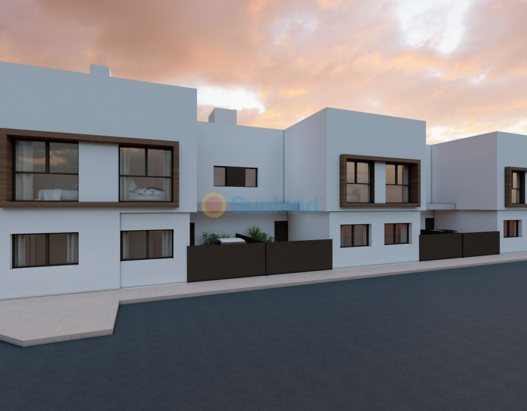 Nybygde rekkehus i San Javier - moderne design og førsteklasses beliggenhet Rekkehus med moderne design og privat svømmebasseng Oppdag dette eksklusive komplekset med 8 splitter nye rekkehus i San Javier, Murcia, som er designet for å tilby maksimal komfort og en moderne livsstil. Hver bolig har et privat svømmebasseng, terrasse, solarium og parkeringsplass, noe som gir en ideell plass for avslapning og nytelse året rundt. Boligene er bygget med materialer av høy kvalitet og har en åpen planløsning som utnytter det naturlige lyset på best mulig måte. De er perfekte både som permanent bolig og som feriehus på Costa Cálida. Distribusjon og utstyr av høy kvalitet Hvert rekkehus har: 3 romslige soverom med garderober og kommoder. 3 fullt utstyrte bad med møbler, speil og skjermer. Åpent konseptkjøkken, fullt utstyrt og med hvitevarer inkludert. Romslig stue-spisestue med store vinduer som går ut til terrassen. Privat svømmebasseng med dusj og hage med kunstgress. Solarium med sommerkjøkken, perfekt for å nyte middelhavsklimaet. Pre-installasjon av kanalisert klimaanlegg i hver etasje. PVC utvendig snekring med doble vinduer, noe som garanterer termisk og akustisk isolasjon. Sikkerhetsinngangsdør, for større trygghet og beskyttelse. Strategisk beliggenhet i San Javier San Javier er en kystby med et bredt utvalg av tjenester, idrettsanlegg og fritidsområder. Beliggenheten til denne boligen gir rask tilgang til: Strendene i Mar Menor - bare 5 minutter med bil. Strender ved Middelhavet - 10 minutter unna. Golfbaner - Ulike alternativer i området, ideelt for golfelskere. Kjøpesentre og tjenester - Alt du trenger bare noen få minutter unna. Murcia-Corvera lufthavn - 30 minutter unna. Alicante lufthavn - 45 minutter unna. Nyt det beste klimaet og den beste livskvaliteten i San Javier San Javier er et utmerket alternativ for de som leter etter en eiendom nær sjøen, med et privilegert klima og tilgang til alle slags utendørsaktiviteter. Ikke gå glipp av muligheten til å kjøpe en av disse eksklusive boligene. Kontakt oss i dag for mer informasjon eller for å avtale et besøk.