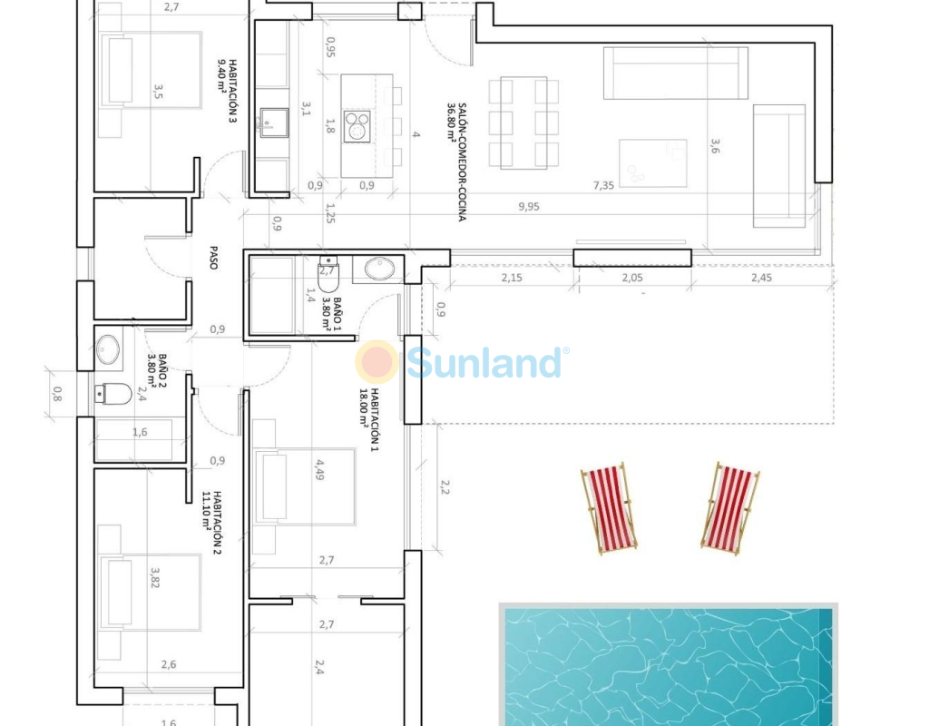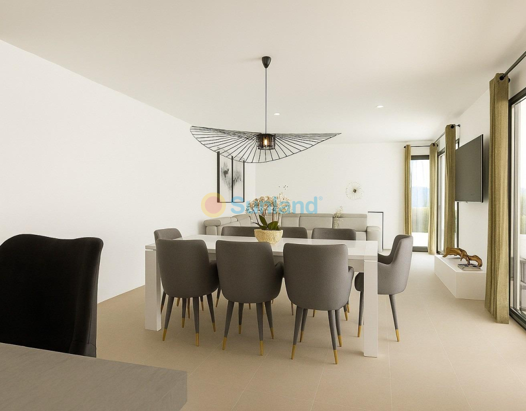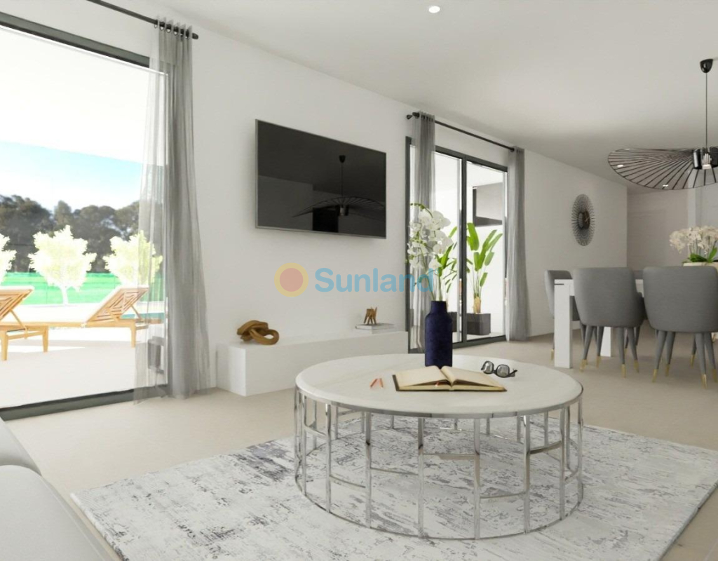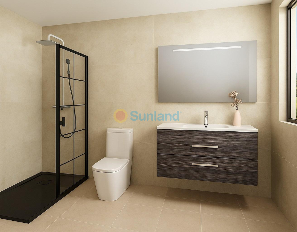 NYBYGGEDE VILLAER MED SVØMMEBASSENG I HONDON DE LAS NIEVES Oppdag elegansen og komforten i disse vakre frittliggende villaene på mellom 108 og 128 m2, designet for å tilby deg en eksepsjonell livsstil, alle i første etasje. Nyt privatlivet som denne villaen tilbyr, hvor du kan slappe av i din egen hage, skape en oase av ro eller kjøle deg ned i din private svømmebasseng for å nyte de varme sommerdagene. Eiendommen er fordelt på to store områder: Dagområde: Her finner vi en romslig stue/spisestue med åpen kjøkkenløsning (kjøkkeninnredning inkludert) som er forbundet med den store, moderne verandaen gjennom to store vinduer, som gir tilgang til hagen og bassenget. Som ekstra plass har den et vaskerom strategisk plassert i boligens planløsning, hvor det er lett tilgang fra alle deler av huset. Hvilestue: I denne delen er det 3 soverom. Hovedsoverommet har et stort walk-in-closet og eget bad. Det er også et ekstra bad for de andre soverommene og resten av huset. Denne villaen ligger i et rolig og boligområde, og gir deg den privatlivet og roen du ønsker, samtidig som du har kort avstand til tjenester, butikker, supermarkeder og restauranter. Det er den perfekte balansen mellom fredelig isolasjon og moderne bekvemmeligheter. I dette boligområdet i Hondón de las Nieves er hver dag en mulighet til å koble seg til verden. Hondón de las Nieves er en kommune i Valencia-regionen i Spania. Den ligger sørvest i provinsen Alicante, i distriktet Vinalopó Medio. Strendene og flyplassen i Alicante ligger i nærheten, bare 30 minutter unna med bil.