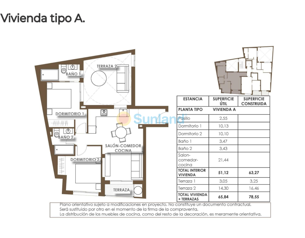 Moderne leiligheter til salgs Bare 250 m fra El Cura-stranden i Torrevieja, Costa Blanca Eksklusivt nytt boligprosjekt nær sjøen Dette nye boligkomplekset med 16 moderne boliger er designet for å fange essensen av middelhavslivet. Beliggende bare 250 meter fra El Cura-stranden i Torrevieja (Alicante), tilbyr dette boligprosjektet en perfekt blanding av komfort, design og beliggenhet. Med alle tjenester i nærheten og gode offentlige transportforbindelser, inkludert hovedbusstasjonen innen gangavstand, er dette et ideelt sted både for helårsbeboelse og ferier ved sjøen. Moderne design og funksjonelle boarealer Utbyggingen omfatter en rekke leiligheter med 1 eller 2 soverom og 1 eller 2 bad, med forskjellige planløsninger som passer til alle livsstiler. Hver bolig er preget av lyse, åpne rom, elegant finish og utmerket byggekvalitet. Funksjonene inkluderer innebygde garderober, forhåndsinstallert luftkondisjonering, heis og materialer av høy kvalitet overalt. Leilighetene i første etasje og standardleilighetene har private terrasser som er ideelle for å slappe av utendørs, mens penthouse-leilighetene har romslige private solterrasser – perfekte for soling, middager eller for å nyte de vakre middelhavssolnedgangene. Eksklusive fellesarealer for din nytelse Boligkomplekset er designet for komfort og sosialt liv. Beboerne kan nyte et spektakulært fellesområde på taket med svømmebasseng, solplasser med solsenger og anlagte områder – et fredelig tilfluktssted for sommeravslapning. Førsteklasses beliggenhet i Torrevieja Torrevieja er et av de mest populære reisemålene på Costa Blanca, kjent for sine krystallklare strender, behagelige klima året rundt og livlige atmosfære ved sjøen. Å bo her betyr å nyte daglige spaserturer langs promenaden, spise på restauranter ved stranden og oppleve den autentiske middelhavsstilen. Avstander til viktige severdigheter El Cura-stranden: 250 m Torrevieja marina og havn: 2 km Las Habaneras kjøpesenter: 3 km Nærmeste golfbaner: 7–10 km Alicante-Elche flyplass: 45 km Det perfekte hjemmet ved sjøen Enten du er på utkikk etter en permanent bolig, et feriehus eller en smart investeringsmulighet, tilbyr disse nybygde leilighetene i Torrevieja den perfekte kombinasjonen av moderne livsstil, kystens sjarm og bekvemmelighet. Kontakt oss i dag for mer informasjon eller for å avtale et besøk og sikre deg ditt drømmehus bare noen skritt fra El Cura-stranden i Torrevieja.